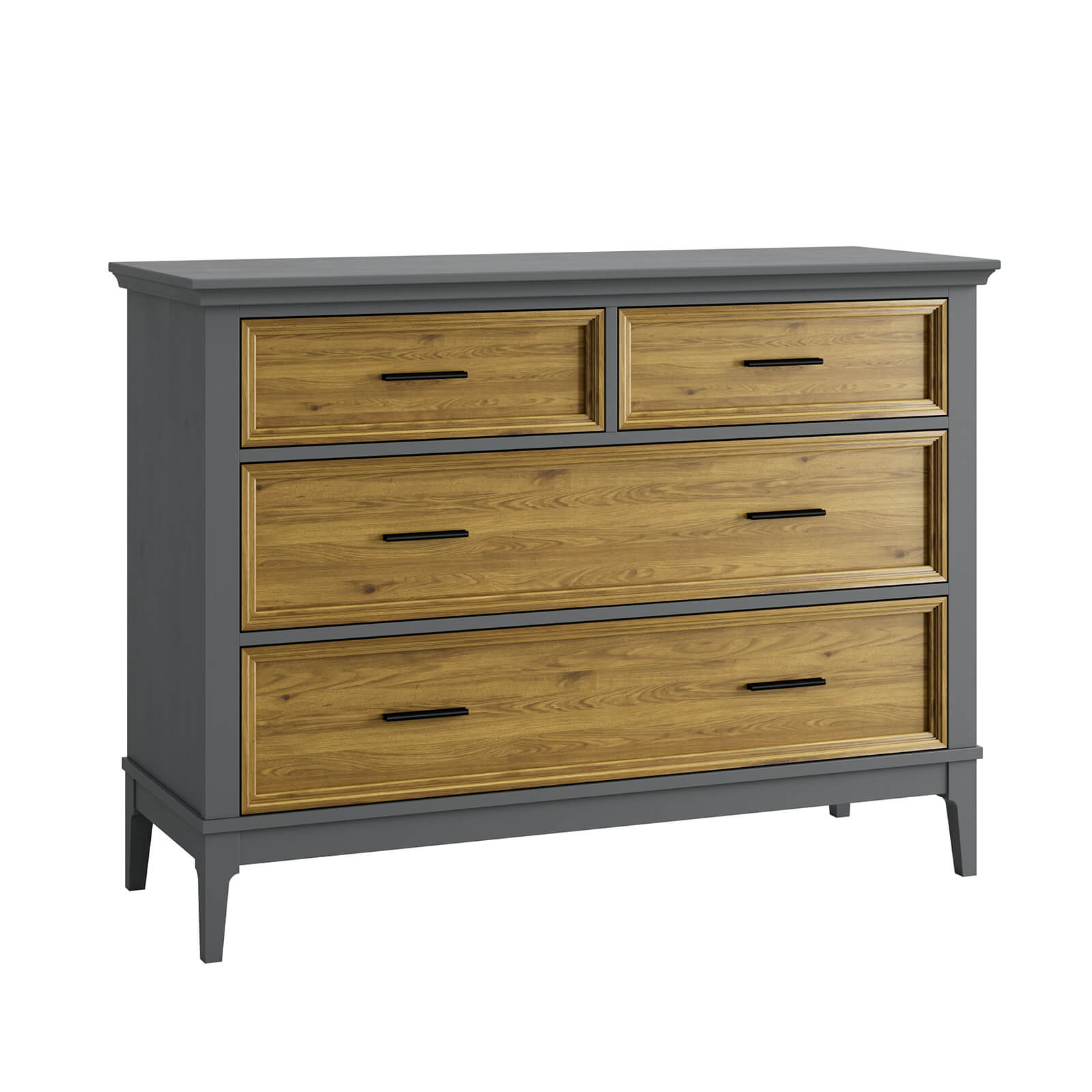 Комод Квадро-С 04 Серый №7042 + антик №24 массив сосны. Два узких сверху и два широких ящика на шариковых телескопических направляющих.