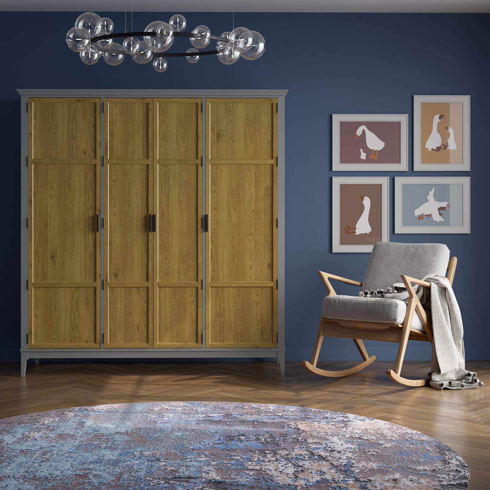 Шкаф для одежды Квадро-С 40 Серый №7042 + антик №24 массив сосны.