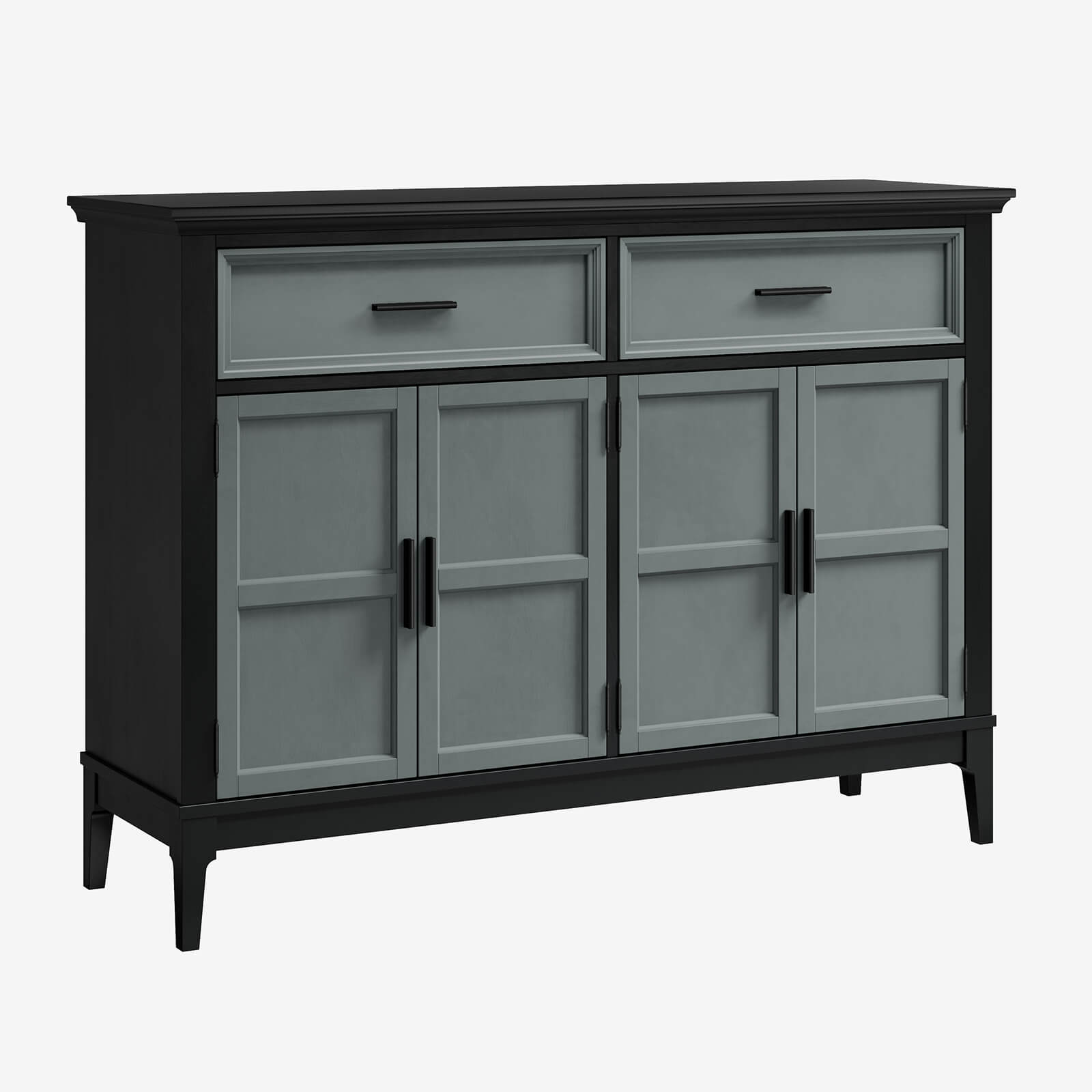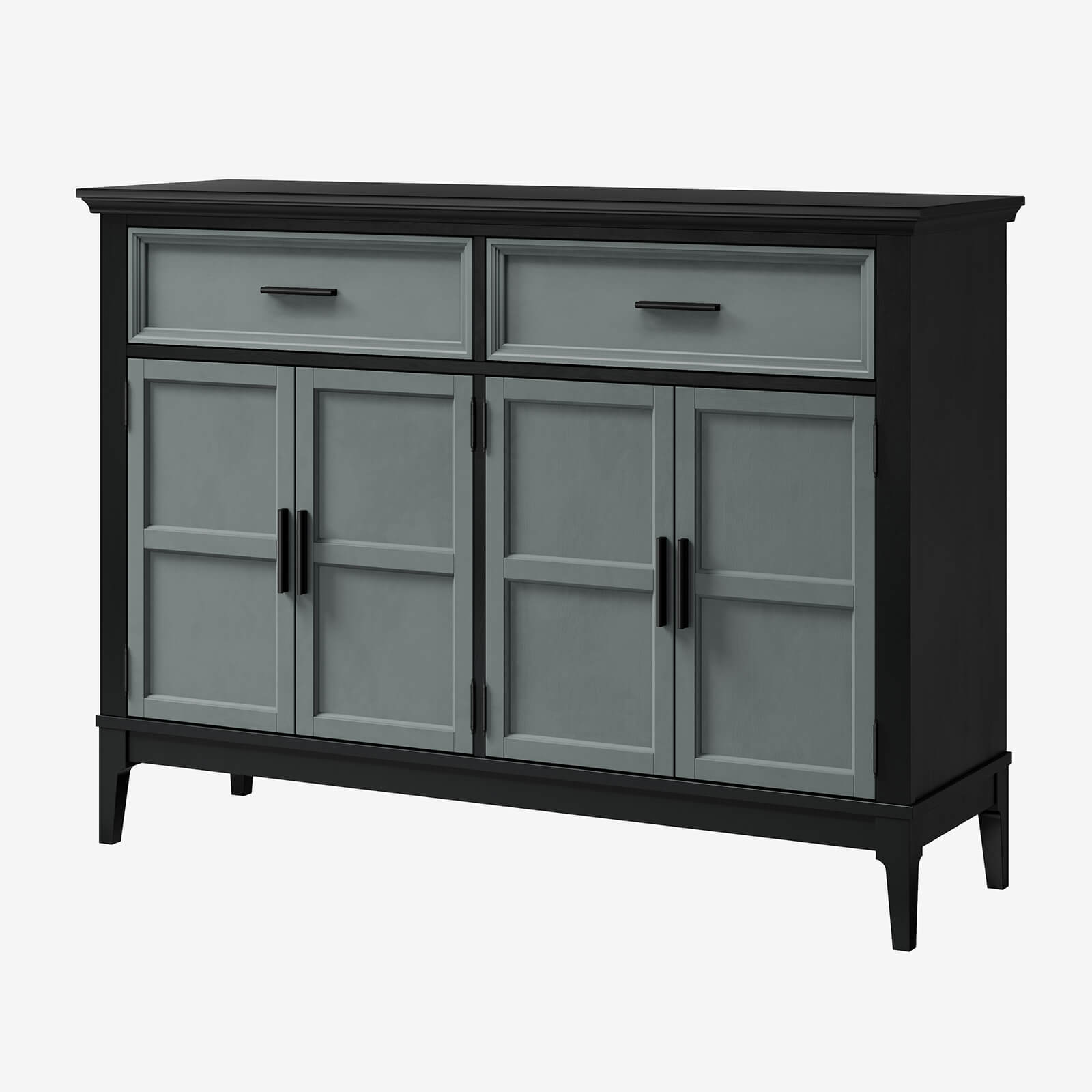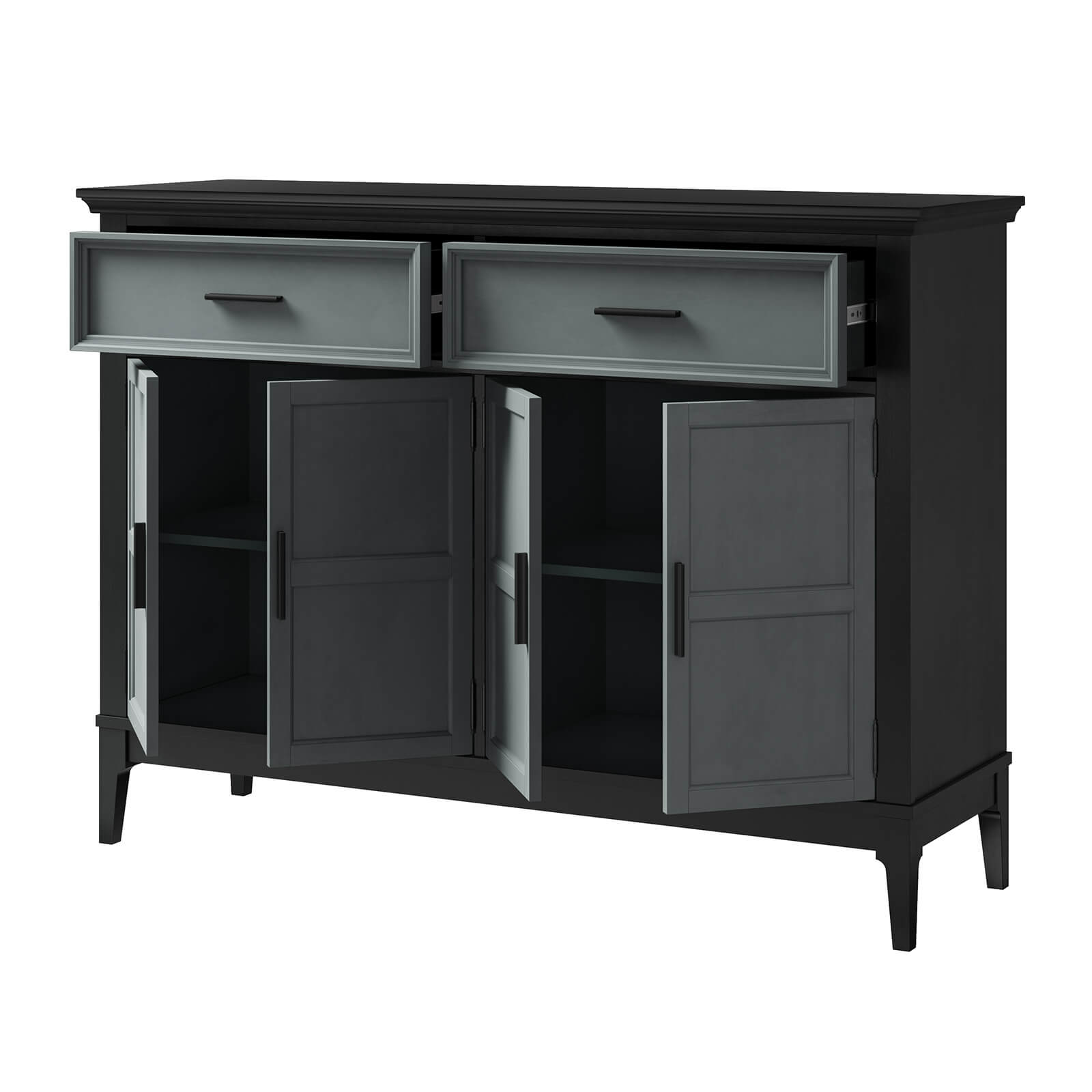 Четыре распашные двери и два ящика на телескопических шариковых направляющих.