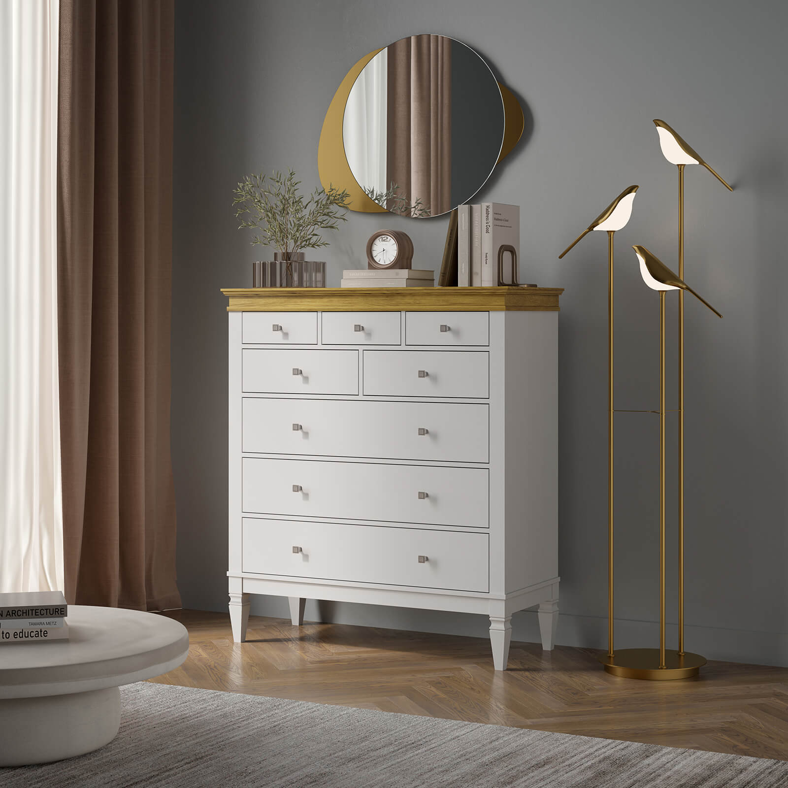 Комод из сосны Ольса-С 323 Белый лак + антик №24