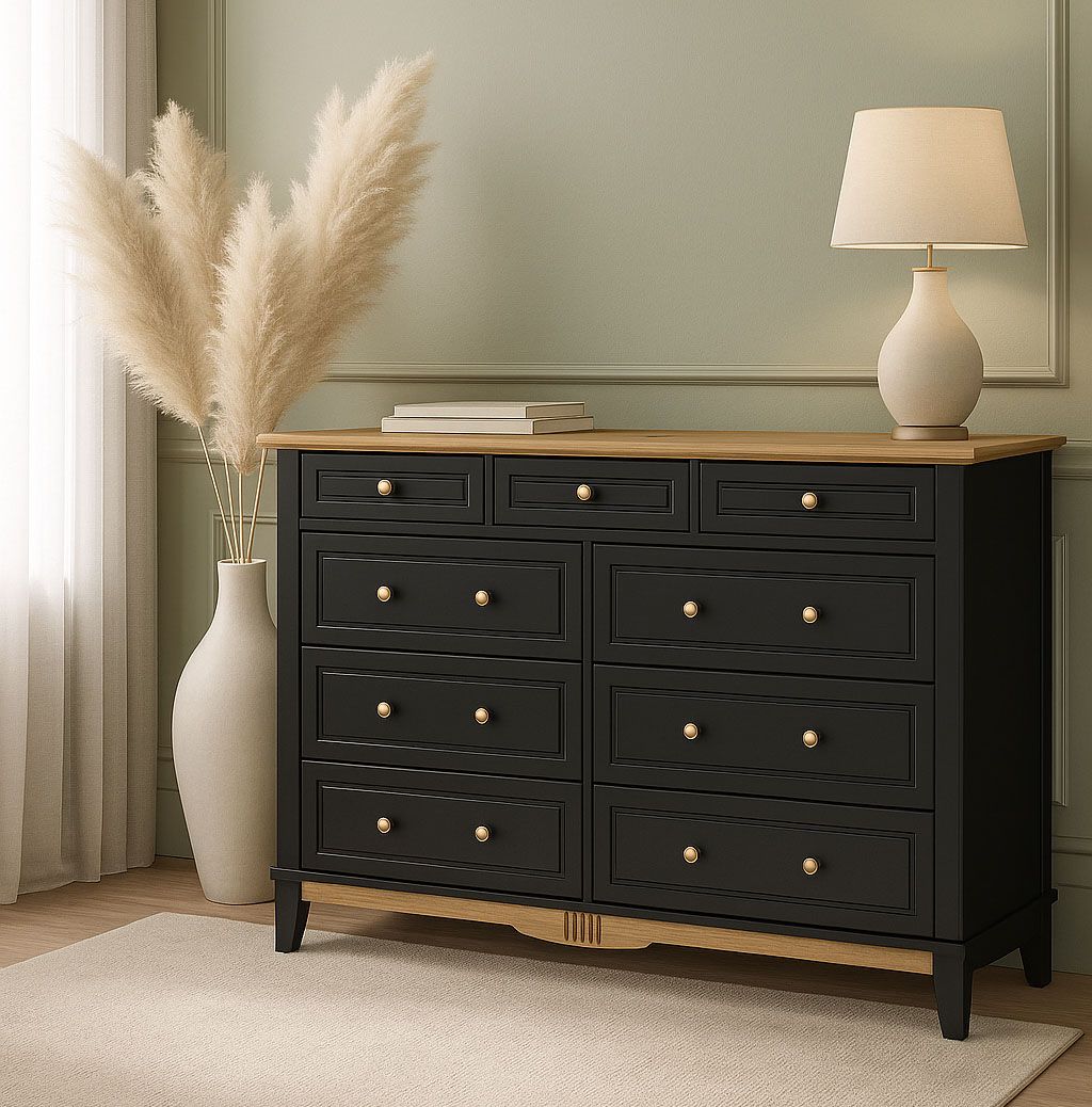 Вместительный деревянный комод 036 Пенни блэк/антик 24 с ящиками.