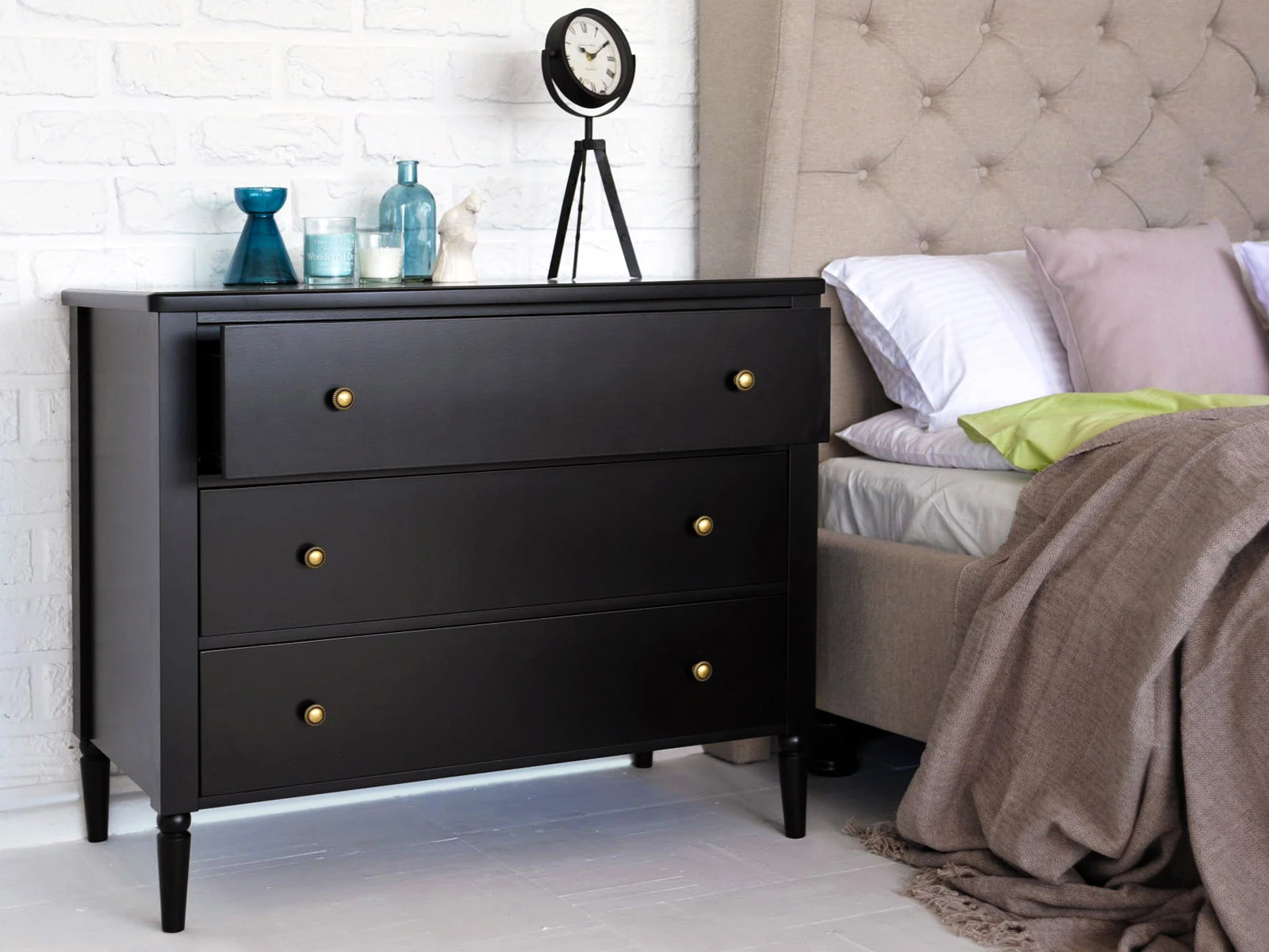 Коллекция Music — респектабельная мебель с классической основой. Обладает притягательной энергетикой изящных форм, поэтичного черного цвета и безупречным исполнением. Комоды, тумбы, банкетки, консольные и журнальные столики подходят для оформления гостиной, спальни, прихожей, мастерской, студии, бьюти-зоны. Идеально вписывается в стилистику неоклассики, арт-деко, минимализма, эклектики. Лейтмотив коллекции — барочные элементы: фигурные ножки из массива дерева, каретная стяжка «капитоне», акцентные детали в бронзовом и золотистом цвете. Изделия подчеркнут в интерьере смелость, выразительность, спокойствие. Они надежно сохранят ваши секреты, помогут разложить вещи по местам и поддержат настроение «тихой роскоши». Могут выступать на контрасте с главенствующим светлым оттенком или быть частью ненавязчивого темного фона. Комод имеет 3 выдвижных ящика. Рекомендуется крепить к стене. Ручки включены в стоимость. RAL DESIGN 095 80 10 Gloss 20 «Сапфир Лайт».
