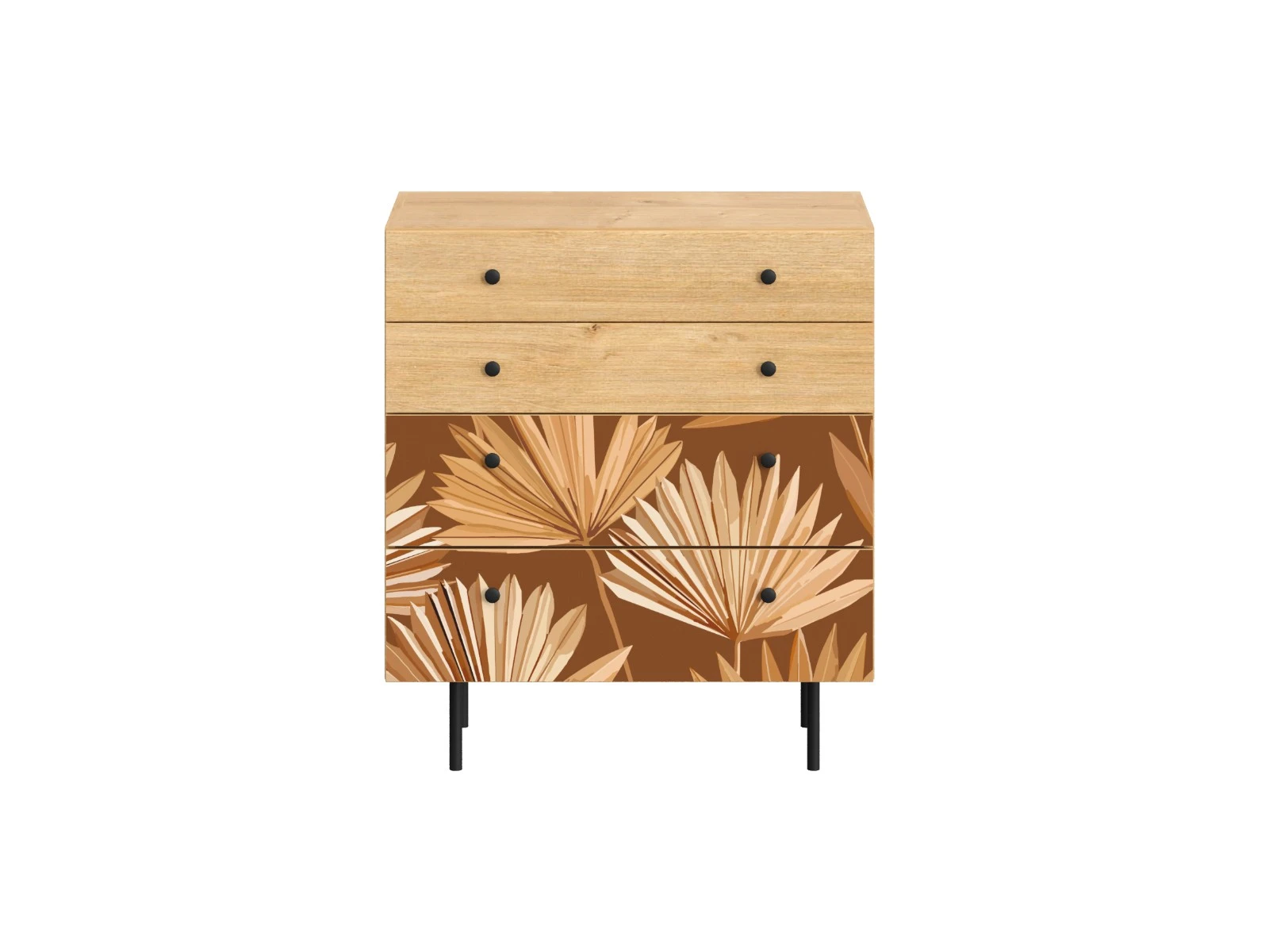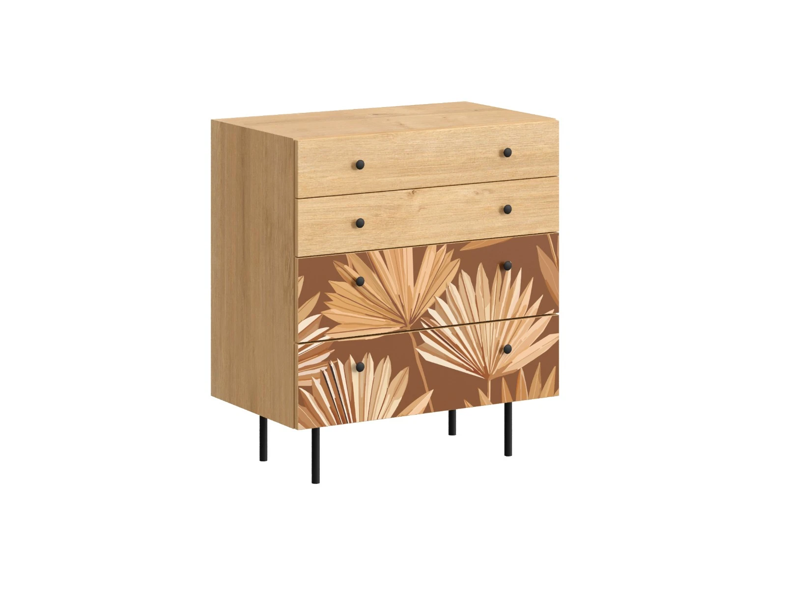 Корпусная мебель, с которой можно составить множество решений для гостиной, детской, кухни, спальни, прихожей, рабочей зоны. Комоды, шкафы, тумбы, столы, витрины, полки, серванты характеризуются универсальностью, многозадачностью, надёжными устойчивыми конструкциями. Имеют выразительный внешний вид, вдохновленный направлением ретро. Смотрятся легко и воздушно за счет деревянных ножек, минимального количества декоративных элементов, спокойных природных оттенков. Их можно использовать в качестве систем хранения, элементов для зонирования, фокусных точек. В дизайне ярко выражена доминанта прямых форм, графичности, лаконичных линий и элегантного исполнения. Что даёт пространству ощущение размеренности, сбалансированности, упорядоченности. Подходят интерьерам как с нейтральной базой, так и локациям с интенсивными цветовыми блоками. Индивидуальности добавят модели с оригинальными паттернами на фасадах. Предметы коллекции Frida гармонично впишутся в эклектичные и стилизованные интерьеры. Ручки входят в стоимость изделия. Высота опор 160 мм. Изображение, нанесенное на фасады, устойчиво к выцветанию, истиранию и влаге. Однако длительное воздействие воды, различных растворителей, спиртосодержащих жидкостей и высоких температур, увеличивают риск повреждения целостности покрытия. Поэтому при использовании необходимо соблюдать ряд правил: 1. Протирайте поверхность с рисунком влажной (но не мокрой) тканью. 2. Используйте мягкие ткани, например, салфетки для стекла или зеркал. 3. Не используйте для обработки поверхности с нанесенным на нее рисунком чистящие порошки и средства, в состав которых входят ацетон, растворитель или спирт. 4. Не используйте металлические губки и щетки с жесткой щетиной. 5. Избегайте ударов, падения, царапания, трения изделий с фотопечатью.