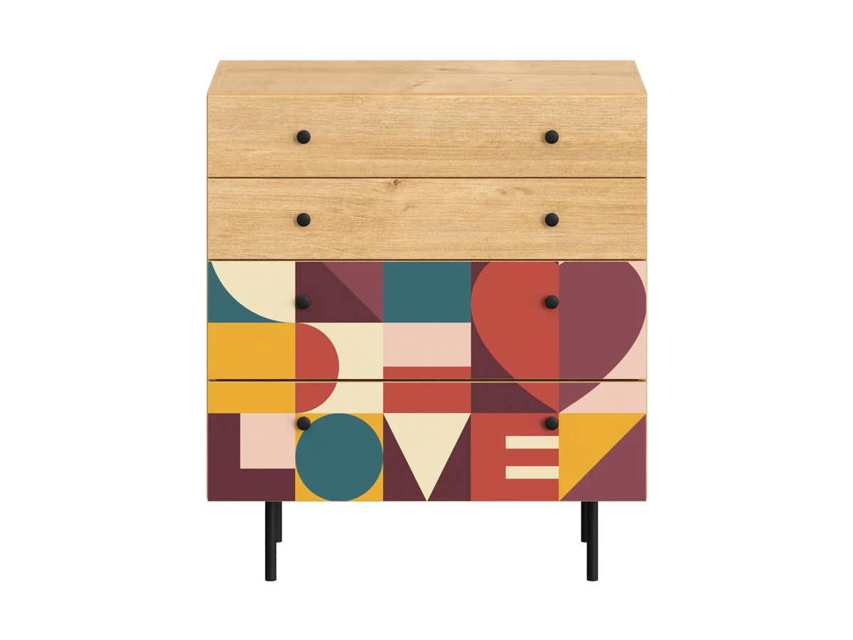Корпусная мебель, с которой можно составить множество решений для гостиной, детской, кухни, спальни, прихожей, рабочей зоны. Комоды, шкафы, тумбы, столы, витрины, полки, серванты характеризуются универсальностью, многозадачностью, надёжными устойчивыми конструкциями. Имеют выразительный внешний вид, вдохновленный направлением ретро. Смотрятся легко и воздушно за счет деревянных ножек, минимального количества декоративных элементов, спокойных природных оттенков. Их можно использовать в качестве систем хранения, элементов для зонирования, фокусных точек. В дизайне ярко выражена доминанта прямых форм, графичности, лаконичных линий и элегантного исполнения. Что даёт пространству ощущение размеренности, сбалансированности, упорядоченности. Подходят интерьерам как с нейтральной базой, так и локациям с интенсивными цветовыми блоками. Индивидуальности добавят модели с оригинальными паттернами на фасадах. Предметы коллекции Frida гармонично впишутся в эклектичные и стилизованные интерьеры. Ручки входят в стоимость изделия. Высота опор 160 мм. Изображение, нанесенное на фасады, устойчиво к выцветанию, истиранию и влаге. Однако длительное воздействие воды, различных растворителей, спиртосодержащих жидкостей и высоких температур, увеличивают риск повреждения целостности покрытия. Поэтому при использовании необходимо соблюдать ряд правил: 1. Протирайте поверхность с рисунком влажной (но не мокрой) тканью. 2. Используйте мягкие ткани, например, салфетки для стекла или зеркал. 3. Не используйте для обработки поверхности с нанесенным на нее рисунком чистящие порошки и средства, в состав которых входят ацетон, растворитель или спирт. 4. Не используйте металлические губки и щетки с жесткой щетиной. 5. Избегайте ударов, падения, царапания, трения изделий с фотопечатью.