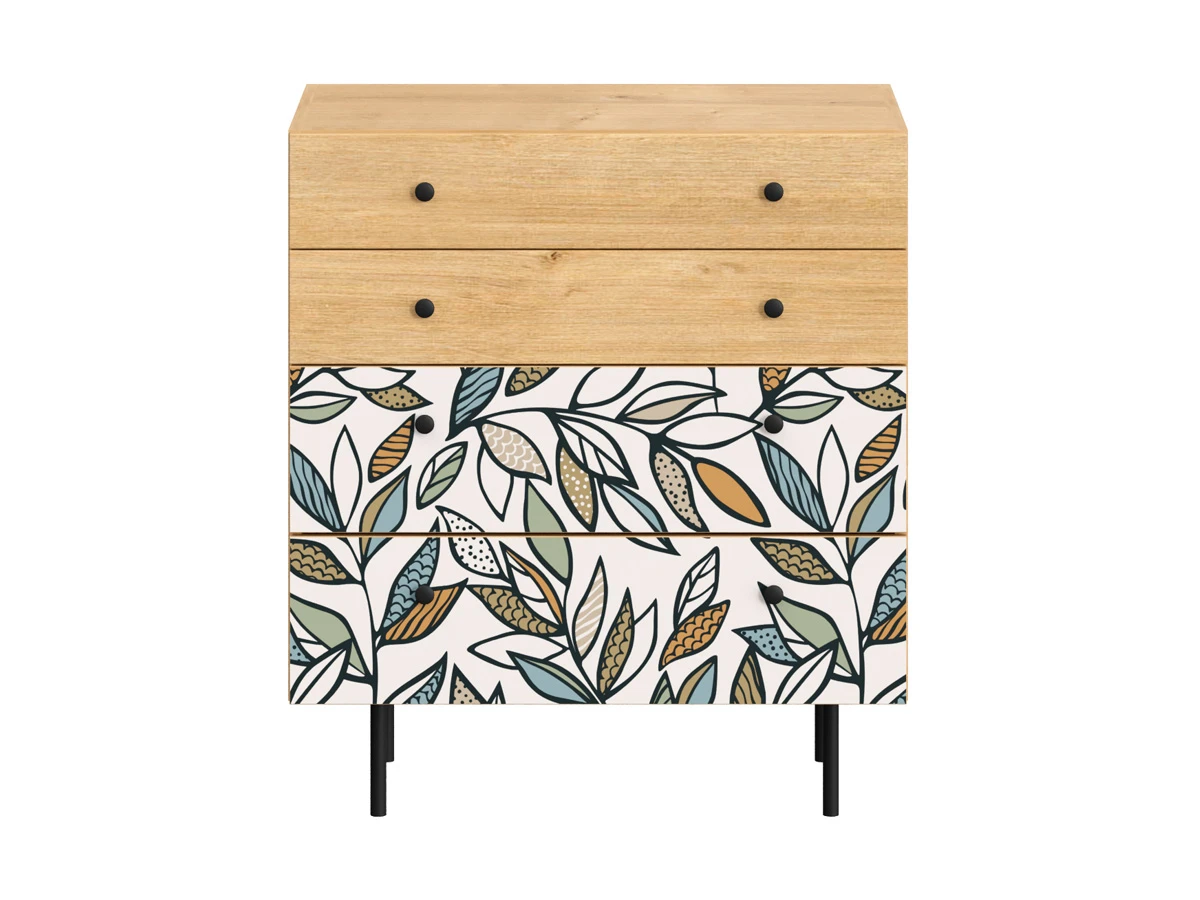 Корпусная мебель, с которой можно составить множество решений для гостиной, детской, кухни, спальни, прихожей, рабочей зоны. Комоды, шкафы, тумбы, столы, витрины, полки, серванты характеризуются универсальностью, многозадачностью, надёжными устойчивыми конструкциями. Имеют выразительный внешний вид, вдохновленный направлением ретро. Смотрятся легко и воздушно за счет деревянных ножек, минимального количества декоративных элементов, спокойных природных оттенков. Их можно использовать в качестве систем хранения, элементов для зонирования, фокусных точек. В дизайне ярко выражена доминанта прямых форм, графичности, лаконичных линий и элегантного исполнения. Что даёт пространству ощущение размеренности, сбалансированности, упорядоченности. Подходят интерьерам как с нейтральной базой, так и локациям с интенсивными цветовыми блоками. Индивидуальности добавят модели с оригинальными паттернами на фасадах. Предметы коллекции Frida гармонично впишутся в эклектичные и стилизованные интерьеры. Ручки входят в стоимость изделия. Высота опор 160 мм. Изображение, нанесенное на фасады, устойчиво к выцветанию, истиранию и влаге. Однако длительное воздействие воды, различных растворителей, спиртосодержащих жидкостей и высоких температур, увеличивают риск повреждения целостности покрытия. Поэтому при использовании необходимо соблюдать ряд правил: 1. Протирайте поверхность с рисунком влажной (но не мокрой) тканью. 2. Используйте мягкие ткани, например, салфетки для стекла или зеркал. 3. Не используйте для обработки поверхности с нанесенным на нее рисунком чистящие порошки и средства, в состав которых входят ацетон, растворитель или спирт. 4. Не используйте металлические губки и щетки с жесткой щетиной. 5. Избегайте ударов, падения, царапания, трения изделий с фотопечатью.