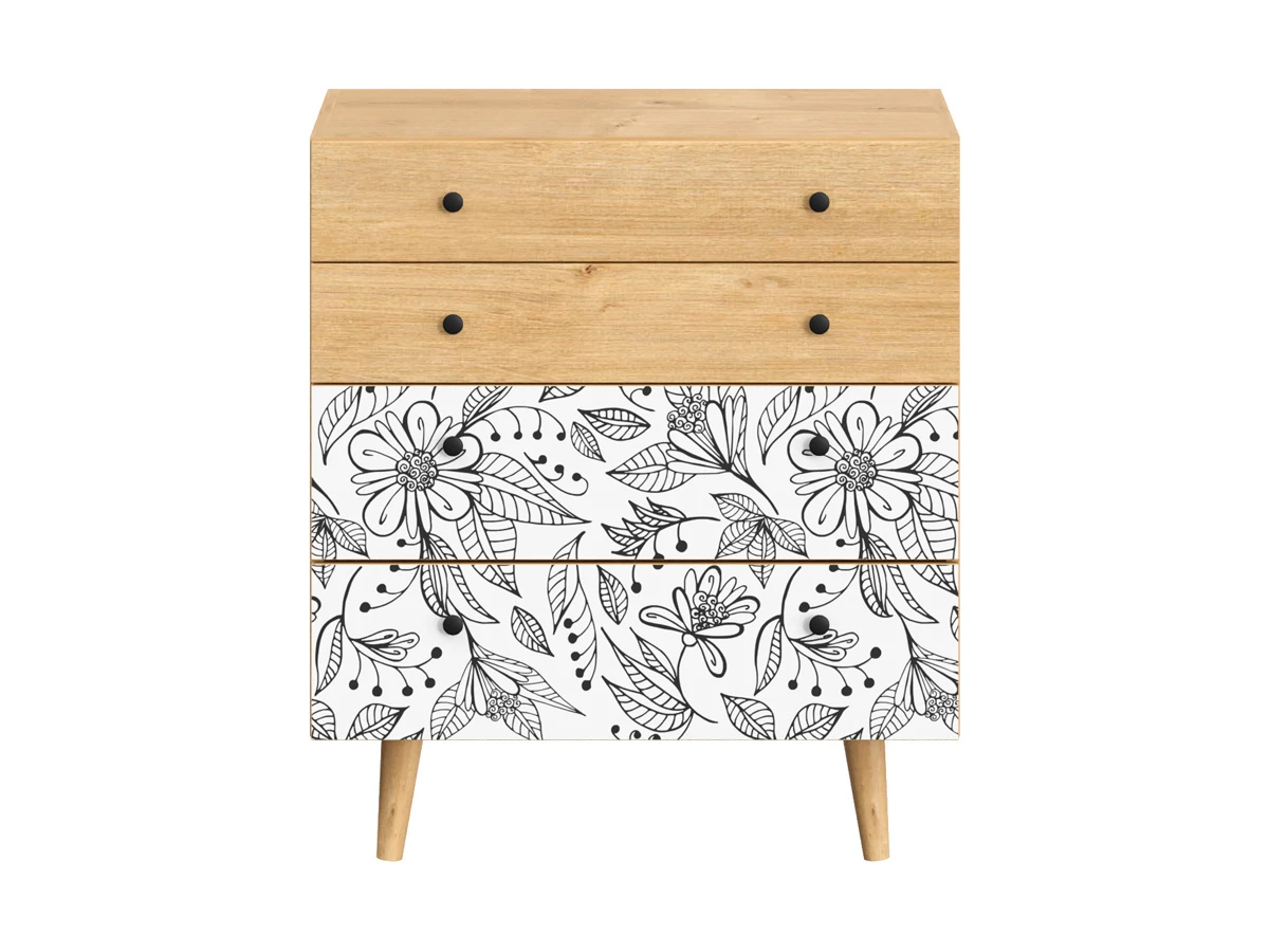 Корпусная мебель, с которой можно составить множество решений для гостиной, детской, кухни, спальни, прихожей, рабочей зоны. Комоды, шкафы, тумбы, столы, витрины, полки, серванты характеризуются универсальностью, многозадачностью, надёжными устойчивыми конструкциями. Имеют выразительный внешний вид, вдохновленный направлением ретро. Смотрятся легко и воздушно за счет деревянных ножек, минимального количества декоративных элементов, спокойных природных оттенков. Их можно использовать в качестве систем хранения, элементов для зонирования, фокусных точек. В дизайне ярко выражена доминанта прямых форм, графичности, лаконичных линий и элегантного исполнения. Что даёт пространству ощущение размеренности, сбалансированности, упорядоченности. Подходят интерьерам как с нейтральной базой, так и локациям с интенсивными цветовыми блоками. Индивидуальности добавят модели с оригинальными паттернами на фасадах. Предметы коллекции Frida гармонично впишутся в эклектичные и стилизованные интерьеры. Ручки входят в стоимость изделия. Высота опор 160 мм. Изображение, нанесенное на фасады, устойчиво к выцветанию, истиранию и влаге. Однако длительное воздействие воды, различных растворителей, спиртосодержащих жидкостей и высоких температур, увеличивают риск повреждения целостности покрытия. Поэтому при использовании необходимо соблюдать ряд правил: 1. Протирайте поверхность с рисунком влажной (но не мокрой) тканью. 2. Используйте мягкие ткани, например, салфетки для стекла или зеркал. 3. Не используйте для обработки поверхности с нанесенным на нее рисунком чистящие порошки и средства, в состав которых входят ацетон, растворитель или спирт. 4. Не используйте металлические губки и щетки с жесткой щетиной. 5. Избегайте ударов, падения, царапания, трения изделий с фотопечатью.