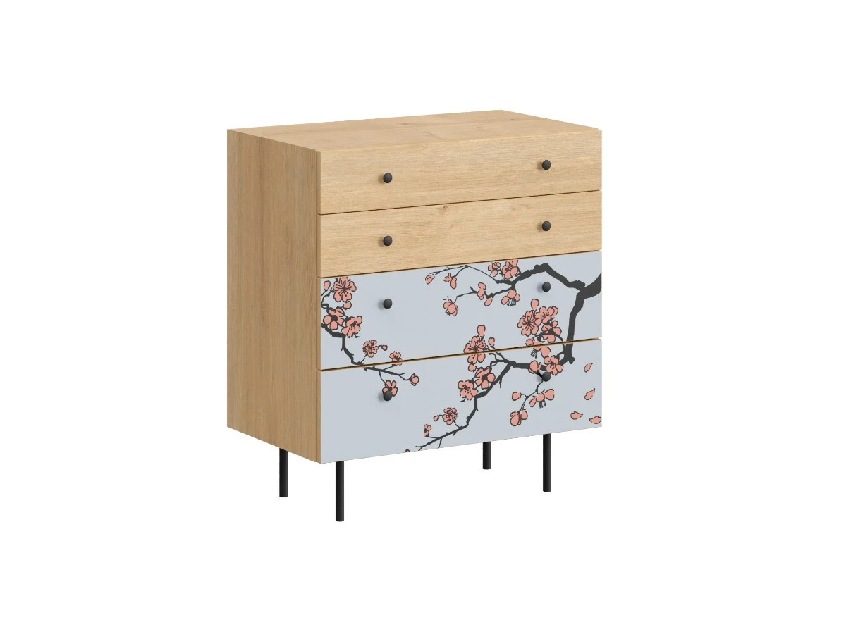 Корпусная мебель, с которой можно составить множество решений для гостиной, детской, кухни, спальни, прихожей, рабочей зоны. Комоды, шкафы, тумбы, столы, витрины, полки, серванты характеризуются универсальностью, многозадачностью, надёжными устойчивыми конструкциями. Имеют выразительный внешний вид, вдохновленный направлением ретро. Смотрятся легко и воздушно за счет деревянных ножек, минимального количества декоративных элементов, спокойных природных оттенков. Их можно использовать в качестве систем хранения, элементов для зонирования, фокусных точек. В дизайне ярко выражена доминанта прямых форм, графичности, лаконичных линий и элегантного исполнения. Что даёт пространству ощущение размеренности, сбалансированности, упорядоченности. Подходят интерьерам как с нейтральной базой, так и локациям с интенсивными цветовыми блоками. Индивидуальности добавят модели с оригинальными паттернами на фасадах. Предметы коллекции Frida гармонично впишутся в эклектичные и стилизованные интерьеры. Ручки входят в стоимость изделия. Высота опор 160 мм. Изображение, нанесенное на фасады, устойчиво к выцветанию, истиранию и влаге. Однако длительное воздействие воды, различных растворителей, спиртосодержащих жидкостей и высоких температур, увеличивают риск повреждения целостности покрытия. Поэтому при использовании необходимо соблюдать ряд правил: 1. Протирайте поверхность с рисунком влажной (но не мокрой) тканью. 2. Используйте мягкие ткани, например, салфетки для стекла или зеркал. 3. Не используйте для обработки поверхности с нанесенным на нее рисунком чистящие порошки и средства, в состав которых входят ацетон, растворитель или спирт. 4. Не используйте металлические губки и щетки с жесткой щетиной. 5. Избегайте ударов, падения, царапания, трения изделий с фотопечатью.