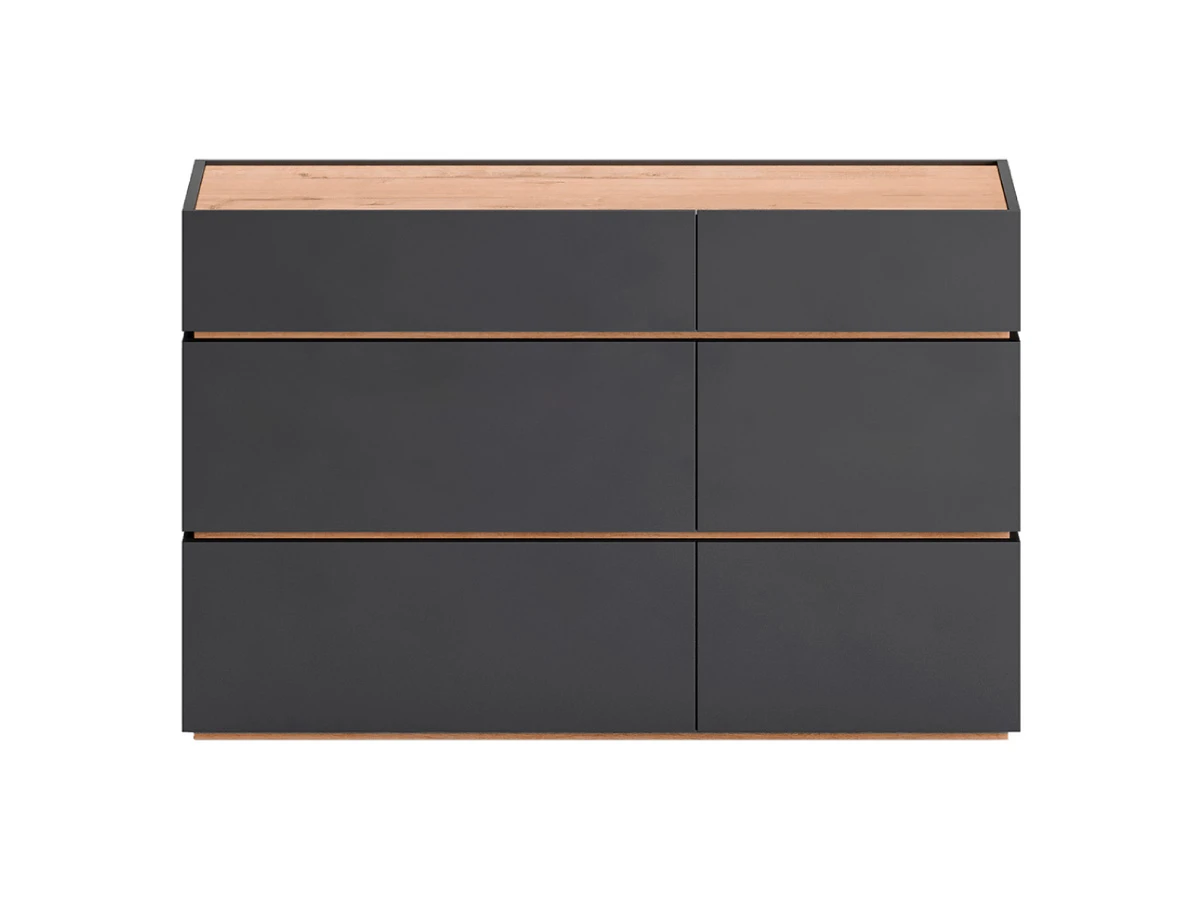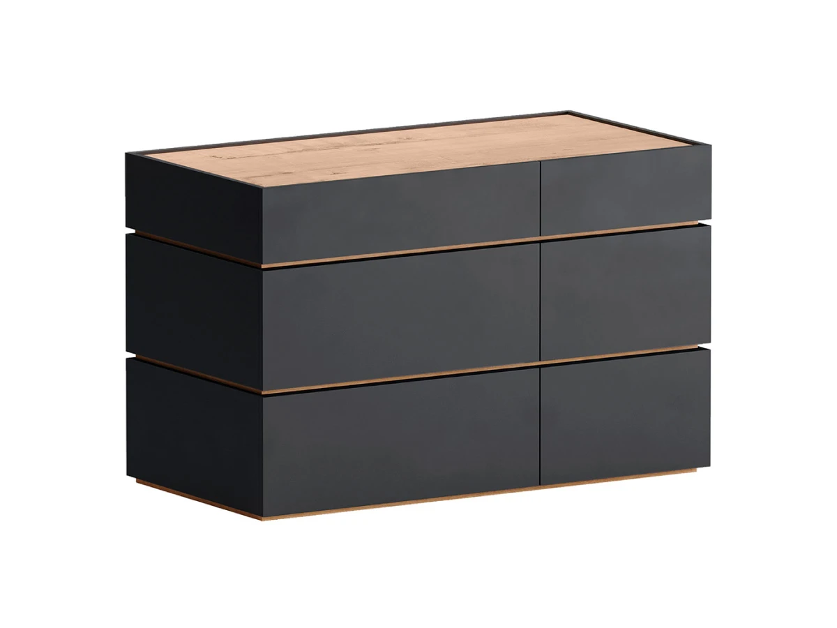 Коллекция корпусной мебели Licata состоит из прикроватных тумб, комодов, туалетных столиков. Предметы можно использовать как в составе группы для гармонии и единства интерьера, так и по отдельности. ДНК линейки — простой и стильный дизайн с уравновешенным выражением. Лаконичная геометрия, гладкие поверхности, строгая архитектура делают модели подходящими для разных пространств и стилей. Уместны в помещениях с нейтральной базой, и в локациях с интенсивными цветовыми блоками. Поддержат атмосферу порядка и организованности. Комоды и тумбы выполнены в виде секций, установленных друг на друга. На выбор комоды с 3, 4, 6-ю ящиками. Универсальны и подходят для спальни, гостиной, кабинета, прихожей. Фасады без декора и ручек поддерживают идею отказа от визуального шума, двери открываются по принципу «нажал-открыл». Изделия работают бесшумно, плавно, комплектуются качественной фурнитурой. С помощью Licata вы создадите комфортный актуальный интерьер с выразительными компонентами, настраивающими на ритмичный образ жизни, целеустремленность и чувство свободы от избыточных деталей. Комод выполнен в виде трех секций, установленных друг на друга. Верхняя секция по высоте меньше двух нижних. Имеет выступающий бортик высотой 7 мм. В каждой секции ящик на скрытых направляющих Push to open. Корпус и ящики из ЛДСП толщиной 16 мм., дно ящиков из ДВПО. Установлен на шесть пластиковых регулируемых опор.