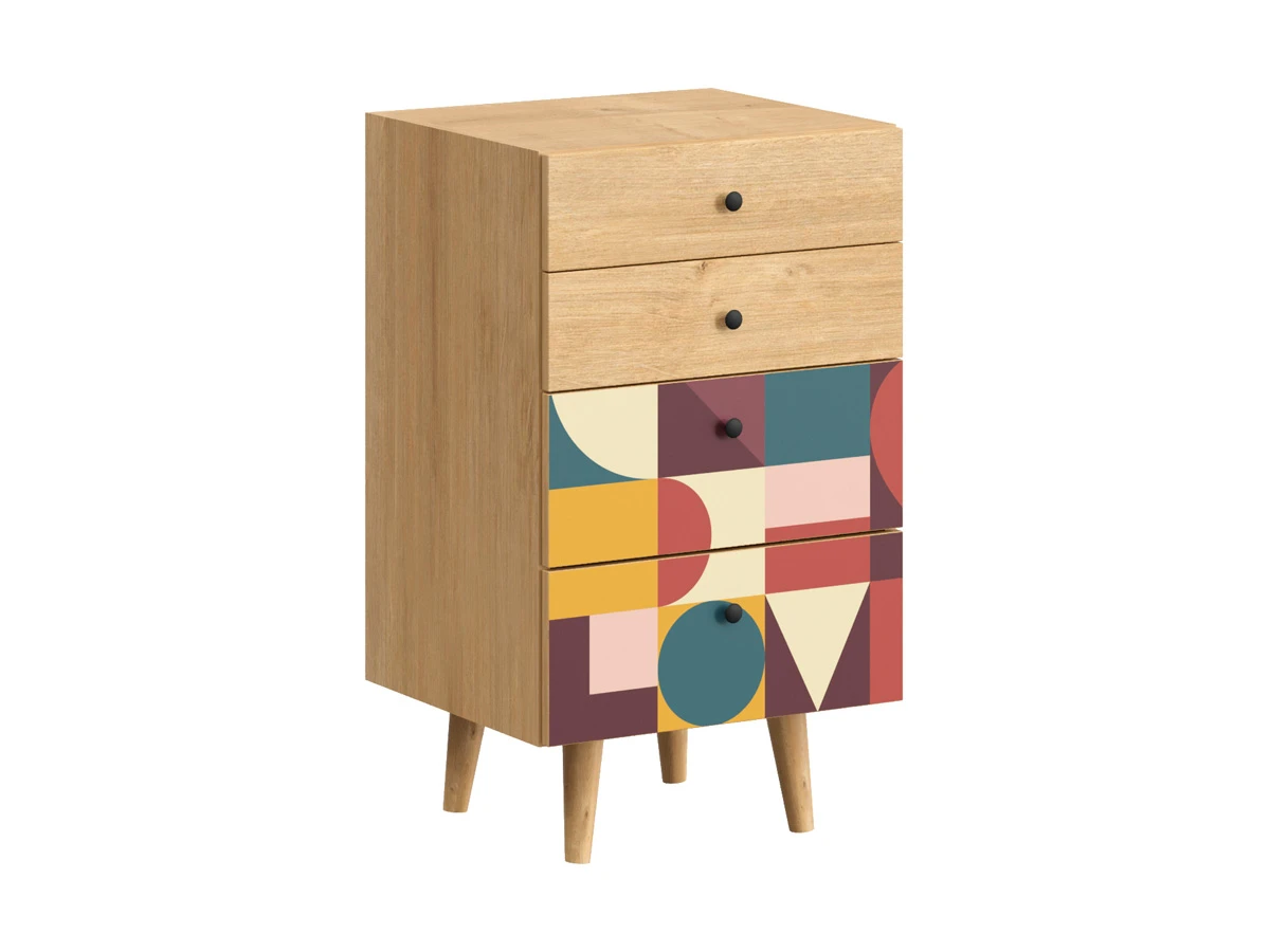 Корпусная мебель, с которой можно составить множество решений для гостиной, детской, кухни, спальни, прихожей, рабочей зоны. Комоды, шкафы, тумбы, столы, витрины, полки, серванты характеризуются универсальностью, многозадачностью, надёжными устойчивыми конструкциями. Имеют выразительный внешний вид, вдохновленный направлением ретро. Смотрятся легко и воздушно за счет деревянных ножек, минимального количества декоративных элементов, спокойных природных оттенков. Их можно использовать в качестве систем хранения, элементов для зонирования, фокусных точек. В дизайне ярко выражена доминанта прямых форм, графичности, лаконичных линий и элегантного исполнения. Что даёт пространству ощущение размеренности, сбалансированности, упорядоченности. Подходят интерьерам как с нейтральной базой, так и локациям с интенсивными цветовыми блоками. Индивидуальности добавят модели с оригинальными паттернами на фасадах. Предметы коллекции Frida гармонично впишутся в эклектичные и стилизованные интерьеры. Ручки входят в стоимость изделия. Высота опор 160 мм. Изображение, нанесенное на фасады, устойчиво к выцветанию, истиранию и влаге. Однако длительное воздействие воды, различных растворителей, спиртосодержащих жидкостей и высоких температур, увеличивают риск повреждения целостности покрытия. Поэтому при использовании необходимо соблюдать ряд правил: 1. Протирайте поверхность с рисунком влажной (но не мокрой) тканью. 2. Используйте мягкие ткани, например, салфетки для стекла или зеркал. 3. Не используйте для обработки поверхности с нанесенным на нее рисунком чистящие порошки и средства, в состав которых входят ацетон, растворитель или спирт. 4. Не используйте металлические губки и щетки с жесткой щетиной. 5. Избегайте ударов, падения, царапания, трения изделий с фотопечатью.
