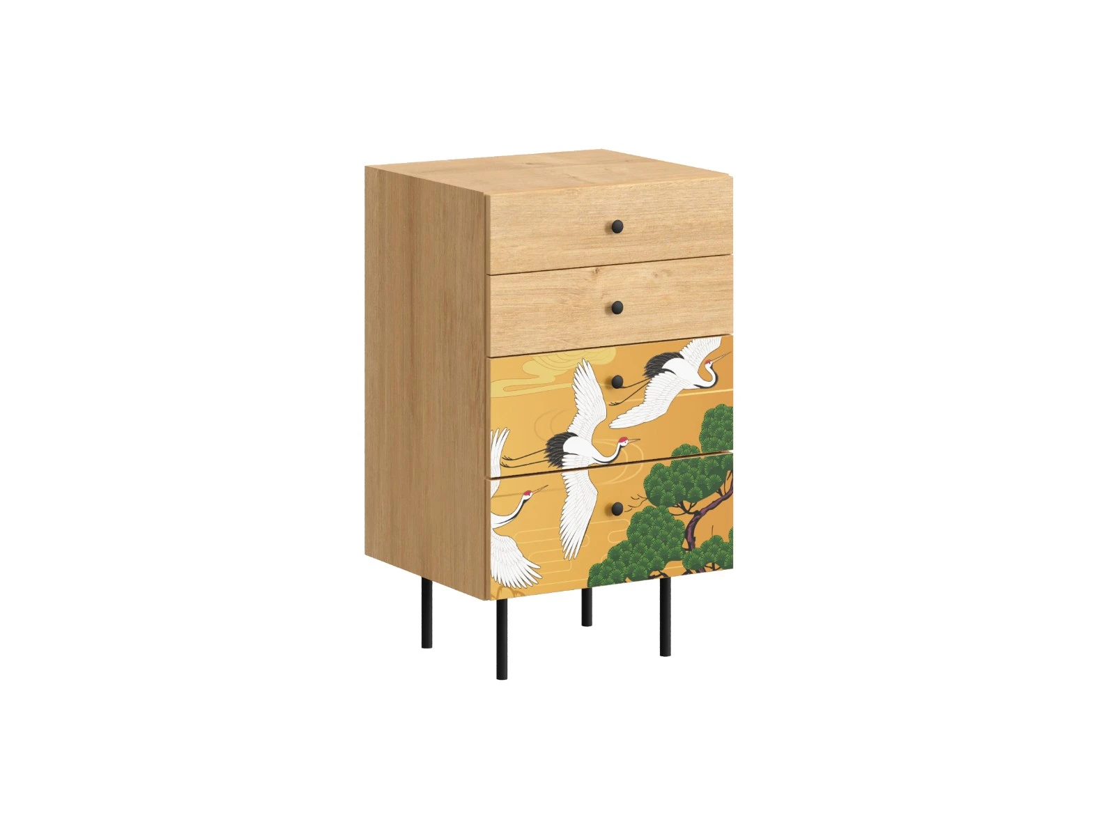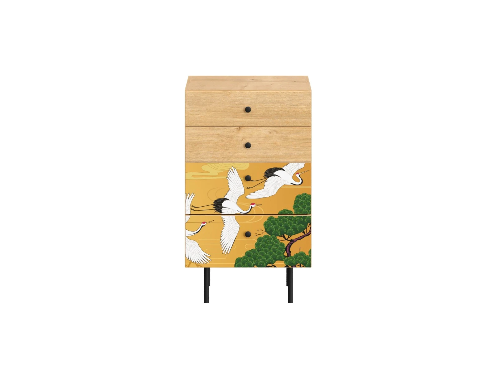 Корпусная мебель, с которой можно составить множество решений для гостиной, детской, кухни, спальни, прихожей, рабочей зоны. Комоды, шкафы, тумбы, столы, витрины, полки, серванты характеризуются универсальностью, многозадачностью, надёжными устойчивыми конструкциями. Имеют выразительный внешний вид, вдохновленный направлением ретро. Смотрятся легко и воздушно за счет деревянных ножек, минимального количества декоративных элементов, спокойных природных оттенков. Их можно использовать в качестве систем хранения, элементов для зонирования, фокусных точек. В дизайне ярко выражена доминанта прямых форм, графичности, лаконичных линий и элегантного исполнения. Что даёт пространству ощущение размеренности, сбалансированности, упорядоченности. Подходят интерьерам как с нейтральной базой, так и локациям с интенсивными цветовыми блоками. Индивидуальности добавят модели с оригинальными паттернами на фасадах. Предметы коллекции Frida гармонично впишутся в эклектичные и стилизованные интерьеры. Ручки входят в стоимость изделия. Высота опор 160 мм. Изображение, нанесенное на фасады, устойчиво к выцветанию, истиранию и влаге. Однако длительное воздействие воды, различных растворителей, спиртосодержащих жидкостей и высоких температур, увеличивают риск повреждения целостности покрытия. Поэтому при использовании необходимо соблюдать ряд правил: 1. Протирайте поверхность с рисунком влажной (но не мокрой) тканью. 2. Используйте мягкие ткани, например, салфетки для стекла или зеркал. 3. Не используйте для обработки поверхности с нанесенным на нее рисунком чистящие порошки и средства, в состав которых входят ацетон, растворитель или спирт. 4. Не используйте металлические губки и щетки с жесткой щетиной. 5. Избегайте ударов, падения, царапания, трения изделий с фотопечатью.