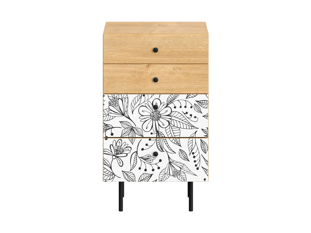 Корпусная мебель, с которой можно составить множество решений для гостиной, детской, кухни, спальни, прихожей, рабочей зоны. Комоды, шкафы, тумбы, столы, витрины, полки, серванты характеризуются универсальностью, многозадачностью, надёжными устойчивыми конструкциями. Имеют выразительный внешний вид, вдохновленный направлением ретро. Смотрятся легко и воздушно за счет деревянных ножек, минимального количества декоративных элементов, спокойных природных оттенков. Их можно использовать в качестве систем хранения, элементов для зонирования, фокусных точек. В дизайне ярко выражена доминанта прямых форм, графичности, лаконичных линий и элегантного исполнения. Что даёт пространству ощущение размеренности, сбалансированности, упорядоченности. Подходят интерьерам как с нейтральной базой, так и локациям с интенсивными цветовыми блоками. Индивидуальности добавят модели с оригинальными паттернами на фасадах. Предметы коллекции Frida гармонично впишутся в эклектичные и стилизованные интерьеры. Ручки входят в стоимость изделия.. Высота опор 160 мм. Изображение, нанесенное на фасады, устойчиво к выцветанию, истиранию и влаге. Однако длительное воздействие воды, различных растворителей, спиртосодержащих жидкостей и высоких температур, увеличивают риск повреждения целостности покрытия. Поэтому при использовании необходимо соблюдать ряд правил: 1. Протирайте поверхность с рисунком влажной (но не мокрой) тканью. 2. Используйте мягкие ткани, например, салфетки для стекла или зеркал. 3. Не используйте для обработки поверхности с нанесенным на нее рисунком чистящие порошки и средства, в состав которых входят ацетон, растворитель или спирт. 4. Не используйте металлические губки и щетки с жесткой щетиной. 5. Избегайте ударов, падения, царапания, трения изделий с фотопечатью.