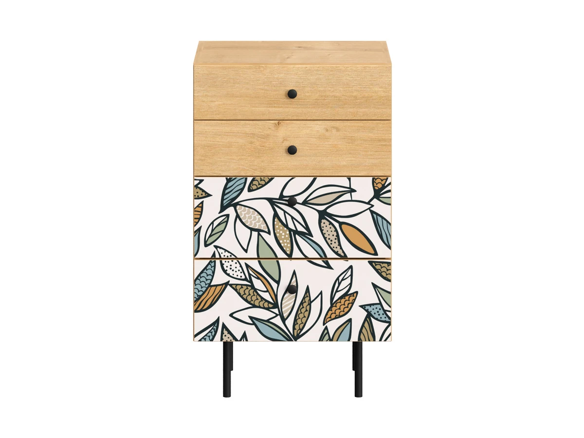 Корпусная мебель, с которой можно составить множество решений для гостиной, детской, кухни, спальни, прихожей, рабочей зоны. Комоды, шкафы, тумбы, столы, витрины, полки, серванты характеризуются универсальностью, многозадачностью, надёжными устойчивыми конструкциями. Имеют выразительный внешний вид, вдохновленный направлением ретро. Смотрятся легко и воздушно за счет деревянных ножек, минимального количества декоративных элементов, спокойных природных оттенков. Их можно использовать в качестве систем хранения, элементов для зонирования, фокусных точек. В дизайне ярко выражена доминанта прямых форм, графичности, лаконичных линий и элегантного исполнения. Что даёт пространству ощущение размеренности, сбалансированности, упорядоченности. Подходят интерьерам как с нейтральной базой, так и локациям с интенсивными цветовыми блоками. Индивидуальности добавят модели с оригинальными паттернами на фасадах. Предметы коллекции Frida гармонично впишутся в эклектичные и стилизованные интерьеры. Ручки входят в стоимость изделия. Высота опор 160 мм. Изображение, нанесенное на фасады, устойчиво к выцветанию, истиранию и влаге. Однако длительное воздействие воды, различных растворителей, спиртосодержащих жидкостей и высоких температур, увеличивают риск повреждения целостности покрытия. Поэтому при использовании необходимо соблюдать ряд правил: 1. Протирайте поверхность с рисунком влажной (но не мокрой) тканью. 2. Используйте мягкие ткани, например, салфетки для стекла или зеркал. 3. Не используйте для обработки поверхности с нанесенным на нее рисунком чистящие порошки и средства, в состав которых входят ацетон, растворитель или спирт. 4. Не используйте металлические губки и щетки с жесткой щетиной. 5. Избегайте ударов, падения, царапания, трения изделий с фотопечатью.