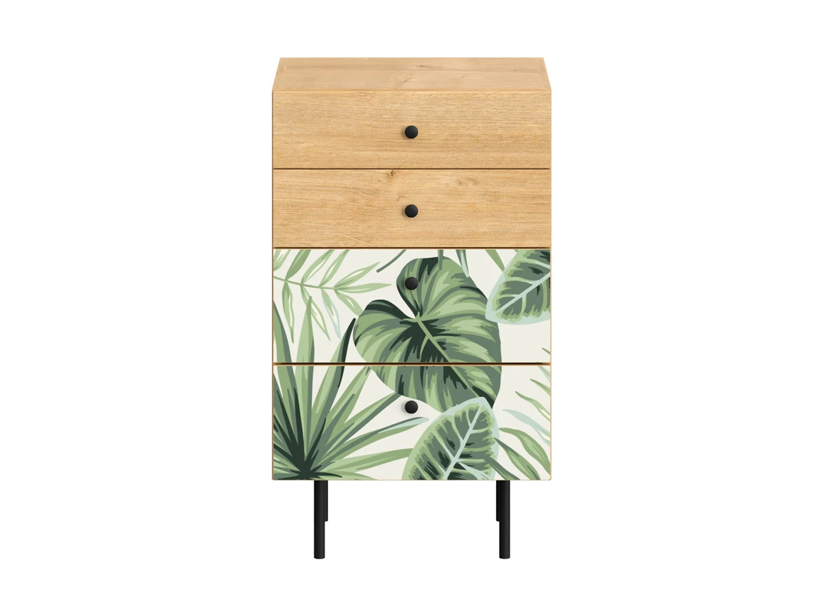 Корпусная мебель, с которой можно составить множество решений для гостиной, детской, кухни, спальни, прихожей, рабочей зоны. Комоды, шкафы, тумбы, столы, витрины, полки, серванты характеризуются универсальностью, многозадачностью, надёжными устойчивыми конструкциями. Имеют выразительный внешний вид, вдохновленный направлением ретро. Смотрятся легко и воздушно за счет деревянных ножек, минимального количества декоративных элементов, спокойных природных оттенков. Их можно использовать в качестве систем хранения, элементов для зонирования, фокусных точек. В дизайне ярко выражена доминанта прямых форм, графичности, лаконичных линий и элегантного исполнения. Что даёт пространству ощущение размеренности, сбалансированности, упорядоченности. Подходят интерьерам как с нейтральной базой, так и локациям с интенсивными цветовыми блоками. Индивидуальности добавят модели с оригинальными паттернами на фасадах. Предметы коллекции Frida гармонично впишутся в эклектичные и стилизованные интерьеры. Ручки входят в стоимость изделия. Высота опор 160 мм. Изображение, нанесенное на фасады, устойчиво к выцветанию, истиранию и влаге. Однако длительное воздействие воды, различных растворителей, спиртосодержащих жидкостей и высоких температур, увеличивают риск повреждения целостности покрытия. Поэтому при использовании необходимо соблюдать ряд правил: 1. Протирайте поверхность с рисунком влажной (но не мокрой) тканью. 2. Используйте мягкие ткани, например, салфетки для стекла или зеркал. 3. Не используйте для обработки поверхности с нанесенным на нее рисунком чистящие порошки и средства, в состав которых входят ацетон, растворитель или спирт. 4. Не используйте металлические губки и щетки с жесткой щетиной. 5. Избегайте ударов, падения, царапания, трения изделий с фотопечатью.