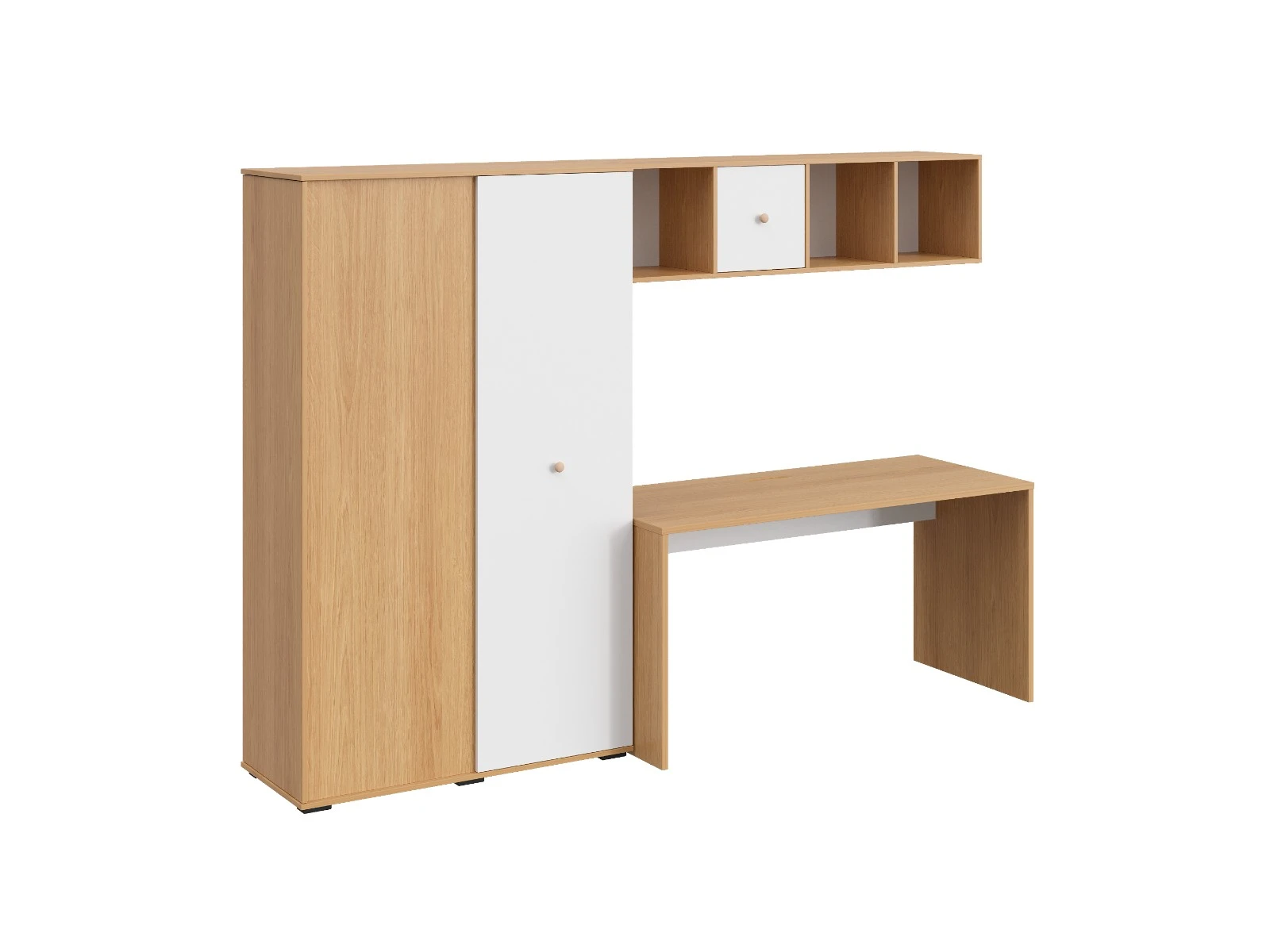 Play — коллекция модульной мебели для детской в спокойных оттенках светлого дерева с локальным добавлением ярких элементов. Естественные формы и цвета подружатся с любой стилевой темой. Подойдет как для дошкольников, так и для подростков. Изделия отвечают главным критериям детской мебели: безопасны, устойчивы, надёжны и эстетичны. Соблюдены экологические показатели, использована ЛДСП класса эмиссии Е1 и Е0,5 — для детской мебели с герметично закрытыми кромками. Из большого количества модулей вы можете спроектировать индивидуальное решение, исходя из потребностей и площади помещения. Для игровой локации, учебного места, спальной зоны, гардероба, хранения игрушек, техники и предметов для творчества — используйте модульные шкафы, стеллажи, тумбы, кровати-чердаки, столы, стеллажи-лестницы. Сквозные стеллажи идеальны в качестве перегородок в детской. Они пропускают свет, не перегружают площадь, позволяют использовать разные декоративные приёмы. Двухярусные кровати и «чердаки» удобно использовать в компактной локации. Шкафы напольные, навесные, тумбы, лаконичные столы — мебель Play поддержит атмосферу порядка и идеальный настрой на учёбу, творчество, поможет развить самостоятельность и аккуратность. Белые фасады отражают свет, освежают интерьер. С коллекцией Play вы легко создадите организованное и креативное пространство, в котором у каждой вещи есть своё место, и где ребенку комфортно учиться, играть, отдыхать, творить. Многофункциональная композиция для детской и молодежной. Ручки в стоимость изделия не включены, приобретаются отдельно.