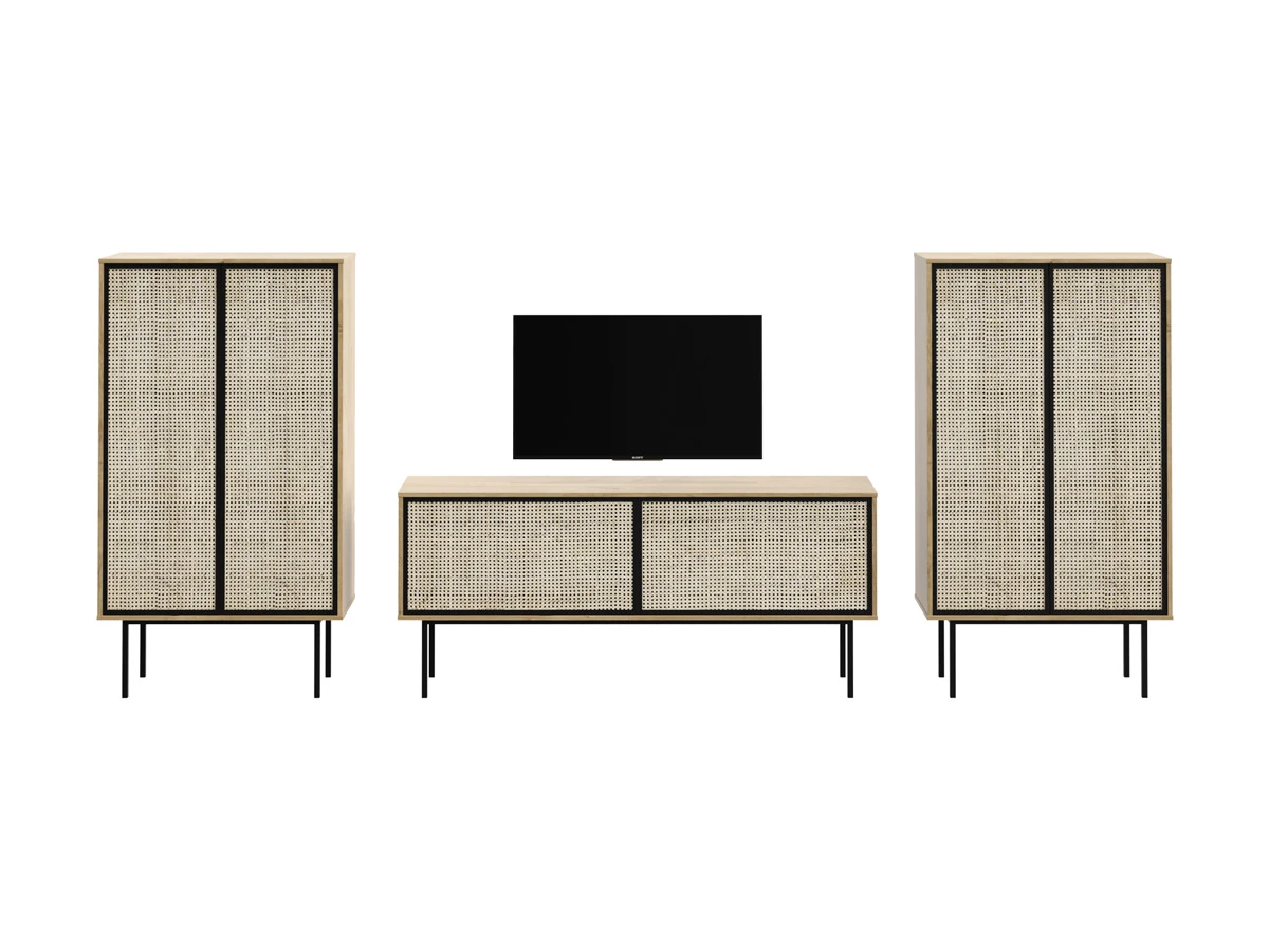 Представляем новую коллекцию мебели для Вашего дома - Boho. Это 6 предметов, созданных в едином стиле, которые прекрасно сочетаются между собой и дополняют друг друга. Разные по размеру и функционалу, вместе они сделают пространство гостиной гармоничным и продуманным. Возможность выбрать фасады - ротанг или зеркало - увеличивает количество возможных сочетаний. Корпуса изделий изготовлены из ЛДСП 16 мм. В декоре - Дуб Корбридж. Кромки т. 0,4 мм. Задние стенки ДВПО 3,2 мм черного цвета. Корпуса установлены на металлические основания - смотрятся легко и элегантно. К тому такое решение упрощает уборку. Основание из трубы 20х20 мм, окрашено в черный цвет. Высота основания - 270 мм, установлено на пластиковые подпятники, что бережет покрытие пола от механических повреждений. Регулировки по высоте нет. Двери вкладные, открываются при нажатии. Предусмотрены два варианта фасадов: 1. Зеркальный: ЛДСП 16мм в декорах, соответствующих корпусам, с наклеенным зеркалом, цветным зеркалом или цветным стеклом в «ёлочку». На дверях кромка шириной 2 мм. черного цвета. 2. Ротанг: рамка из алюминиевого профиля 20х19 мм черного цвета с вставкой из ротанга. Подложкой для ротанга служит прозрачное стекло толщиной 4 мм. Шкаф - высокий - 1498 мм соответственно, вместительный, но очень аккуратный с виду. Распашные двери - простой и надёжный механизм открывания. Фасады вы можете выбрать сами - корпус изготовлен таким образом, что подходит и для зеркального варианта и для фасада из ротанга. Глубина шкафа 400 мм. Ширина - 840 мм. Тумба большая Bohо. Габаритные размеры: - длина 1640 мм - глубина 400 мм - высота 706 мм Может быть выполнена с установкой зеркального фасада или фасада из ротанга. В корпусе два отделения по одной полке в каждом. Тумба большая Boho фасад зеркальный состоит из четырех распашных дверей, по две двери на отделение. Тумба большая Boho фасад ротанг состоит из двух откидных дверей на газлифтах, по одной двери на отделение. Высота опор 27 см.