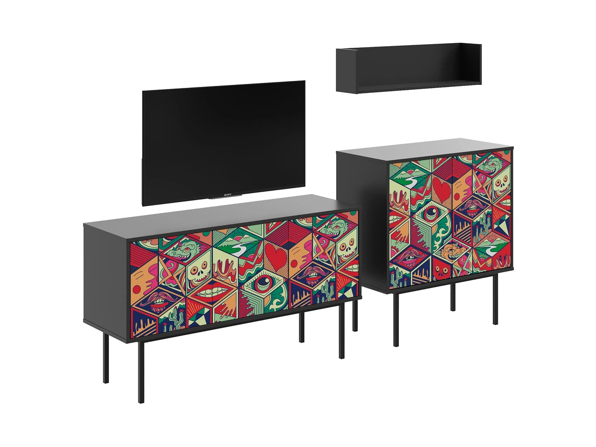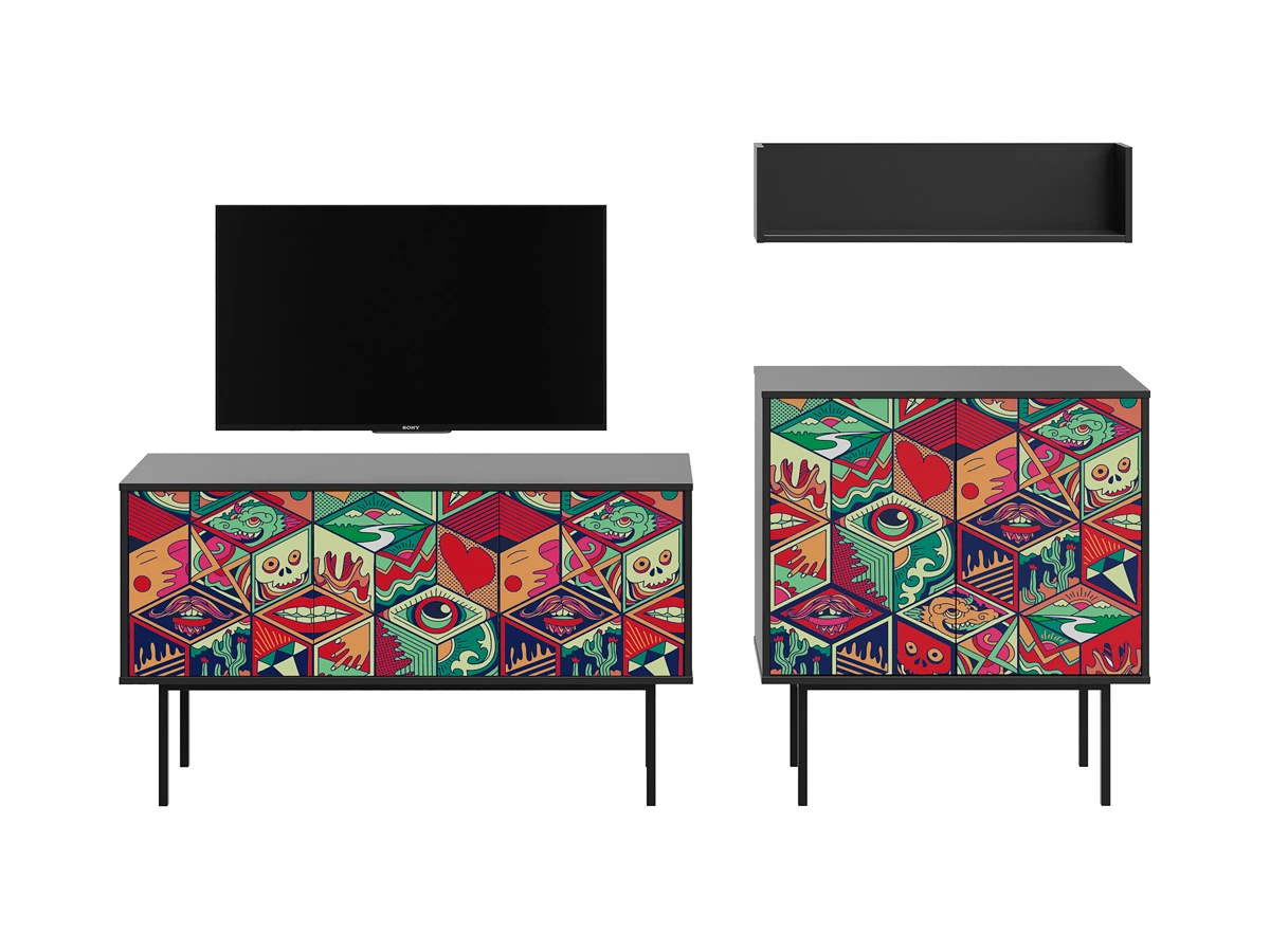Коллекция Boho Color — более 40 комбинаций изящных тумб, шкафов, консолей с оригинальными принтами на фасадах. Узор напечатан на ЛДСП, остаётся ярким и насыщенным спустя годы использования, не выцветает, не тускнеет, смотрится красиво и актуально. Изделия станут притягательной фишкой гостиной, спальни, детской, кабинета, творческой студии, лаундж и бьюти-зоны. За их насыщенными данными скрывается функциональность, которая гарантирует удобное размещение необходимых вещей. Характерная черта серии — тонкие, но прочные металлические ножки. Которые контрастируют с четкими прямоугольными формами, что придает мебели легкий воздушный вид. Поэтому предметы Boho Color не перегружают пространство. Экзотические мотивы, растительные орнаменты, тропические цветы, колоритные узоры рисуют расслабленную атмосферу отдыха и приключений. Добавляют интерьеру многослойности, объёма, сочности, теплоты, природной энергетики. С помощью этих деталей можно задать тон общей композиции, расставить необходимые акценты или подчеркнуть индивидуальность интерьера. Высота опор 27 см. Изображение, нанесенное на фасады, устойчиво к выцветанию, истиранию и влаге. Однако длительное воздействие воды, различных растворителей, спиртосодержащих жидкостей и высоких температур, увеличивают риск повреждения целостности покрытия. Поэтому при использовании необходимо соблюдать ряд правил: 1. Протирайте поверхность с рисунком влажной (но не мокрой) тканью. 2. Используйте мягкие ткани, например, салфетки для стекла или зеркал. 3. Не используйте для обработки поверхности с нанесенным на нее рисунком чистящие порошки и средства, в состав которых входят ацетон, растворитель или спирт. 4. Не используйте металлические губки и щетки с жесткой щетиной. 5. Избегайте ударов, падения, царапания, трения изделий с фотопечатью.