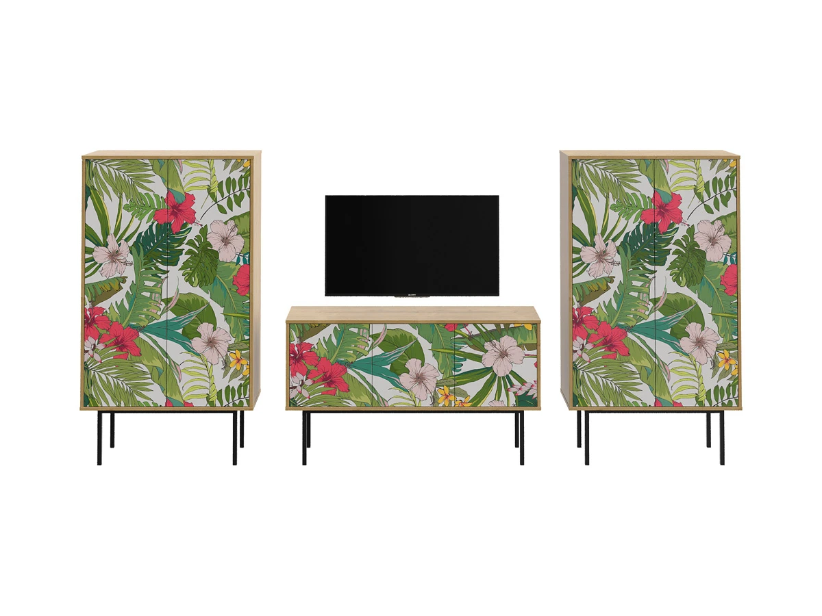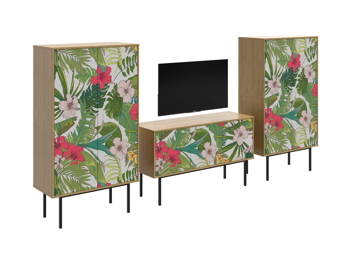 Коллекция Boho Color — более 40 комбинаций изящных тумб, шкафов, консолей с оригинальными принтами на фасадах. Узор напечатан на ЛДСП, остаётся ярким и насыщенным спустя годы использования, не выцветает, не тускнеет, смотрится красиво и актуально. Изделия станут притягательной фишкой гостиной, спальни, детской, кабинета, творческой студии, лаундж и бьюти-зоны. За их насыщенными данными скрывается функциональность, которая гарантирует удобное размещение необходимых вещей. Характерная черта серии — тонкие, но прочные металлические ножки. Которые контрастируют с четкими прямоугольными формами, что придает мебели легкий воздушный вид. Поэтому предметы Boho Color не перегружают пространство. Экзотические мотивы, растительные орнаменты, тропические цветы, колоритные узоры рисуют расслабленную атмосферу отдыха и приключений. Добавляют интерьеру многослойности, объёма, сочности, теплоты, природной энергетики. С помощью этих деталей можно задать тон общей композиции, расставить необходимые акценты или подчеркнуть индивидуальность интерьера. Высота опор 27 см. Изображение, нанесенное на фасады, устойчиво к выцветанию, истиранию и влаге. Однако длительное воздействие воды, различных растворителей, спиртосодержащих жидкостей и высоких температур, увеличивают риск повреждения целостности покрытия. Поэтому при использовании необходимо соблюдать ряд правил: 1. Протирайте поверхность с рисунком влажной (но не мокрой) тканью. 2. Используйте мягкие ткани, например, салфетки для стекла или зеркал. 3. Не используйте для обработки поверхности с нанесенным на нее рисунком чистящие порошки и средства, в состав которых входят ацетон, растворитель или спирт. 4. Не используйте металлические губки и щетки с жесткой щетиной. 5. Избегайте ударов, падения, царапания, трения изделий с фотопечатью.
