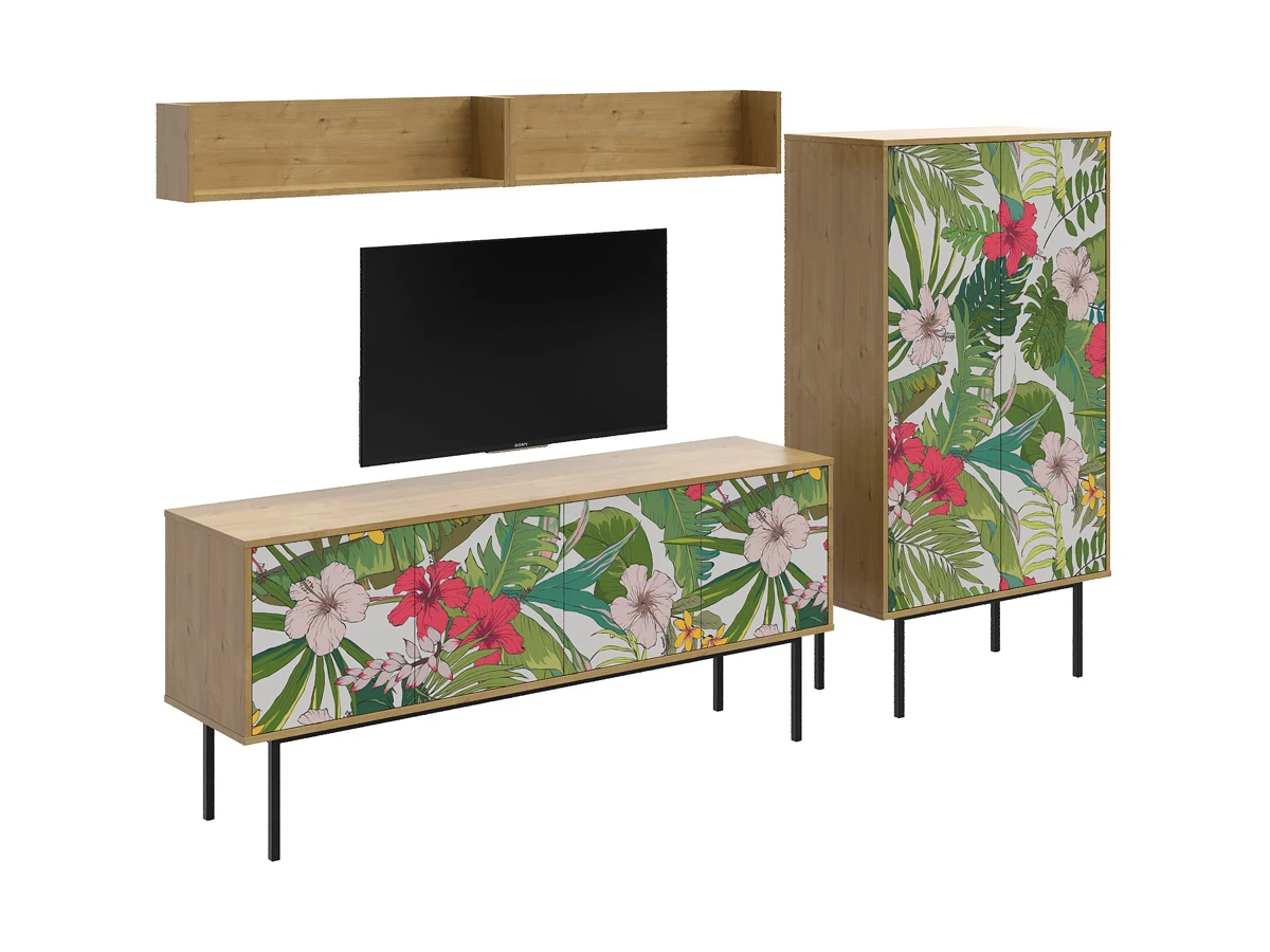 Коллекция Boho Color — более 40 комбинаций изящных тумб, шкафов, консолей с оригинальными принтами на фасадах. Узор напечатан на ЛДСП, остаётся ярким и насыщенным спустя годы использования, не выцветает, не тускнеет, смотрится красиво и актуально. Изделия станут притягательной фишкой гостиной, спальни, детской, кабинета, творческой студии, лаундж и бьюти-зоны. За их насыщенными данными скрывается функциональность, которая гарантирует удобное размещение необходимых вещей. Характерная черта серии — тонкие, но прочные металлические ножки. Которые контрастируют с четкими прямоугольными формами, что придает мебели легкий воздушный вид. Поэтому предметы Boho Color не перегружают пространство. Экзотические мотивы, растительные орнаменты, тропические цветы, колоритные узоры рисуют расслабленную атмосферу отдыха и приключений. Добавляют интерьеру многослойности, объёма, сочности, теплоты, природной энергетики. С помощью этих деталей можно задать тон общей композиции, расставить необходимые акценты или подчеркнуть индивидуальность интерьера. Высота опор 27 см. Изображение, нанесенное на фасады, устойчиво к выцветанию, истиранию и влаге. Однако длительное воздействие воды, различных растворителей, спиртосодержащих жидкостей и высоких температур, увеличивают риск повреждения целостности покрытия. Поэтому при использовании необходимо соблюдать ряд правил: 1. Протирайте поверхность с рисунком влажной (но не мокрой) тканью. 2. Используйте мягкие ткани, например, салфетки для стекла или зеркал. 3. Не используйте для обработки поверхности с нанесенным на нее рисунком чистящие порошки и средства, в состав которых входят ацетон, растворитель или спирт. 4. Не используйте металлические губки и щетки с жесткой щетиной. 5. Избегайте ударов, падения, царапания, трения изделий с фотопечатью.