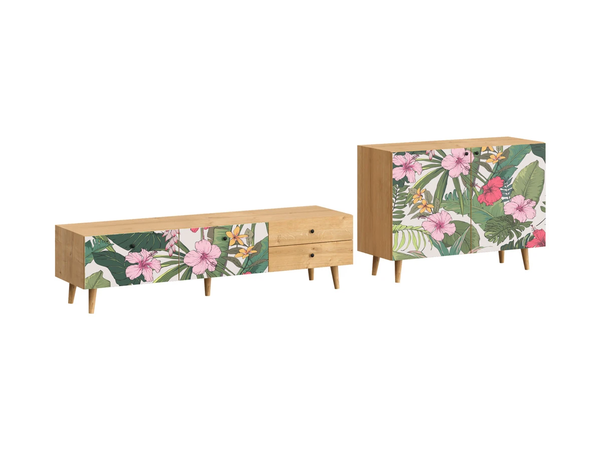Корпусная мебель, с которой можно составить множество решений для гостиной, детской, кухни, спальни, прихожей, рабочей зоны. Комоды, шкафы, тумбы, столы, витрины, полки, серванты характеризуются универсальностью, многозадачностью, надёжными устойчивыми конструкциями. Имеют выразительный внешний вид, вдохновленный направлением ретро. Смотрятся легко и воздушно за счет деревянных ножек, минимального количества декоративных элементов, спокойных природных оттенков. Их можно использовать в качестве систем хранения, элементов для зонирования, фокусных точек. В дизайне ярко выражена доминанта прямых форм, графичности, лаконичных линий и элегантного исполнения. Что даёт пространству ощущение размеренности, сбалансированности, упорядоченности. Подходят интерьерам как с нейтральной базой, так и локациям с интенсивными цветовыми блоками. Индивидуальности добавят модели с оригинальными паттернами на фасадах. Предметы коллекции Frida гармонично впишутся в эклектичные и стилизованные интерьеры. Ручки входят в стоимость изделия. Высота опор 160 мм. Изображение, нанесенное на фасады, устойчиво к выцветанию, истиранию и влаге. Однако длительное воздействие воды, различных растворителей, спиртосодержащих жидкостей и высоких температур, увеличивают риск повреждения целостности покрытия. Поэтому при использовании необходимо соблюдать ряд правил: 1. Протирайте поверхность с рисунком влажной (но не мокрой) тканью. 2. Используйте мягкие ткани, например, салфетки для стекла или зеркал. 3. Не используйте для обработки поверхности с нанесенным на нее рисунком чистящие порошки и средства, в состав которых входят ацетон, растворитель или спирт. 4. Не используйте металлические губки и щетки с жесткой щетиной. 5. Избегайте ударов, падения, царапания, трения изделий с фотопечатью.
