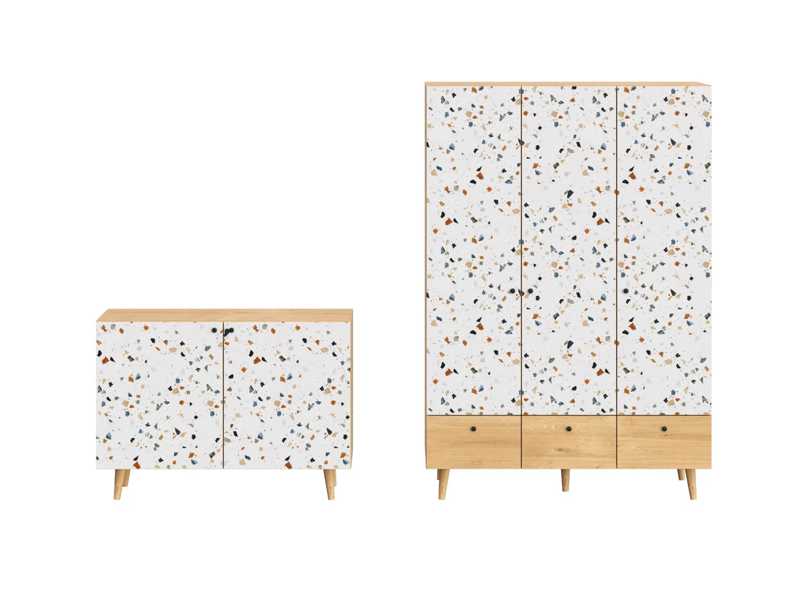 Корпусная мебель, с которой можно составить множество решений для гостиной, детской, кухни, спальни, прихожей, рабочей зоны. Комоды, шкафы, тумбы, столы, витрины, полки, серванты характеризуются универсальностью, многозадачностью, надёжными устойчивыми конструкциями. Имеют выразительный внешний вид, вдохновленный направлением ретро. Смотрятся легко и воздушно за счет деревянных ножек, минимального количества декоративных элементов, спокойных природных оттенков. Их можно использовать в качестве систем хранения, элементов для зонирования, фокусных точек. В дизайне ярко выражена доминанта прямых форм, графичности, лаконичных линий и элегантного исполнения. Что даёт пространству ощущение размеренности, сбалансированности, упорядоченности. Подходят интерьерам как с нейтральной базой, так и локациям с интенсивными цветовыми блоками. Индивидуальности добавят модели с оригинальными паттернами на фасадах. Предметы коллекции Frida гармонично впишутся в эклектичные и стилизованные интерьеры. Ручки входят в стоимость изделия. Высота опор 160 мм.