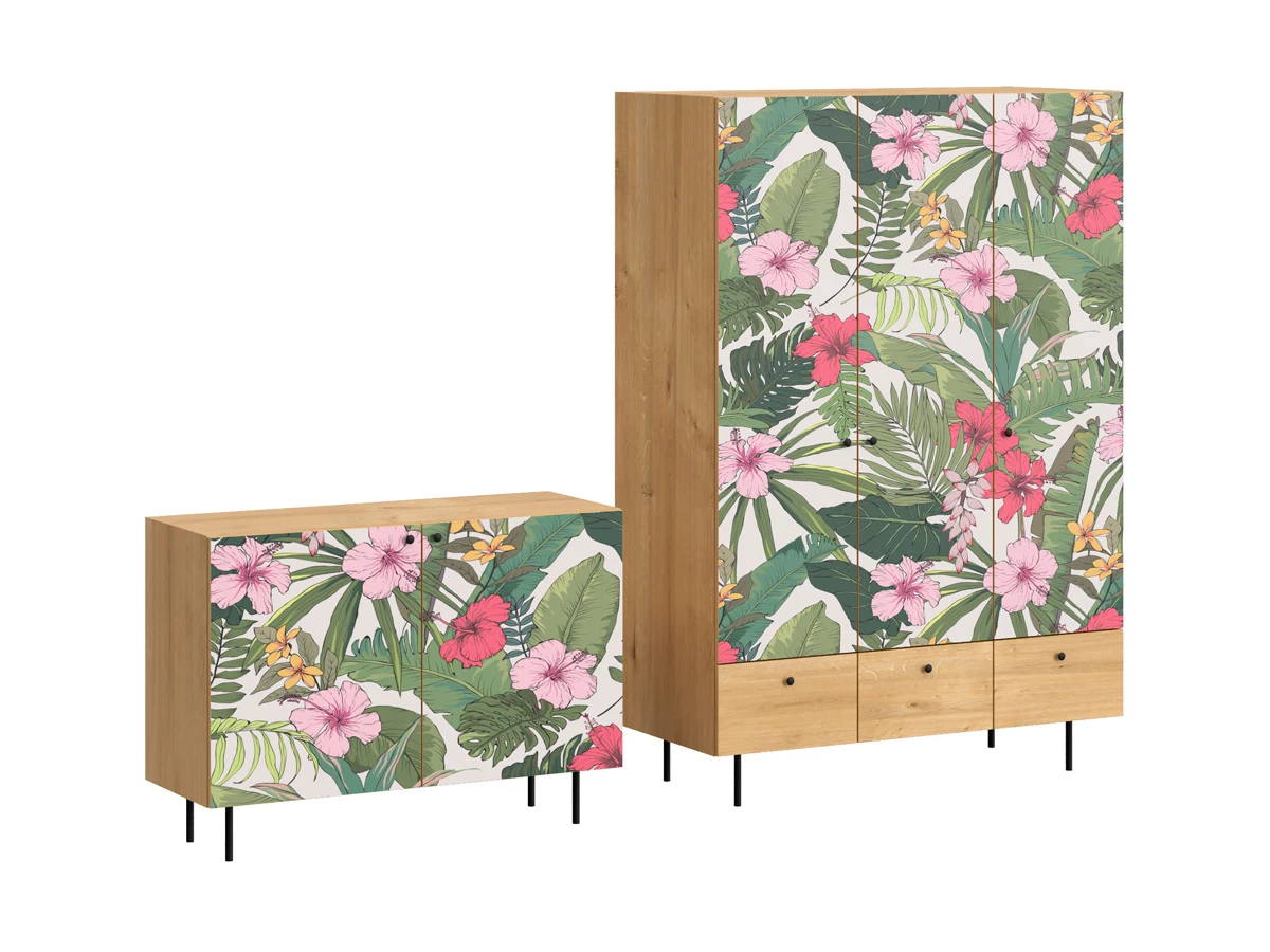 Корпусная мебель, с которой можно составить множество решений для гостиной, детской, кухни, спальни, прихожей, рабочей зоны. Комоды, шкафы, тумбы, столы, витрины, полки, серванты характеризуются универсальностью, многозадачностью, надёжными устойчивыми конструкциями. Имеют выразительный внешний вид, вдохновленный направлением ретро. Смотрятся легко и воздушно за счет деревянных ножек, минимального количества декоративных элементов, спокойных природных оттенков. Их можно использовать в качестве систем хранения, элементов для зонирования, фокусных точек. В дизайне ярко выражена доминанта прямых форм, графичности, лаконичных линий и элегантного исполнения. Что даёт пространству ощущение размеренности, сбалансированности, упорядоченности. Подходят интерьерам как с нейтральной базой, так и локациям с интенсивными цветовыми блоками. Индивидуальности добавят модели с оригинальными паттернами на фасадах. Предметы коллекции Frida гармонично впишутся в эклектичные и стилизованные интерьеры. Ручки входят в стоимость изделия. Высота опор 160 мм. Изображение, нанесенное на фасады, устойчиво к выцветанию, истиранию и влаге. Однако длительное воздействие воды, различных растворителей, спиртосодержащих жидкостей и высоких температур, увеличивают риск повреждения целостности покрытия. Поэтому при использовании необходимо соблюдать ряд правил: 1. Протирайте поверхность с рисунком влажной (но не мокрой) тканью. 2. Используйте мягкие ткани, например, салфетки для стекла или зеркал. 3. Не используйте для обработки поверхности с нанесенным на нее рисунком чистящие порошки и средства, в состав которых входят ацетон, растворитель или спирт. 4. Не используйте металлические губки и щетки с жесткой щетиной. 5. Избегайте ударов, падения, царапания, трения изделий с фотопечатью.