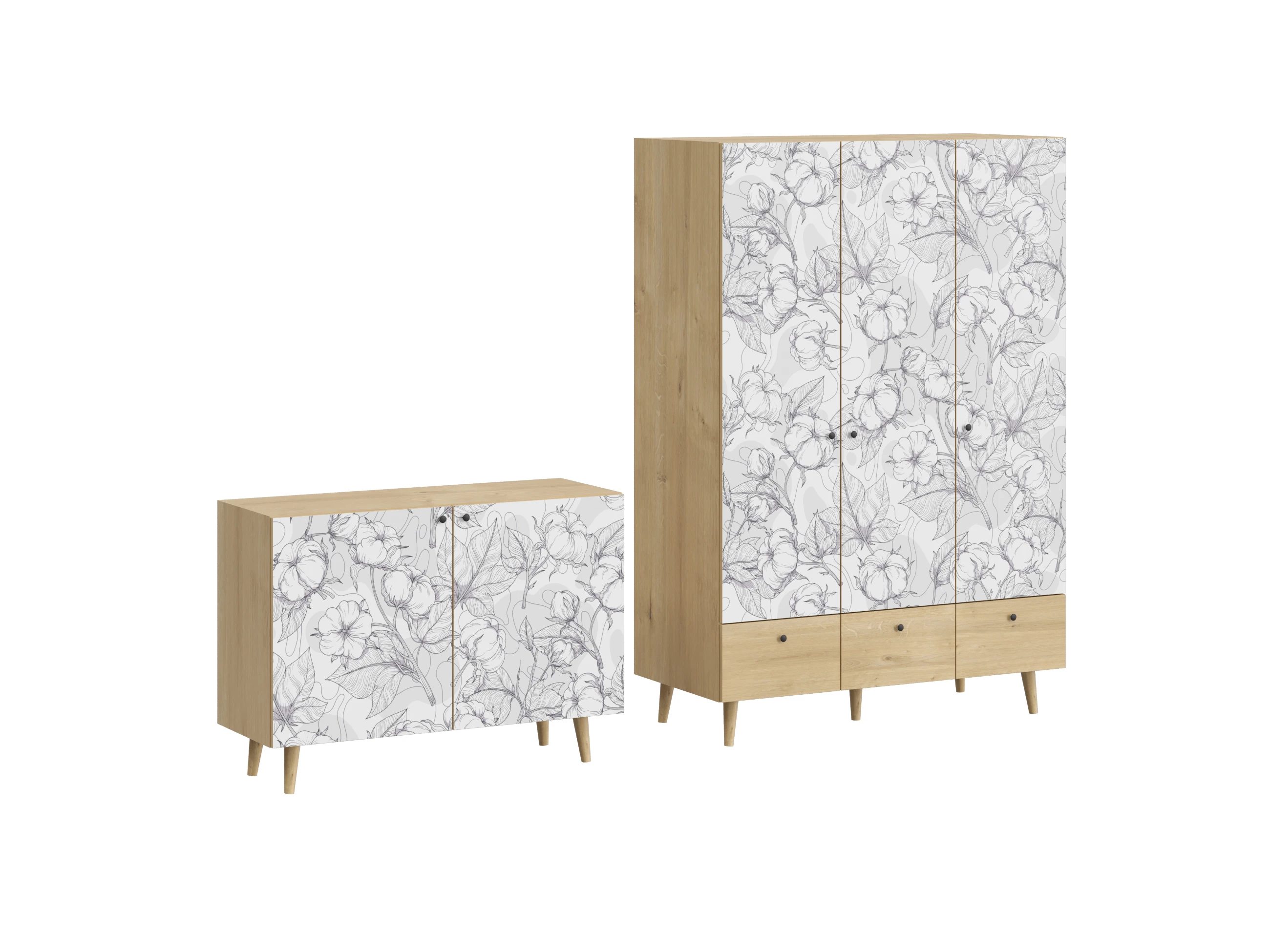 Корпусная мебель, с которой можно составить множество решений для гостиной, детской, кухни, спальни, прихожей, рабочей зоны. Комоды, шкафы, тумбы, столы, витрины, полки, серванты характеризуются универсальностью, многозадачностью, надёжными устойчивыми конструкциями. Имеют выразительный внешний вид, вдохновленный направлением ретро. Смотрятся легко и воздушно за счет деревянных ножек, минимального количества декоративных элементов, спокойных природных оттенков. Их можно использовать в качестве систем хранения, элементов для зонирования, фокусных точек. В дизайне ярко выражена доминанта прямых форм, графичности, лаконичных линий и элегантного исполнения. Что даёт пространству ощущение размеренности, сбалансированности, упорядоченности. Подходят интерьерам как с нейтральной базой, так и локациям с интенсивными цветовыми блоками. Индивидуальности добавят модели с оригинальными паттернами на фасадах. Предметы коллекции Frida гармонично впишутся в эклектичные и стилизованные интерьеры. Ручки входят в стоимость изделия. Высота опор 160 мм.