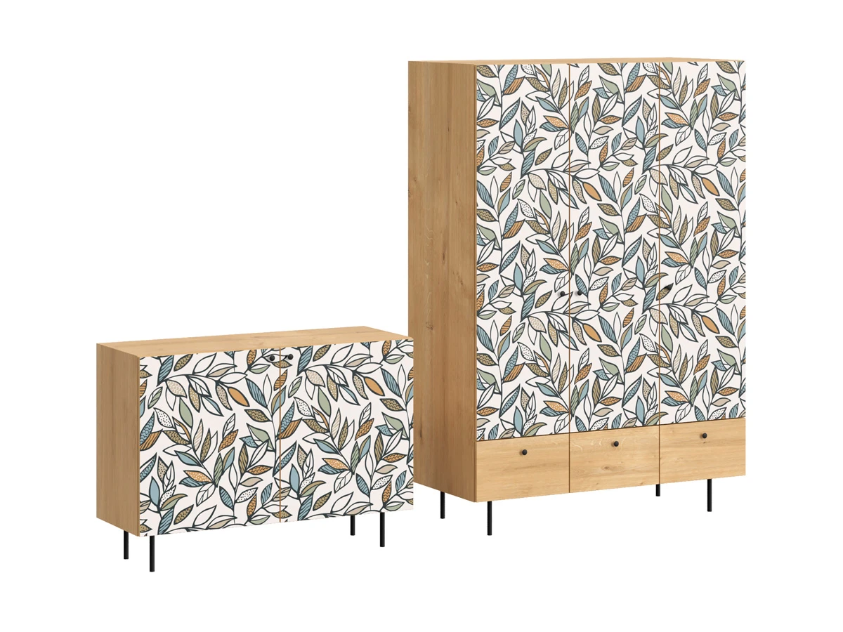 Корпусная мебель, с которой можно составить множество решений для гостиной, детской, кухни, спальни, прихожей, рабочей зоны. Комоды, шкафы, тумбы, столы, витрины, полки, серванты характеризуются универсальностью, многозадачностью, надёжными устойчивыми конструкциями. Имеют выразительный внешний вид, вдохновленный направлением ретро. Смотрятся легко и воздушно за счет деревянных ножек, минимального количества декоративных элементов, спокойных природных оттенков. Их можно использовать в качестве систем хранения, элементов для зонирования, фокусных точек. В дизайне ярко выражена доминанта прямых форм, графичности, лаконичных линий и элегантного исполнения. Что даёт пространству ощущение размеренности, сбалансированности, упорядоченности. Подходят интерьерам как с нейтральной базой, так и локациям с интенсивными цветовыми блоками. Индивидуальности добавят модели с оригинальными паттернами на фасадах. Предметы коллекции Frida гармонично впишутся в эклектичные и стилизованные интерьеры. Ручки входят в стоимость изделия. Высота опор 160 мм. Изображение, нанесенное на фасады, устойчиво к выцветанию, истиранию и влаге. Однако длительное воздействие воды, различных растворителей, спиртосодержащих жидкостей и высоких температур, увеличивают риск повреждения целостности покрытия. Поэтому при использовании необходимо соблюдать ряд правил: 1. Протирайте поверхность с рисунком влажной (но не мокрой) тканью. 2. Используйте мягкие ткани, например, салфетки для стекла или зеркал. 3. Не используйте для обработки поверхности с нанесенным на нее рисунком чистящие порошки и средства, в состав которых входят ацетон, растворитель или спирт. 4. Не используйте металлические губки и щетки с жесткой щетиной. 5. Избегайте ударов, падения, царапания, трения изделий с фотопечатью.