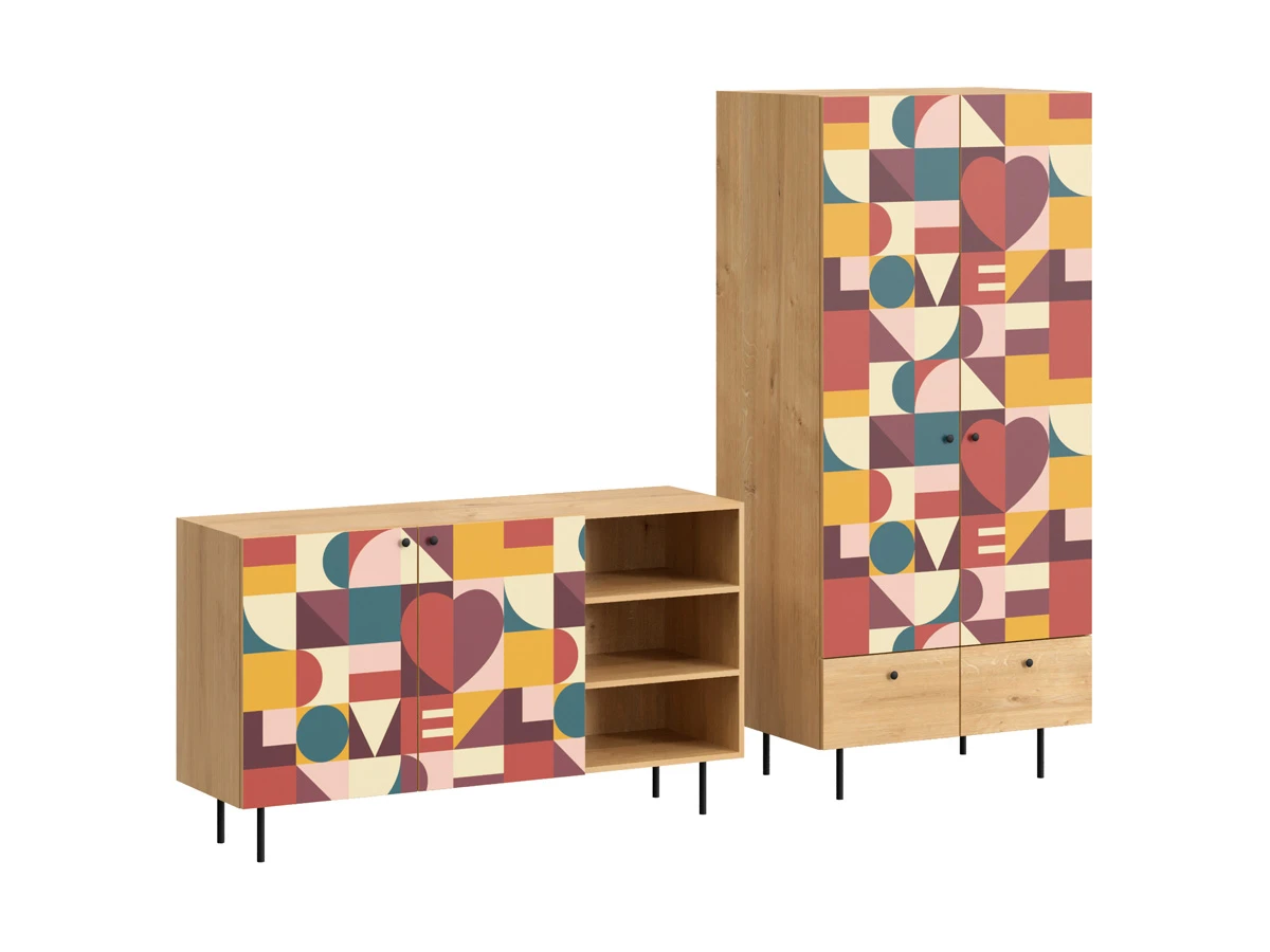 Корпусная мебель, с которой можно составить множество решений для гостиной, детской, кухни, спальни, прихожей, рабочей зоны. Комоды, шкафы, тумбы, столы, витрины, полки, серванты характеризуются универсальностью, многозадачностью, надёжными устойчивыми конструкциями. Имеют выразительный внешний вид, вдохновленный направлением ретро. Смотрятся легко и воздушно за счет деревянных ножек, минимального количества декоративных элементов, спокойных природных оттенков. Их можно использовать в качестве систем хранения, элементов для зонирования, фокусных точек. В дизайне ярко выражена доминанта прямых форм, графичности, лаконичных линий и элегантного исполнения. Что даёт пространству ощущение размеренности, сбалансированности, упорядоченности. Подходят интерьерам как с нейтральной базой, так и локациям с интенсивными цветовыми блоками. Индивидуальности добавят модели с оригинальными паттернами на фасадах. Предметы коллекции Frida гармонично впишутся в эклектичные и стилизованные интерьеры. Ручки входят в стоимость изделия. Высота опор 160 мм. Изображение, нанесенное на фасады, устойчиво к выцветанию, истиранию и влаге. Однако длительное воздействие воды, различных растворителей, спиртосодержащих жидкостей и высоких температур, увеличивают риск повреждения целостности покрытия. Поэтому при использовании необходимо соблюдать ряд правил: 1. Протирайте поверхность с рисунком влажной (но не мокрой) тканью. 2. Используйте мягкие ткани, например, салфетки для стекла или зеркал. 3. Не используйте для обработки поверхности с нанесенным на нее рисунком чистящие порошки и средства, в состав которых входят ацетон, растворитель или спирт. 4. Не используйте металлические губки и щетки с жесткой щетиной. 5. Избегайте ударов, падения, царапания, трения изделий с фотопечатью.