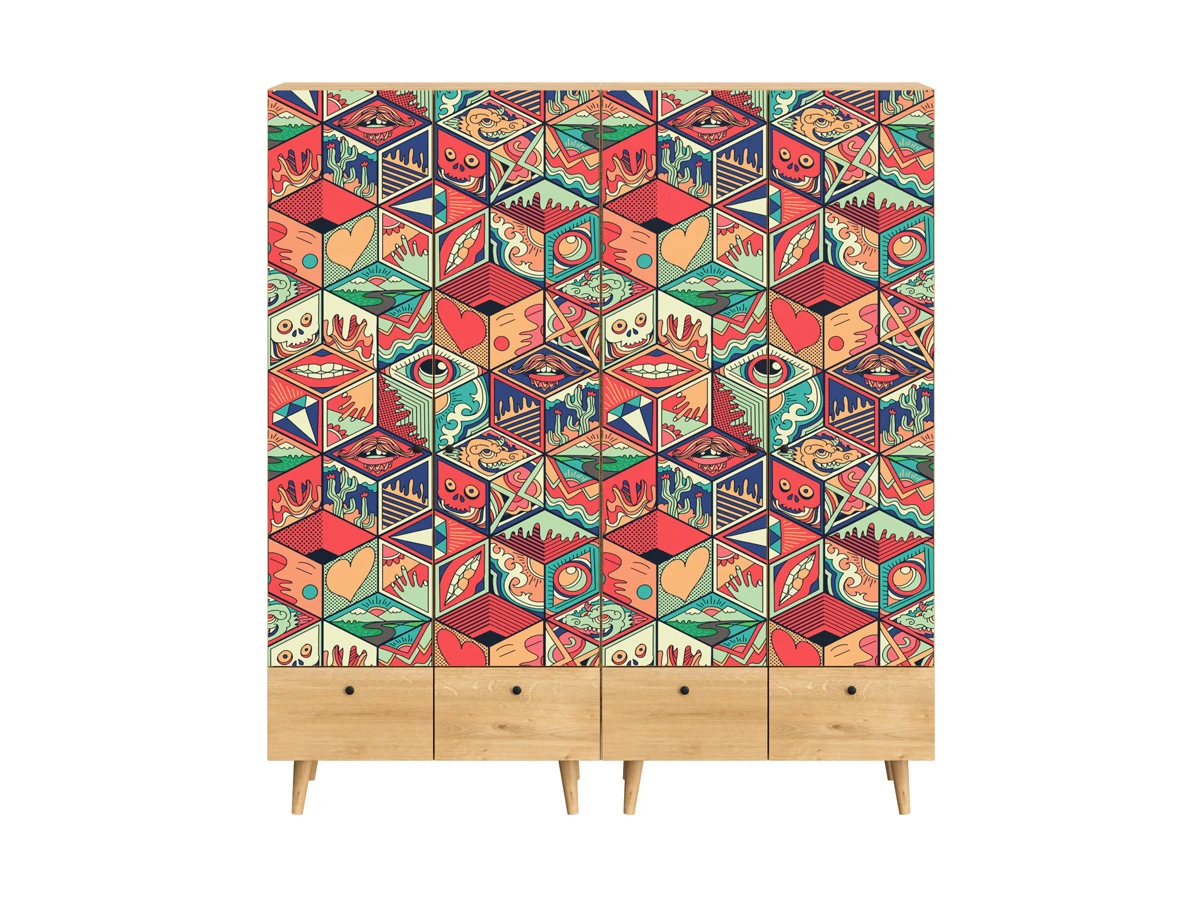 Корпусная мебель, с которой можно составить множество решений для гостиной, детской, кухни, спальни, прихожей, рабочей зоны. Комоды, шкафы, тумбы, столы, витрины, полки, серванты характеризуются универсальностью, многозадачностью, надёжными устойчивыми конструкциями. Имеют выразительный внешний вид, вдохновленный направлением ретро. Смотрятся легко и воздушно за счет деревянных ножек, минимального количества декоративных элементов, спокойных природных оттенков. Их можно использовать в качестве систем хранения, элементов для зонирования, фокусных точек. В дизайне ярко выражена доминанта прямых форм, графичности, лаконичных линий и элегантного исполнения. Что даёт пространству ощущение размеренности, сбалансированности, упорядоченности. Подходят интерьерам как с нейтральной базой, так и локациям с интенсивными цветовыми блоками. Индивидуальности добавят модели с оригинальными паттернами на фасадах. Предметы коллекции Frida гармонично впишутся в эклектичные и стилизованные интерьеры. Ручки входят в стоимость изделия. Высота опор 160 мм. Изображение, нанесенное на фасады, устойчиво к выцветанию, истиранию и влаге. Однако длительное воздействие воды, различных растворителей, спиртосодержащих жидкостей и высоких температур, увеличивают риск повреждения целостности покрытия. Поэтому при использовании необходимо соблюдать ряд правил: 1. Протирайте поверхность с рисунком влажной (но не мокрой) тканью. 2. Используйте мягкие ткани, например, салфетки для стекла или зеркал. 3. Не используйте для обработки поверхности с нанесенным на нее рисунком чистящие порошки и средства, в состав которых входят ацетон, растворитель или спирт. 4. Не используйте металлические губки и щетки с жесткой щетиной. 5. Избегайте ударов, падения, царапания, трения изделий с фотопечатью.
