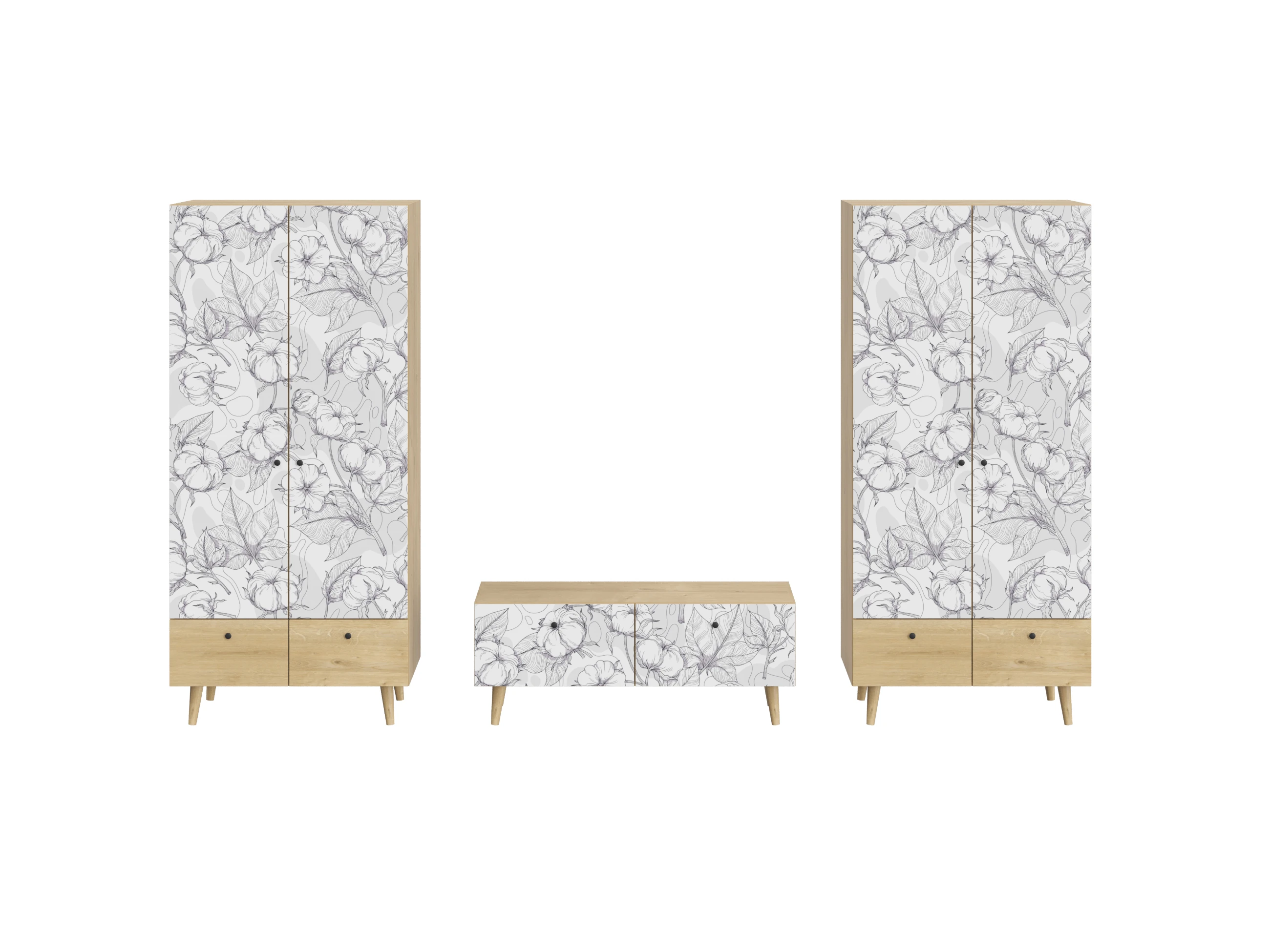 Корпусная мебель, с которой можно составить множество решений для гостиной, детской, кухни, спальни, прихожей, рабочей зоны. Комоды, шкафы, тумбы, столы, витрины, полки, серванты характеризуются универсальностью, многозадачностью, надёжными устойчивыми конструкциями. Имеют выразительный внешний вид, вдохновленный направлением ретро. Смотрятся легко и воздушно за счет деревянных ножек, минимального количества декоративных элементов, спокойных природных оттенков. Их можно использовать в качестве систем хранения, элементов для зонирования, фокусных точек. В дизайне ярко выражена доминанта прямых форм, графичности, лаконичных линий и элегантного исполнения. Что даёт пространству ощущение размеренности, сбалансированности, упорядоченности. Подходят интерьерам как с нейтральной базой, так и локациям с интенсивными цветовыми блоками. Индивидуальности добавят модели с оригинальными паттернами на фасадах. Предметы коллекции Frida гармонично впишутся в эклектичные и стилизованные интерьеры. Ручки входят в стоимость изделия. Высота опор 160 мм. Изображение, нанесенное на фасады, устойчиво к выцветанию, истиранию и влаге. Однако длительное воздействие воды, различных растворителей, спиртосодержащих жидкостей и высоких температур, увеличивают риск повреждения целостности покрытия. Поэтому при использовании необходимо соблюдать ряд правил: 1. Протирайте поверхность с рисунком влажной (но не мокрой) тканью. 2. Используйте мягкие ткани, например, салфетки для стекла или зеркал. 3. Не используйте для обработки поверхности с нанесенным на нее рисунком чистящие порошки и средства, в состав которых входят ацетон, растворитель или спирт. 4. Не используйте металлические губки и щетки с жесткой щетиной. 5. Избегайте ударов, падения, царапания, трения изделий с фотопечатью.