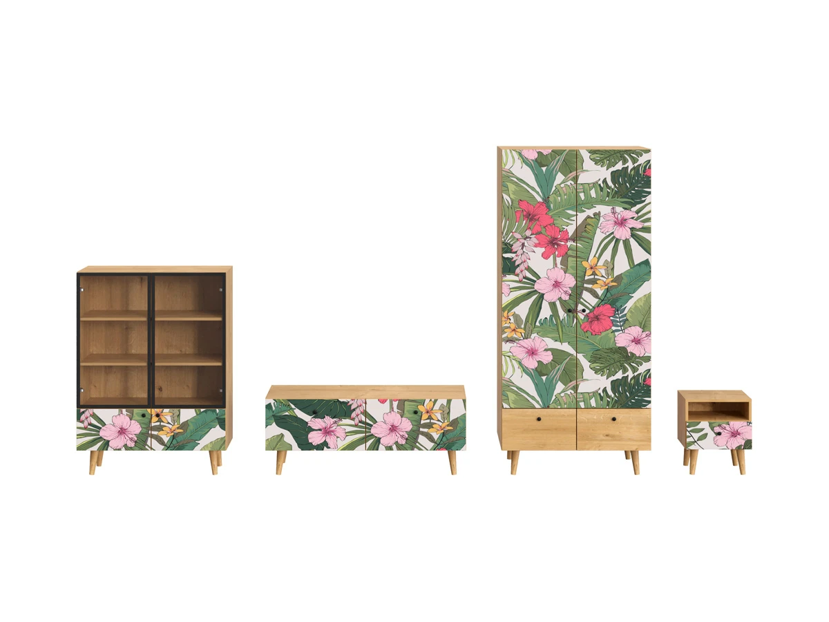 Корпусная мебель, с которой можно составить множество решений для гостиной, детской, кухни, спальни, прихожей, рабочей зоны. Комоды, шкафы, тумбы, столы, витрины, полки, серванты характеризуются универсальностью, многозадачностью, надёжными устойчивыми конструкциями. Имеют выразительный внешний вид, вдохновленный направлением ретро. Смотрятся легко и воздушно за счет деревянных ножек, минимального количества декоративных элементов, спокойных природных оттенков. Их можно использовать в качестве систем хранения, элементов для зонирования, фокусных точек. В дизайне ярко выражена доминанта прямых форм, графичности, лаконичных линий и элегантного исполнения. Что даёт пространству ощущение размеренности, сбалансированности, упорядоченности. Подходят интерьерам как с нейтральной базой, так и локациям с интенсивными цветовыми блоками. Индивидуальности добавят модели с оригинальными паттернами на фасадах. Предметы коллекции Frida гармонично впишутся в эклектичные и стилизованные интерьеры. Ручки входят в стоимость изделия. Высота опор 160 мм. Изображение, нанесенное на фасады, устойчиво к выцветанию, истиранию и влаге. Однако длительное воздействие воды, различных растворителей, спиртосодержащих жидкостей и высоких температур, увеличивают риск повреждения целостности покрытия. Поэтому при использовании необходимо соблюдать ряд правил: 1. Протирайте поверхность с рисунком влажной (но не мокрой) тканью. 2. Используйте мягкие ткани, например, салфетки для стекла или зеркал. 3. Не используйте для обработки поверхности с нанесенным на нее рисунком чистящие порошки и средства, в состав которых входят ацетон, растворитель или спирт. 4. Не используйте металлические губки и щетки с жесткой щетиной. 5. Избегайте ударов, падения, царапания, трения изделий с фотопечатью.