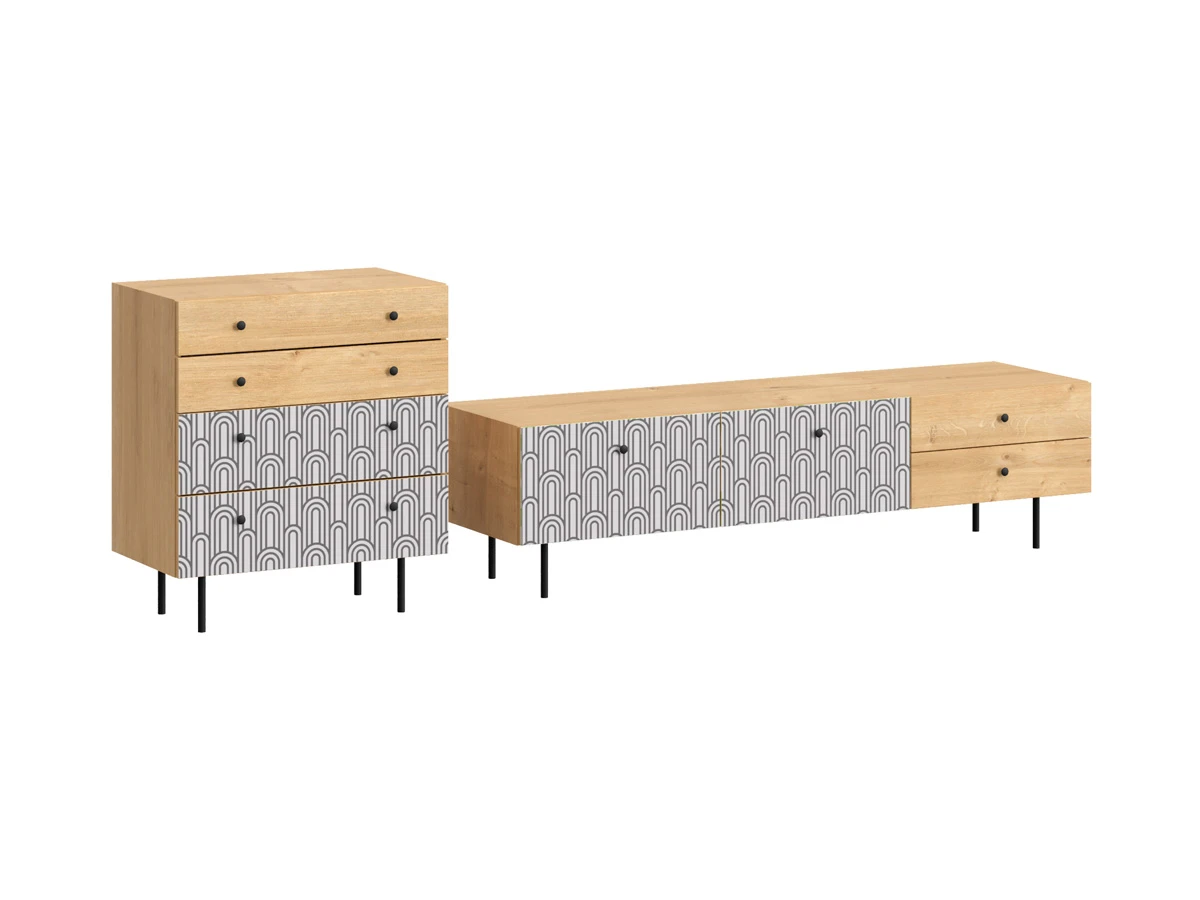 Корпусная мебель, с которой можно составить множество решений для гостиной, детской, кухни, спальни, прихожей, рабочей зоны. Комоды, шкафы, тумбы, столы, витрины, полки, серванты характеризуются универсальностью, многозадачностью, надёжными устойчивыми конструкциями. Имеют выразительный внешний вид, вдохновленный направлением ретро. Смотрятся легко и воздушно за счет деревянных ножек, минимального количества декоративных элементов, спокойных природных оттенков. Их можно использовать в качестве систем хранения, элементов для зонирования, фокусных точек. В дизайне ярко выражена доминанта прямых форм, графичности, лаконичных линий и элегантного исполнения. Что даёт пространству ощущение размеренности, сбалансированности, упорядоченности. Подходят интерьерам как с нейтральной базой, так и локациям с интенсивными цветовыми блоками. Индивидуальности добавят модели с оригинальными паттернами на фасадах. Предметы коллекции Frida гармонично впишутся в эклектичные и стилизованные интерьеры. Ручки входят в стоимость изделия. Высота опор 160 мм. Изображение, нанесенное на фасады, устойчиво к выцветанию, истиранию и влаге. Однако длительное воздействие воды, различных растворителей, спиртосодержащих жидкостей и высоких температур, увеличивают риск повреждения целостности покрытия. Поэтому при использовании необходимо соблюдать ряд правил: 1. Протирайте поверхность с рисунком влажной (но не мокрой) тканью. 2. Используйте мягкие ткани, например, салфетки для стекла или зеркал. 3. Не используйте для обработки поверхности с нанесенным на нее рисунком чистящие порошки и средства, в состав которых входят ацетон, растворитель или спирт. 4. Не используйте металлические губки и щетки с жесткой щетиной. 5. Избегайте ударов, падения, царапания, трения изделий с фотопечатью.