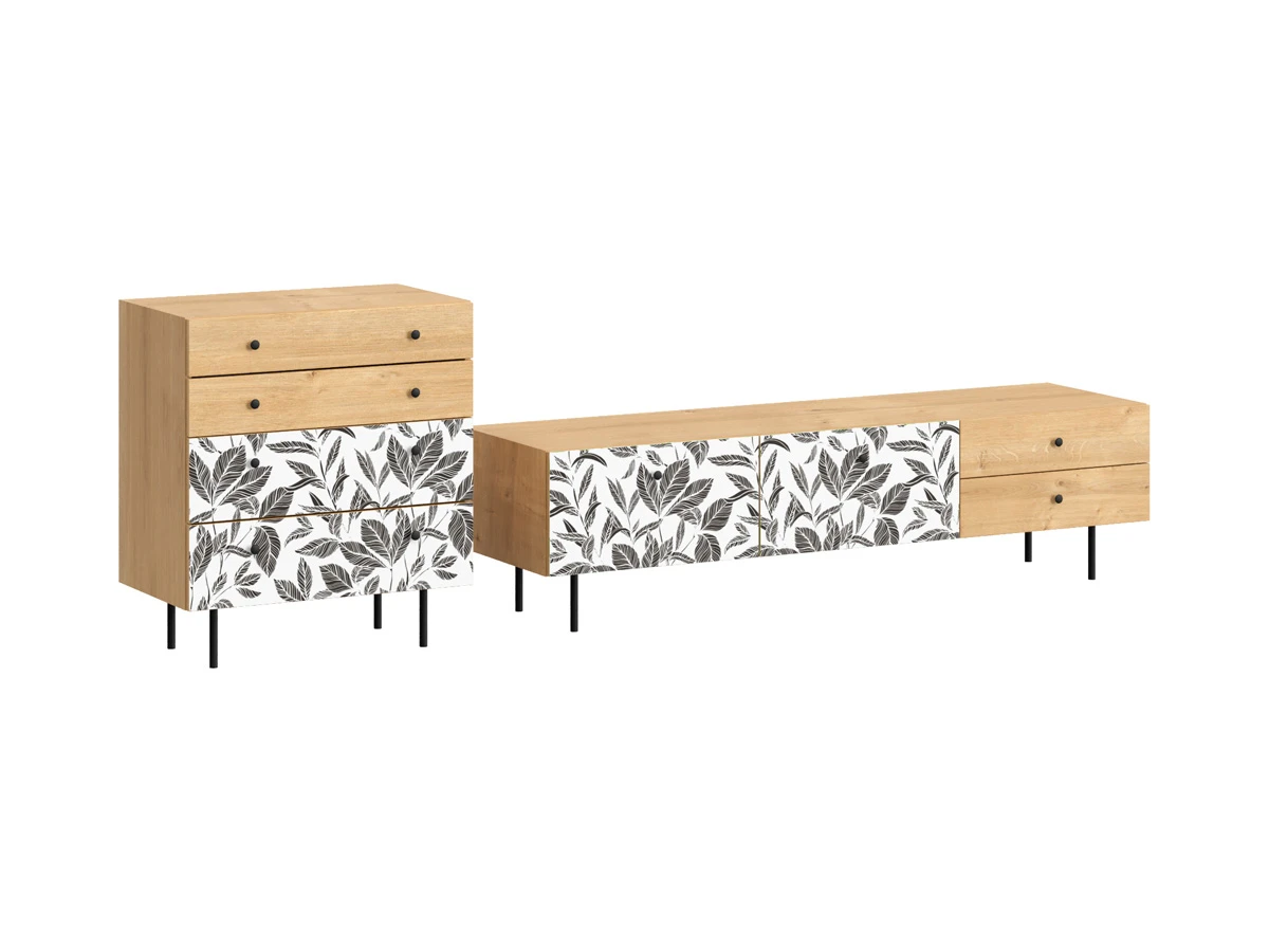 Корпусная мебель, с которой можно составить множество решений для гостиной, детской, кухни, спальни, прихожей, рабочей зоны. Комоды, шкафы, тумбы, столы, витрины, полки, серванты характеризуются универсальностью, многозадачностью, надёжными устойчивыми конструкциями. Имеют выразительный внешний вид, вдохновленный направлением ретро. Смотрятся легко и воздушно за счет деревянных ножек, минимального количества декоративных элементов, спокойных природных оттенков. Их можно использовать в качестве систем хранения, элементов для зонирования, фокусных точек. В дизайне ярко выражена доминанта прямых форм, графичности, лаконичных линий и элегантного исполнения. Что даёт пространству ощущение размеренности, сбалансированности, упорядоченности. Подходят интерьерам как с нейтральной базой, так и локациям с интенсивными цветовыми блоками. Индивидуальности добавят модели с оригинальными паттернами на фасадах. Предметы коллекции Frida гармонично впишутся в эклектичные и стилизованные интерьеры. Ручки входят в стоимость изделия. Высота опор 160 мм. Изображение, нанесенное на фасады, устойчиво к выцветанию, истиранию и влаге. Однако длительное воздействие воды, различных растворителей, спиртосодержащих жидкостей и высоких температур, увеличивают риск повреждения целостности покрытия. Поэтому при использовании необходимо соблюдать ряд правил: 1. Протирайте поверхность с рисунком влажной (но не мокрой) тканью. 2. Используйте мягкие ткани, например, салфетки для стекла или зеркал. 3. Не используйте для обработки поверхности с нанесенным на нее рисунком чистящие порошки и средства, в состав которых входят ацетон, растворитель или спирт. 4. Не используйте металлические губки и щетки с жесткой щетиной. 5. Избегайте ударов, падения, царапания, трения изделий с фотопечатью.
