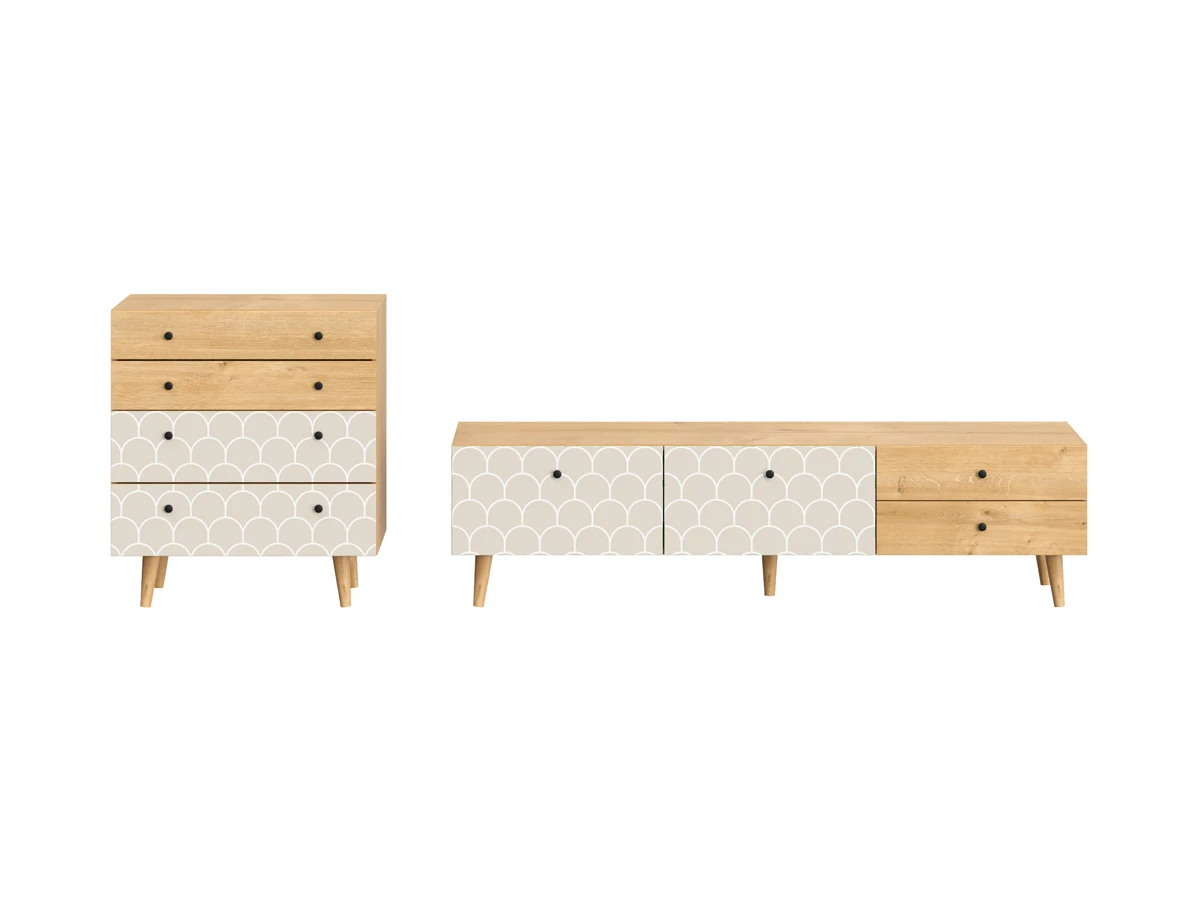 Корпусная мебель, с которой можно составить множество решений для гостиной, детской, кухни, спальни, прихожей, рабочей зоны. Комоды, шкафы, тумбы, столы, витрины, полки, серванты характеризуются универсальностью, многозадачностью, надёжными устойчивыми конструкциями. Имеют выразительный внешний вид, вдохновленный направлением ретро. Смотрятся легко и воздушно за счет деревянных ножек, минимального количества декоративных элементов, спокойных природных оттенков. Их можно использовать в качестве систем хранения, элементов для зонирования, фокусных точек. В дизайне ярко выражена доминанта прямых форм, графичности, лаконичных линий и элегантного исполнения. Что даёт пространству ощущение размеренности, сбалансированности, упорядоченности. Подходят интерьерам как с нейтральной базой, так и локациям с интенсивными цветовыми блоками. Индивидуальности добавят модели с оригинальными паттернами на фасадах. Предметы коллекции Frida гармонично впишутся в эклектичные и стилизованные интерьеры. Ручки входят в стоимость изделия. Высота опор 160 мм. Изображение, нанесенное на фасады, устойчиво к выцветанию, истиранию и влаге. Однако длительное воздействие воды, различных растворителей, спиртосодержащих жидкостей и высоких температур, увеличивают риск повреждения целостности покрытия. Поэтому при использовании необходимо соблюдать ряд правил: 1. Протирайте поверхность с рисунком влажной (но не мокрой) тканью. 2. Используйте мягкие ткани, например, салфетки для стекла или зеркал. 3. Не используйте для обработки поверхности с нанесенным на нее рисунком чистящие порошки и средства, в состав которых входят ацетон, растворитель или спирт. 4. Не используйте металлические губки и щетки с жесткой щетиной. 5. Избегайте ударов, падения, царапания, трения изделий с фотопечатью.