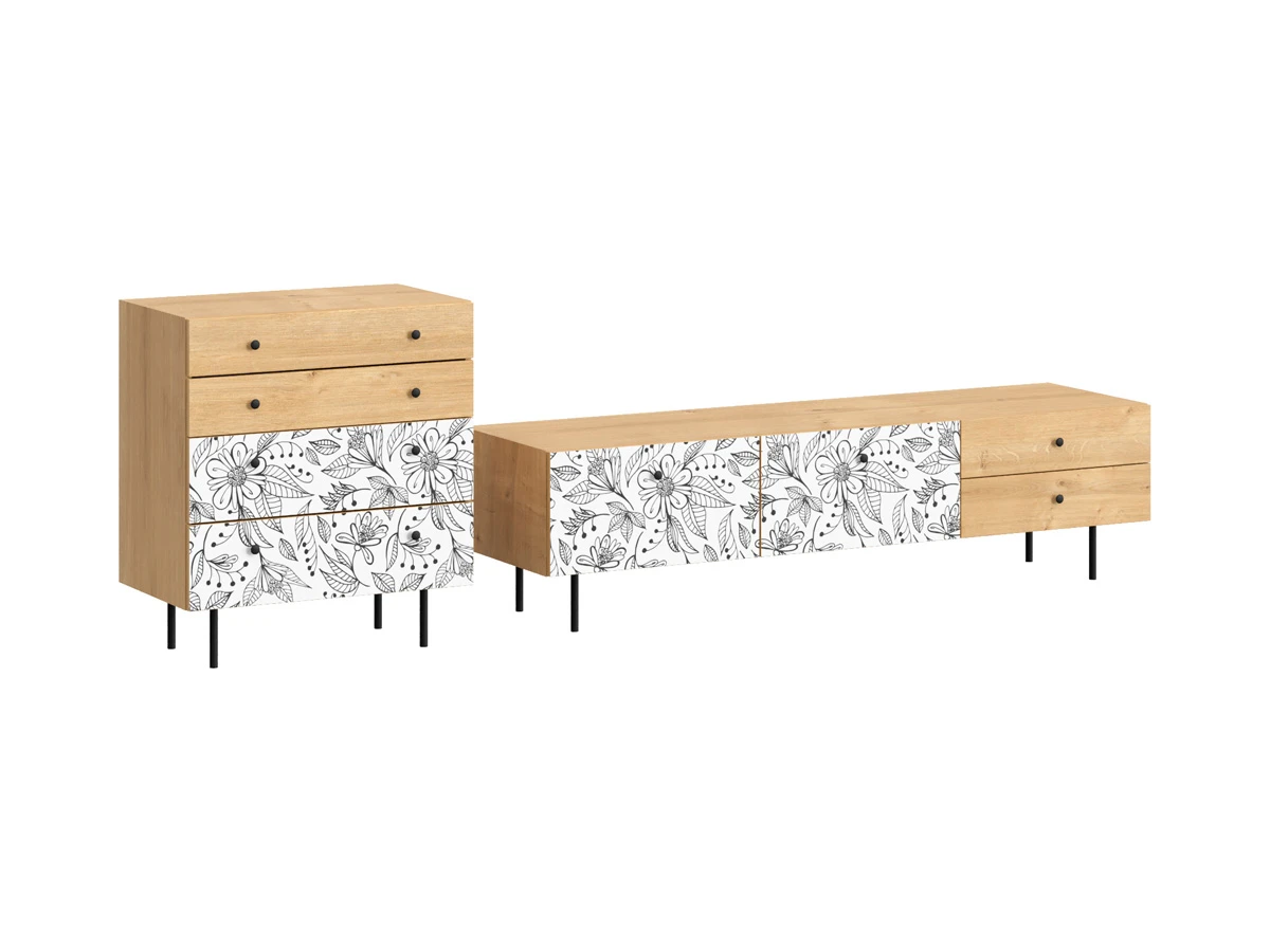 Корпусная мебель, с которой можно составить множество решений для гостиной, детской, кухни, спальни, прихожей, рабочей зоны. Комоды, шкафы, тумбы, столы, витрины, полки, серванты характеризуются универсальностью, многозадачностью, надёжными устойчивыми конструкциями. Имеют выразительный внешний вид, вдохновленный направлением ретро. Смотрятся легко и воздушно за счет деревянных ножек, минимального количества декоративных элементов, спокойных природных оттенков. Их можно использовать в качестве систем хранения, элементов для зонирования, фокусных точек. В дизайне ярко выражена доминанта прямых форм, графичности, лаконичных линий и элегантного исполнения. Что даёт пространству ощущение размеренности, сбалансированности, упорядоченности. Подходят интерьерам как с нейтральной базой, так и локациям с интенсивными цветовыми блоками. Индивидуальности добавят модели с оригинальными паттернами на фасадах. Предметы коллекции Frida гармонично впишутся в эклектичные и стилизованные интерьеры. Ручки входят в стоимость изделия. Высота опор 160 мм. Изображение, нанесенное на фасады, устойчиво к выцветанию, истиранию и влаге. Однако длительное воздействие воды, различных растворителей, спиртосодержащих жидкостей и высоких температур, увеличивают риск повреждения целостности покрытия. Поэтому при использовании необходимо соблюдать ряд правил: 1. Протирайте поверхность с рисунком влажной (но не мокрой) тканью. 2. Используйте мягкие ткани, например, салфетки для стекла или зеркал. 3. Не используйте для обработки поверхности с нанесенным на нее рисунком чистящие порошки и средства, в состав которых входят ацетон, растворитель или спирт. 4. Не используйте металлические губки и щетки с жесткой щетиной. 5. Избегайте ударов, падения, царапания, трения изделий с фотопечатью.