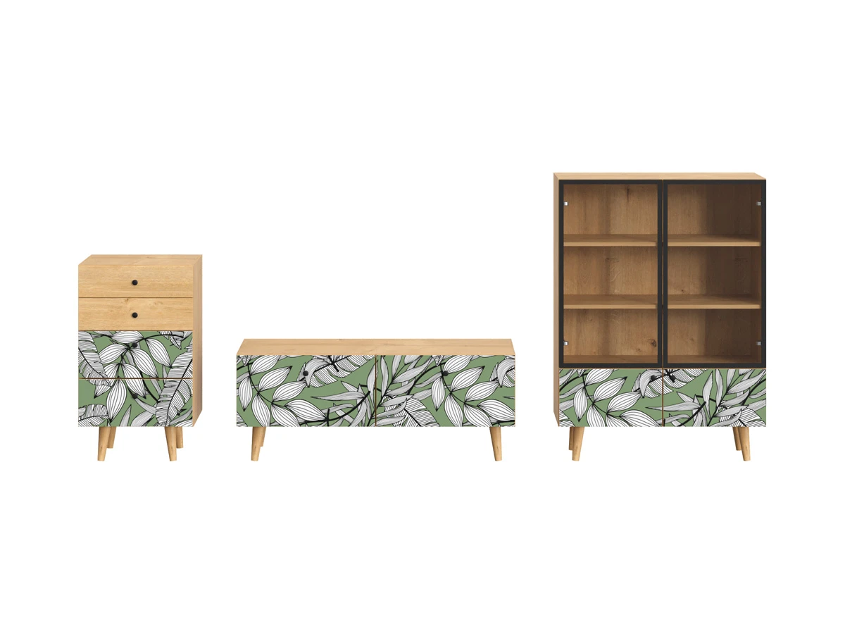 Корпусная мебель, с которой можно составить множество решений для гостиной, детской, кухни, спальни, прихожей, рабочей зоны. Комоды, шкафы, тумбы, столы, витрины, полки, серванты характеризуются универсальностью, многозадачностью, надёжными устойчивыми конструкциями. Имеют выразительный внешний вид, вдохновленный направлением ретро. Смотрятся легко и воздушно за счет деревянных ножек, минимального количества декоративных элементов, спокойных природных оттенков. Их можно использовать в качестве систем хранения, элементов для зонирования, фокусных точек. В дизайне ярко выражена доминанта прямых форм, графичности, лаконичных линий и элегантного исполнения. Что даёт пространству ощущение размеренности, сбалансированности, упорядоченности. Подходят интерьерам как с нейтральной базой, так и локациям с интенсивными цветовыми блоками. Индивидуальности добавят модели с оригинальными паттернами на фасадах. Предметы коллекции Frida гармонично впишутся в эклектичные и стилизованные интерьеры. Ручки входят в стоимость изделия. Высота опор 160 мм. Изображение, нанесенное на фасады, устойчиво к выцветанию, истиранию и влаге. Однако длительное воздействие воды, различных растворителей, спиртосодержащих жидкостей и высоких температур, увеличивают риск повреждения целостности покрытия. Поэтому при использовании необходимо соблюдать ряд правил: 1. Протирайте поверхность с рисунком влажной (но не мокрой) тканью. 2. Используйте мягкие ткани, например, салфетки для стекла или зеркал. 3. Не используйте для обработки поверхности с нанесенным на нее рисунком чистящие порошки и средства, в состав которых входят ацетон, растворитель или спирт. 4. Не используйте металлические губки и щетки с жесткой щетиной. 5. Избегайте ударов, падения, царапания, трения изделий с фотопечатью.