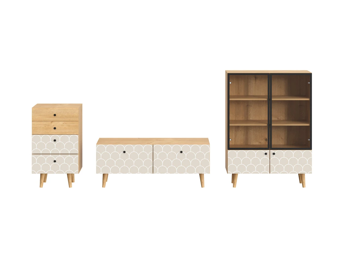 Корпусная мебель, с которой можно составить множество решений для гостиной, детской, кухни, спальни, прихожей, рабочей зоны. Комоды, шкафы, тумбы, столы, витрины, полки, серванты характеризуются универсальностью, многозадачностью, надёжными устойчивыми конструкциями. Имеют выразительный внешний вид, вдохновленный направлением ретро. Смотрятся легко и воздушно за счет деревянных ножек, минимального количества декоративных элементов, спокойных природных оттенков. Их можно использовать в качестве систем хранения, элементов для зонирования, фокусных точек. В дизайне ярко выражена доминанта прямых форм, графичности, лаконичных линий и элегантного исполнения. Что даёт пространству ощущение размеренности, сбалансированности, упорядоченности. Подходят интерьерам как с нейтральной базой, так и локациям с интенсивными цветовыми блоками. Индивидуальности добавят модели с оригинальными паттернами на фасадах. Предметы коллекции Frida гармонично впишутся в эклектичные и стилизованные интерьеры. Ручки входят в стоимость изделия. Высота опор 160 мм. Изображение, нанесенное на фасады, устойчиво к выцветанию, истиранию и влаге. Однако длительное воздействие воды, различных растворителей, спиртосодержащих жидкостей и высоких температур, увеличивают риск повреждения целостности покрытия. Поэтому при использовании необходимо соблюдать ряд правил: 1. Протирайте поверхность с рисунком влажной (но не мокрой) тканью. 2. Используйте мягкие ткани, например, салфетки для стекла или зеркал. 3. Не используйте для обработки поверхности с нанесенным на нее рисунком чистящие порошки и средства, в состав которых входят ацетон, растворитель или спирт. 4. Не используйте металлические губки и щетки с жесткой щетиной. 5. Избегайте ударов, падения, царапания, трения изделий с фотопечатью.
