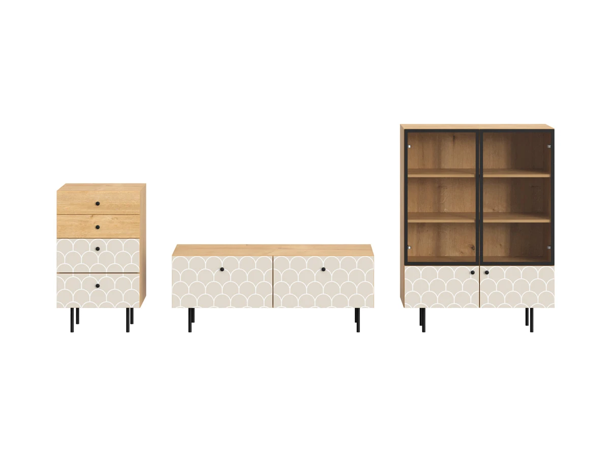 Корпусная мебель, с которой можно составить множество решений для гостиной, детской, кухни, спальни, прихожей, рабочей зоны. Комоды, шкафы, тумбы, столы, витрины, полки, серванты характеризуются универсальностью, многозадачностью, надёжными устойчивыми конструкциями. Имеют выразительный внешний вид, вдохновленный направлением ретро. Смотрятся легко и воздушно за счет деревянных ножек, минимального количества декоративных элементов, спокойных природных оттенков. Их можно использовать в качестве систем хранения, элементов для зонирования, фокусных точек. В дизайне ярко выражена доминанта прямых форм, графичности, лаконичных линий и элегантного исполнения. Что даёт пространству ощущение размеренности, сбалансированности, упорядоченности. Подходят интерьерам как с нейтральной базой, так и локациям с интенсивными цветовыми блоками. Индивидуальности добавят модели с оригинальными паттернами на фасадах. Предметы коллекции Frida гармонично впишутся в эклектичные и стилизованные интерьеры. Ручки входят в стоимость изделия. Высота опор 160 мм. Изображение, нанесенное на фасады, устойчиво к выцветанию, истиранию и влаге. Однако длительное воздействие воды, различных растворителей, спиртосодержащих жидкостей и высоких температур, увеличивают риск повреждения целостности покрытия. Поэтому при использовании необходимо соблюдать ряд правил: 1. Протирайте поверхность с рисунком влажной (но не мокрой) тканью. 2. Используйте мягкие ткани, например, салфетки для стекла или зеркал. 3. Не используйте для обработки поверхности с нанесенным на нее рисунком чистящие порошки и средства, в состав которых входят ацетон, растворитель или спирт. 4. Не используйте металлические губки и щетки с жесткой щетиной. 5. Избегайте ударов, падения, царапания, трения изделий с фотопечатью.