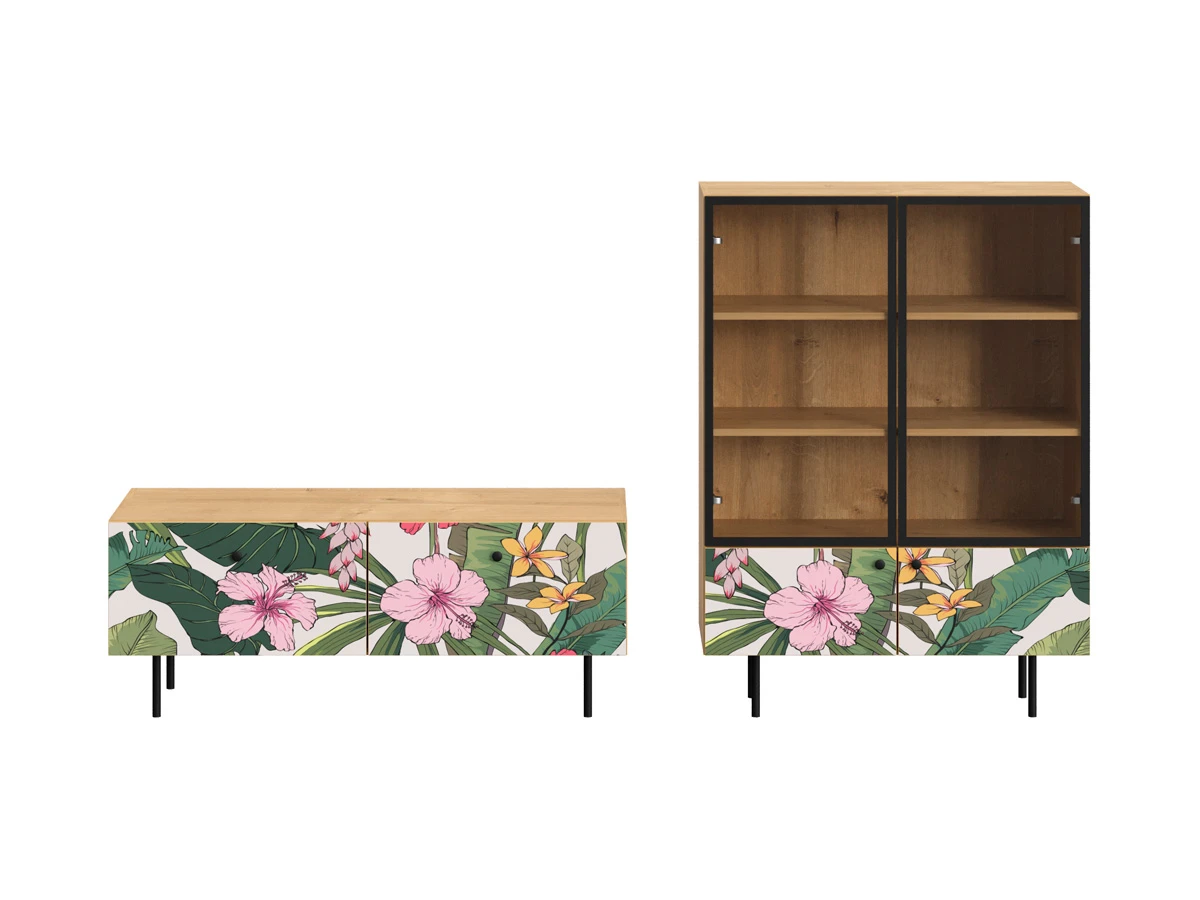 Корпусная мебель, с которой можно составить множество решений для гостиной, детской, кухни, спальни, прихожей, рабочей зоны. Комоды, шкафы, тумбы, столы, витрины, полки, серванты характеризуются универсальностью, многозадачностью, надёжными устойчивыми конструкциями. Имеют выразительный внешний вид, вдохновленный направлением ретро. Смотрятся легко и воздушно за счет деревянных ножек, минимального количества декоративных элементов, спокойных природных оттенков. Их можно использовать в качестве систем хранения, элементов для зонирования, фокусных точек. В дизайне ярко выражена доминанта прямых форм, графичности, лаконичных линий и элегантного исполнения. Что даёт пространству ощущение размеренности, сбалансированности, упорядоченности. Подходят интерьерам как с нейтральной базой, так и локациям с интенсивными цветовыми блоками. Индивидуальности добавят модели с оригинальными паттернами на фасадах. Предметы коллекции Frida гармонично впишутся в эклектичные и стилизованные интерьеры. Ручки входят в стоимость изделия. Высота опор 160 мм. Изображение, нанесенное на фасады, устойчиво к выцветанию, истиранию и влаге. Однако длительное воздействие воды, различных растворителей, спиртосодержащих жидкостей и высоких температур, увеличивают риск повреждения целостности покрытия. Поэтому при использовании необходимо соблюдать ряд правил: 1. Протирайте поверхность с рисунком влажной (но не мокрой) тканью. 2. Используйте мягкие ткани, например, салфетки для стекла или зеркал. 3. Не используйте для обработки поверхности с нанесенным на нее рисунком чистящие порошки и средства, в состав которых входят ацетон, растворитель или спирт. 4. Не используйте металлические губки и щетки с жесткой щетиной. 5. Избегайте ударов, падения, царапания, трения изделий с фотопечатью.