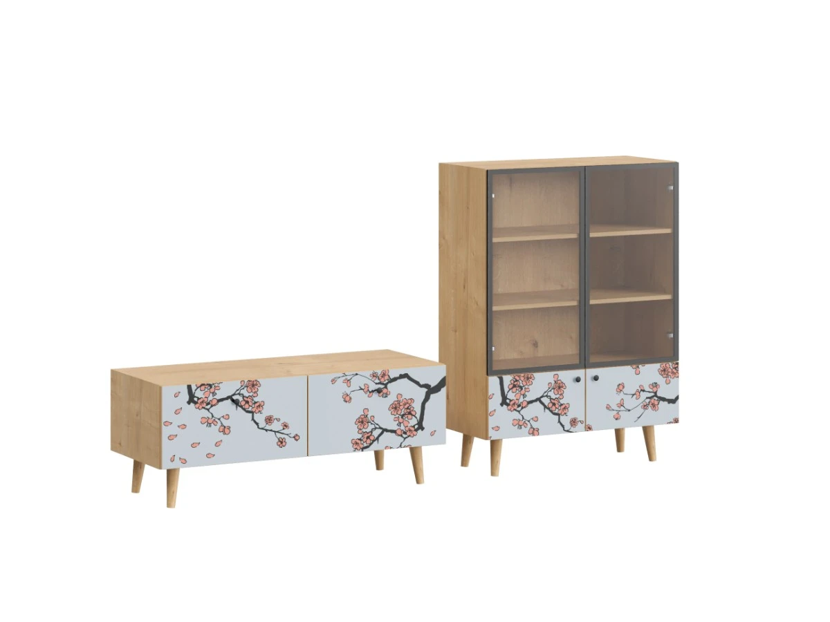 Корпусная мебель, с которой можно составить множество решений для гостиной, детской, кухни, спальни, прихожей, рабочей зоны. Комоды, шкафы, тумбы, столы, витрины, полки, серванты характеризуются универсальностью, многозадачностью, надёжными устойчивыми конструкциями. Имеют выразительный внешний вид, вдохновленный направлением ретро. Смотрятся легко и воздушно за счет деревянных ножек, минимального количества декоративных элементов, спокойных природных оттенков. Их можно использовать в качестве систем хранения, элементов для зонирования, фокусных точек. В дизайне ярко выражена доминанта прямых форм, графичности, лаконичных линий и элегантного исполнения. Что даёт пространству ощущение размеренности, сбалансированности, упорядоченности. Подходят интерьерам как с нейтральной базой, так и локациям с интенсивными цветовыми блоками. Индивидуальности добавят модели с оригинальными паттернами на фасадах. Предметы коллекции Frida гармонично впишутся в эклектичные и стилизованные интерьеры. Ручки входят в стоимость изделия. Высота опор 160 мм. Изображение, нанесенное на фасады, устойчиво к выцветанию, истиранию и влаге. Однако длительное воздействие воды, различных растворителей, спиртосодержащих жидкостей и высоких температур, увеличивают риск повреждения целостности покрытия. Поэтому при использовании необходимо соблюдать ряд правил: 1. Протирайте поверхность с рисунком влажной (но не мокрой) тканью. 2. Используйте мягкие ткани, например, салфетки для стекла или зеркал. 3. Не используйте для обработки поверхности с нанесенным на нее рисунком чистящие порошки и средства, в состав которых входят ацетон, растворитель или спирт. 4. Не используйте металлические губки и щетки с жесткой щетиной. 5. Избегайте ударов, падения, царапания, трения изделий с фотопечатью.