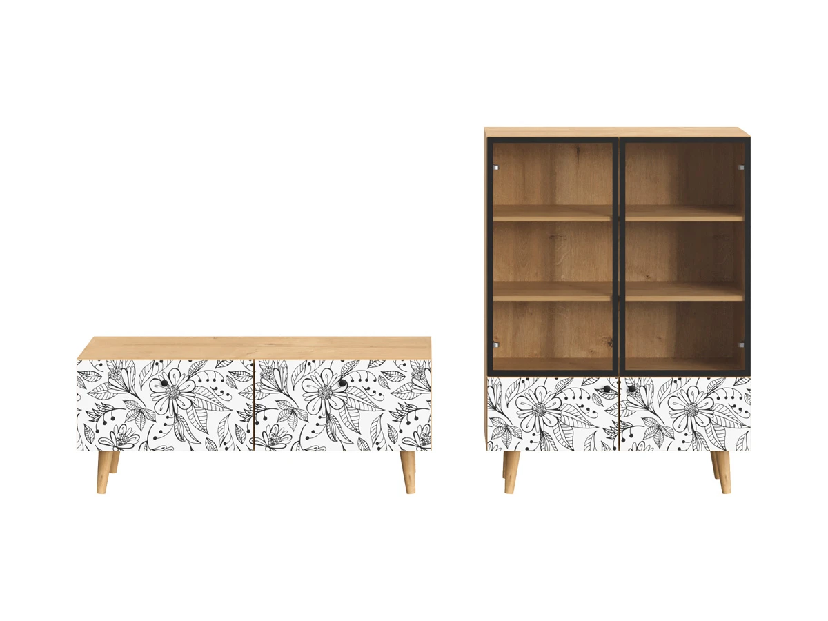 Корпусная мебель, с которой можно составить множество решений для гостиной, детской, кухни, спальни, прихожей, рабочей зоны. Комоды, шкафы, тумбы, столы, витрины, полки, серванты характеризуются универсальностью, многозадачностью, надёжными устойчивыми конструкциями. Имеют выразительный внешний вид, вдохновленный направлением ретро. Смотрятся легко и воздушно за счет деревянных ножек, минимального количества декоративных элементов, спокойных природных оттенков. Их можно использовать в качестве систем хранения, элементов для зонирования, фокусных точек. В дизайне ярко выражена доминанта прямых форм, графичности, лаконичных линий и элегантного исполнения. Что даёт пространству ощущение размеренности, сбалансированности, упорядоченности. Подходят интерьерам как с нейтральной базой, так и локациям с интенсивными цветовыми блоками. Индивидуальности добавят модели с оригинальными паттернами на фасадах. Предметы коллекции Frida гармонично впишутся в эклектичные и стилизованные интерьеры. Ручки входят в стоимость изделия. Высота опор 160 мм. Изображение, нанесенное на фасады, устойчиво к выцветанию, истиранию и влаге. Однако длительное воздействие воды, различных растворителей, спиртосодержащих жидкостей и высоких температур, увеличивают риск повреждения целостности покрытия. Поэтому при использовании необходимо соблюдать ряд правил: 1. Протирайте поверхность с рисунком влажной (но не мокрой) тканью. 2. Используйте мягкие ткани, например, салфетки для стекла или зеркал. 3. Не используйте для обработки поверхности с нанесенным на нее рисунком чистящие порошки и средства, в состав которых входят ацетон, растворитель или спирт. 4. Не используйте металлические губки и щетки с жесткой щетиной. 5. Избегайте ударов, падения, царапания, трения изделий с фотопечатью.