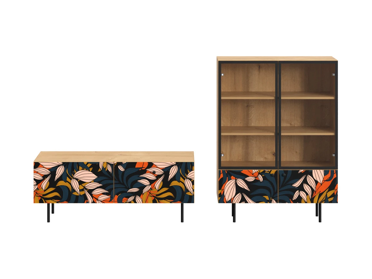 Корпусная мебель, с которой можно составить множество решений для гостиной, детской, кухни, спальни, прихожей, рабочей зоны. Комоды, шкафы, тумбы, столы, витрины, полки, серванты характеризуются универсальностью, многозадачностью, надёжными устойчивыми конструкциями. Имеют выразительный внешний вид, вдохновленный направлением ретро. Смотрятся легко и воздушно за счет деревянных ножек, минимального количества декоративных элементов, спокойных природных оттенков. Их можно использовать в качестве систем хранения, элементов для зонирования, фокусных точек. В дизайне ярко выражена доминанта прямых форм, графичности, лаконичных линий и элегантного исполнения. Что даёт пространству ощущение размеренности, сбалансированности, упорядоченности. Подходят интерьерам как с нейтральной базой, так и локациям с интенсивными цветовыми блоками. Индивидуальности добавят модели с оригинальными паттернами на фасадах. Предметы коллекции Frida гармонично впишутся в эклектичные и стилизованные интерьеры. Ручки входят в стоимость изделия. Высота опор 160 мм. Изображение, нанесенное на фасады, устойчиво к выцветанию, истиранию и влаге. Однако длительное воздействие воды, различных растворителей, спиртосодержащих жидкостей и высоких температур, увеличивают риск повреждения целостности покрытия. Поэтому при использовании необходимо соблюдать ряд правил: 1. Протирайте поверхность с рисунком влажной (но не мокрой) тканью. 2. Используйте мягкие ткани, например, салфетки для стекла или зеркал. 3. Не используйте для обработки поверхности с нанесенным на нее рисунком чистящие порошки и средства, в состав которых входят ацетон, растворитель или спирт. 4. Не используйте металлические губки и щетки с жесткой щетиной. 5. Избегайте ударов, падения, царапания, трения изделий с фотопечатью.