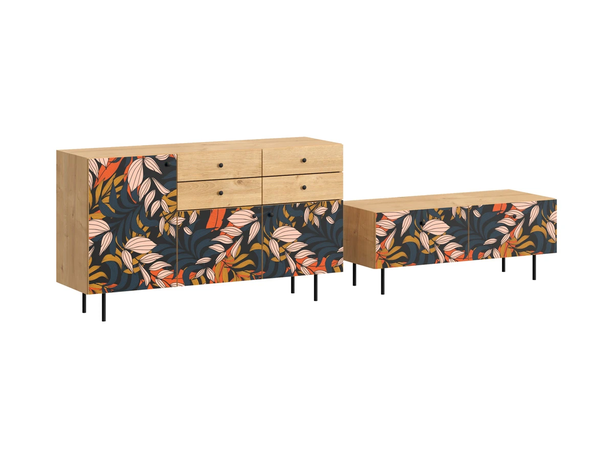 Корпусная мебель, с которой можно составить множество решений для гостиной, детской, кухни, спальни, прихожей, рабочей зоны. Комоды, шкафы, тумбы, столы, витрины, полки, серванты характеризуются универсальностью, многозадачностью, надёжными устойчивыми конструкциями. Имеют выразительный внешний вид, вдохновленный направлением ретро. Смотрятся легко и воздушно за счет деревянных ножек, минимального количества декоративных элементов, спокойных природных оттенков. Их можно использовать в качестве систем хранения, элементов для зонирования, фокусных точек. В дизайне ярко выражена доминанта прямых форм, графичности, лаконичных линий и элегантного исполнения. Что даёт пространству ощущение размеренности, сбалансированности, упорядоченности. Подходят интерьерам как с нейтральной базой, так и локациям с интенсивными цветовыми блоками. Индивидуальности добавят модели с оригинальными паттернами на фасадах. Предметы коллекции Frida гармонично впишутся в эклектичные и стилизованные интерьеры. Ручки входят в стоимость изделия. Высота опор 160 мм. Изображение, нанесенное на фасады, устойчиво к выцветанию, истиранию и влаге. Однако длительное воздействие воды, различных растворителей, спиртосодержащих жидкостей и высоких температур, увеличивают риск повреждения целостности покрытия. Поэтому при использовании необходимо соблюдать ряд правил: 1. Протирайте поверхность с рисунком влажной (но не мокрой) тканью. 2. Используйте мягкие ткани, например, салфетки для стекла или зеркал. 3. Не используйте для обработки поверхности с нанесенным на нее рисунком чистящие порошки и средства, в состав которых входят ацетон, растворитель или спирт. 4. Не используйте металлические губки и щетки с жесткой щетиной. 5. Избегайте ударов, падения, царапания, трения изделий с фотопечатью.