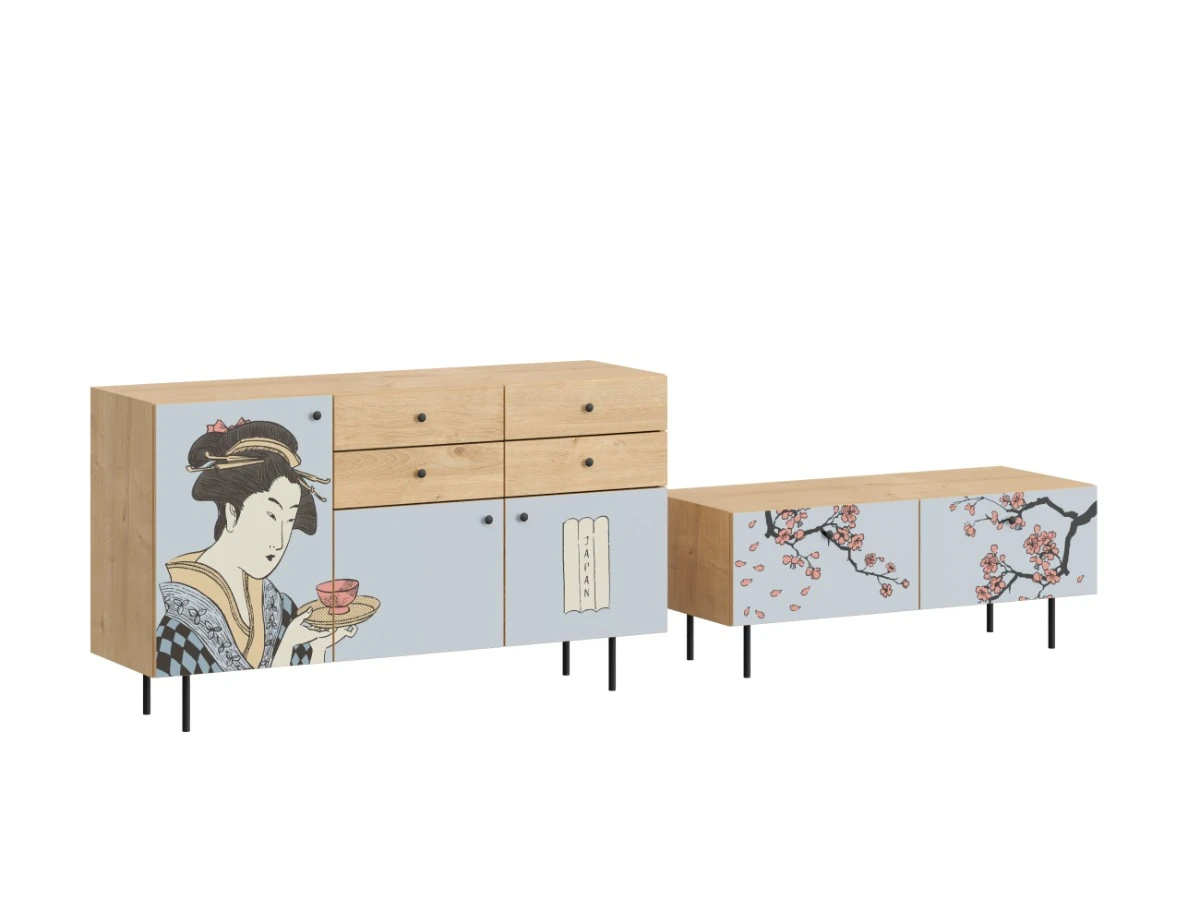 Корпусная мебель, с которой можно составить множество решений для гостиной, детской, кухни, спальни, прихожей, рабочей зоны. Комоды, шкафы, тумбы, столы, витрины, полки, серванты характеризуются универсальностью, многозадачностью, надёжными устойчивыми конструкциями. Имеют выразительный внешний вид, вдохновленный направлением ретро. Смотрятся легко и воздушно за счет деревянных ножек, минимального количества декоративных элементов, спокойных природных оттенков. Их можно использовать в качестве систем хранения, элементов для зонирования, фокусных точек. В дизайне ярко выражена доминанта прямых форм, графичности, лаконичных линий и элегантного исполнения. Что даёт пространству ощущение размеренности, сбалансированности, упорядоченности. Подходят интерьерам как с нейтральной базой, так и локациям с интенсивными цветовыми блоками. Индивидуальности добавят модели с оригинальными паттернами на фасадах. Предметы коллекции Frida гармонично впишутся в эклектичные и стилизованные интерьеры. Ручки входят в стоимость изделия. Высота опор 160 мм. Изображение, нанесенное на фасады, устойчиво к выцветанию, истиранию и влаге. Однако длительное воздействие воды, различных растворителей, спиртосодержащих жидкостей и высоких температур, увеличивают риск повреждения целостности покрытия. Поэтому при использовании необходимо соблюдать ряд правил: 1. Протирайте поверхность с рисунком влажной (но не мокрой) тканью. 2. Используйте мягкие ткани, например, салфетки для стекла или зеркал. 3. Не используйте для обработки поверхности с нанесенным на нее рисунком чистящие порошки и средства, в состав которых входят ацетон, растворитель или спирт. 4. Не используйте металлические губки и щетки с жесткой щетиной. 5. Избегайте ударов, падения, царапания, трения изделий с фотопечатью.