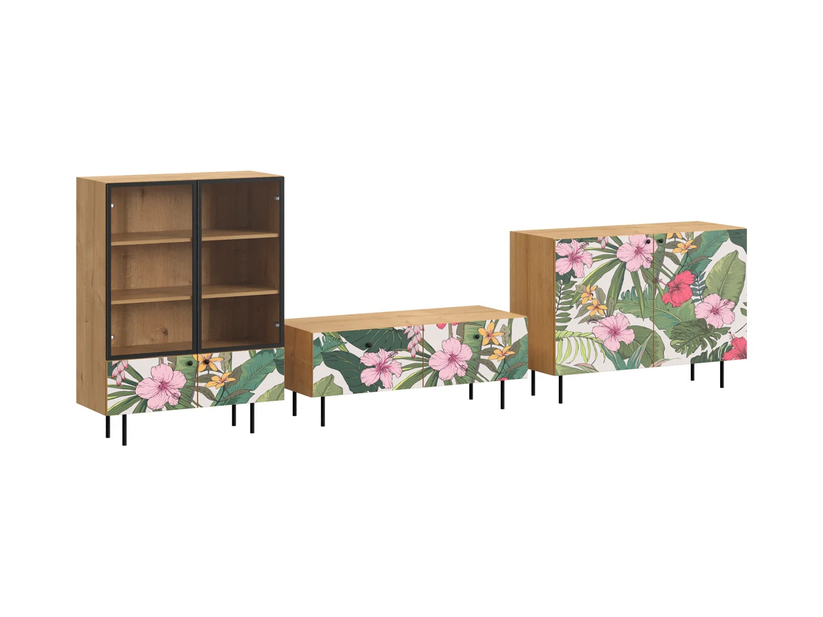 Корпусная мебель, с которой можно составить множество решений для гостиной, детской, кухни, спальни, прихожей, рабочей зоны. Комоды, шкафы, тумбы, столы, витрины, полки, серванты характеризуются универсальностью, многозадачностью, надёжными устойчивыми конструкциями. Имеют выразительный внешний вид, вдохновленный направлением ретро. Смотрятся легко и воздушно за счет деревянных ножек, минимального количества декоративных элементов, спокойных природных оттенков. Их можно использовать в качестве систем хранения, элементов для зонирования, фокусных точек. В дизайне ярко выражена доминанта прямых форм, графичности, лаконичных линий и элегантного исполнения. Что даёт пространству ощущение размеренности, сбалансированности, упорядоченности. Подходят интерьерам как с нейтральной базой, так и локациям с интенсивными цветовыми блоками. Индивидуальности добавят модели с оригинальными паттернами на фасадах. Предметы коллекции Frida гармонично впишутся в эклектичные и стилизованные интерьеры. Ручки входят в стоимость изделия. Высота опор 160 мм. Изображение, нанесенное на фасады, устойчиво к выцветанию, истиранию и влаге. Однако длительное воздействие воды, различных растворителей, спиртосодержащих жидкостей и высоких температур, увеличивают риск повреждения целостности покрытия. Поэтому при использовании необходимо соблюдать ряд правил: 1. Протирайте поверхность с рисунком влажной (но не мокрой) тканью. 2. Используйте мягкие ткани, например, салфетки для стекла или зеркал. 3. Не используйте для обработки поверхности с нанесенным на нее рисунком чистящие порошки и средства, в состав которых входят ацетон, растворитель или спирт. 4. Не используйте металлические губки и щетки с жесткой щетиной. 5. Избегайте ударов, падения, царапания, трения изделий с фотопечатью.