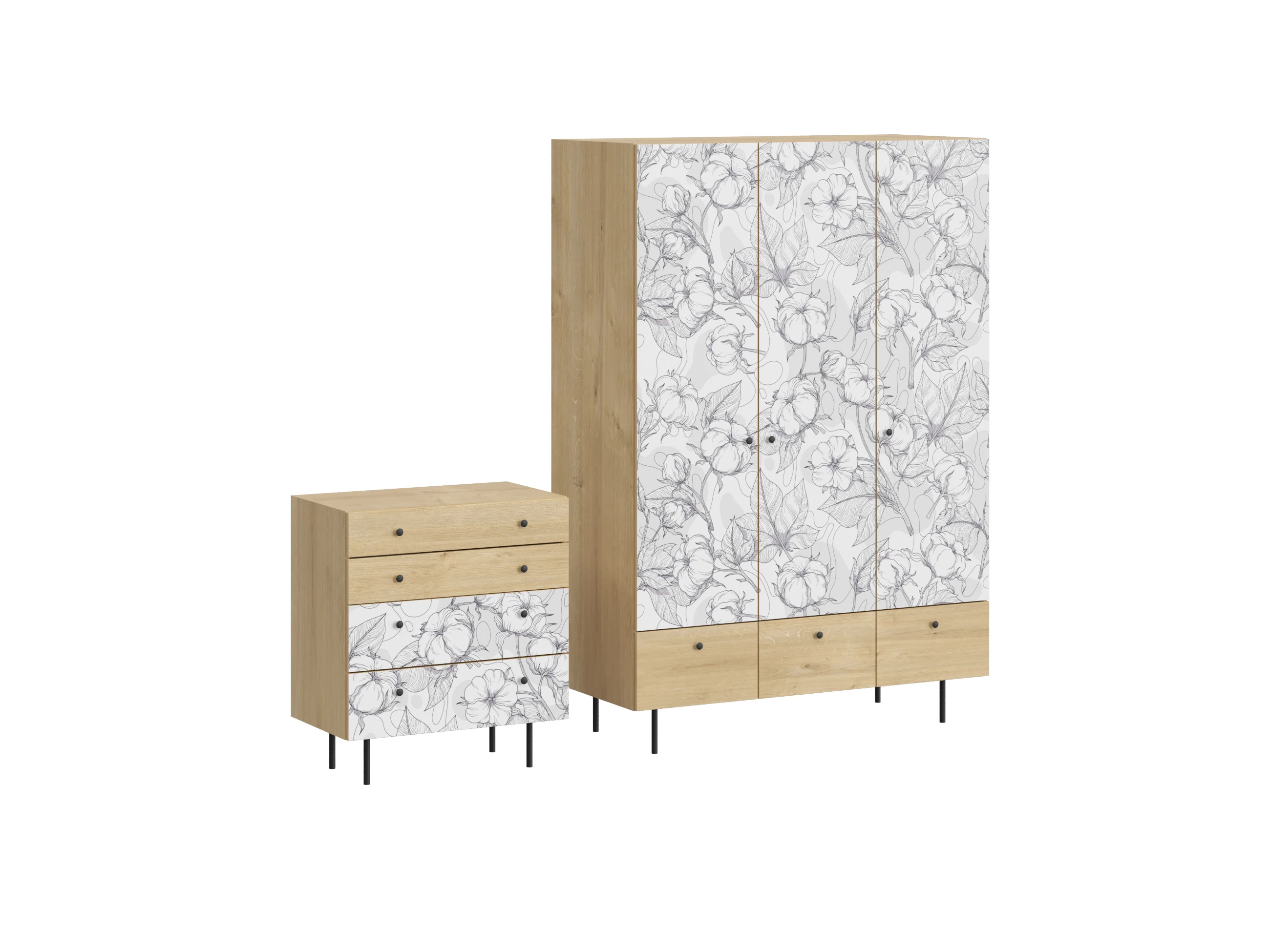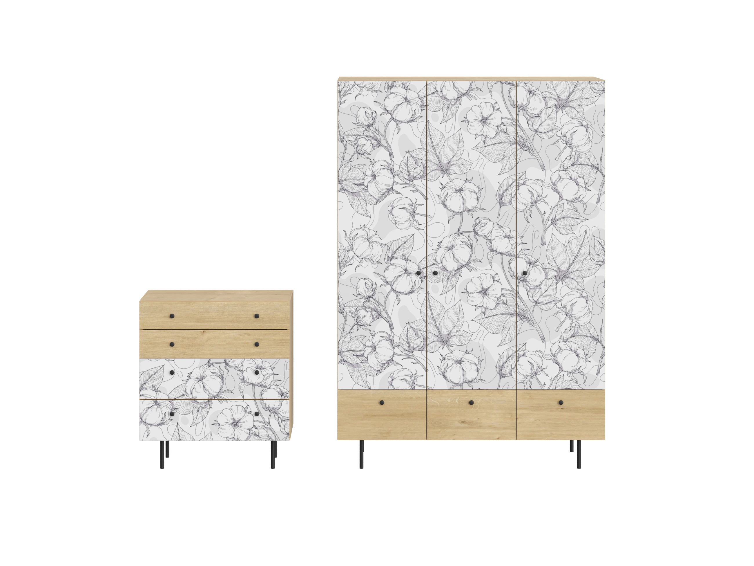Корпусная мебель, с которой можно составить множество решений для гостиной, детской, кухни, спальни, прихожей, рабочей зоны. Комоды, шкафы, тумбы, столы, витрины, полки, серванты характеризуются универсальностью, многозадачностью, надёжными устойчивыми конструкциями. Имеют выразительный внешний вид, вдохновленный направлением ретро. Смотрятся легко и воздушно за счет деревянных ножек, минимального количества декоративных элементов, спокойных природных оттенков. Их можно использовать в качестве систем хранения, элементов для зонирования, фокусных точек. В дизайне ярко выражена доминанта прямых форм, графичности, лаконичных линий и элегантного исполнения. Что даёт пространству ощущение размеренности, сбалансированности, упорядоченности. Подходят интерьерам как с нейтральной базой, так и локациям с интенсивными цветовыми блоками. Индивидуальности добавят модели с оригинальными паттернами на фасадах. Предметы коллекции Frida гармонично впишутся в эклектичные и стилизованные интерьеры. Ручки входят в стоимость изделия. Высота опор 160 мм. Изображение, нанесенное на фасады, устойчиво к выцветанию, истиранию и влаге. Однако длительное воздействие воды, различных растворителей, спиртосодержащих жидкостей и высоких температур, увеличивают риск повреждения целостности покрытия. Поэтому при использовании необходимо соблюдать ряд правил: 1. Протирайте поверхность с рисунком влажной (но не мокрой) тканью. 2. Используйте мягкие ткани, например, салфетки для стекла или зеркал. 3. Не используйте для обработки поверхности с нанесенным на нее рисунком чистящие порошки и средства, в состав которых входят ацетон, растворитель или спирт. 4. Не используйте металлические губки и щетки с жесткой щетиной. 5. Избегайте ударов, падения, царапания, трения изделий с фотопечатью.