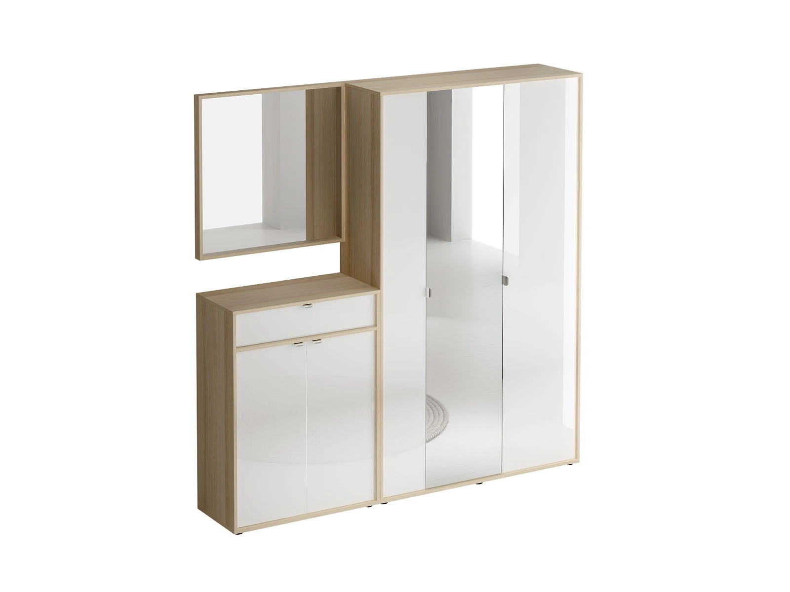 Latte — дизайнерская коллекция функциональной корпусной мебели для прихожей. Основу составляют базовые изделия с благородным минималистичным внешним видом: шкафы, комоды, обувницы, вешалки для одежды. Концепт — современный дизайн, выраженный в легкости визуального восприятия. В центре внимания: светлые оттенки, зеркальные и глянцевые поверхности, строгая геометрия, отсутствие декора. Для индивидуальных интерьерных решений несколько вариантов фасадов: ЛДСП, зеркало, стекло в белом и в оттенке капучино. Бликующие поверхности не утяжеляют и не «съедают» свет, а наполняют локацию свежестью, воздушностью, дружелюбной атмосферой, придают динамику, визуальный объём. Подходят как для компактных пространств, так и для больших помещений. С Latte вы составите индивидуальную композицию для удобного хранения вещей по категориям и поддержите порядок в доме. Композиция для прихожей