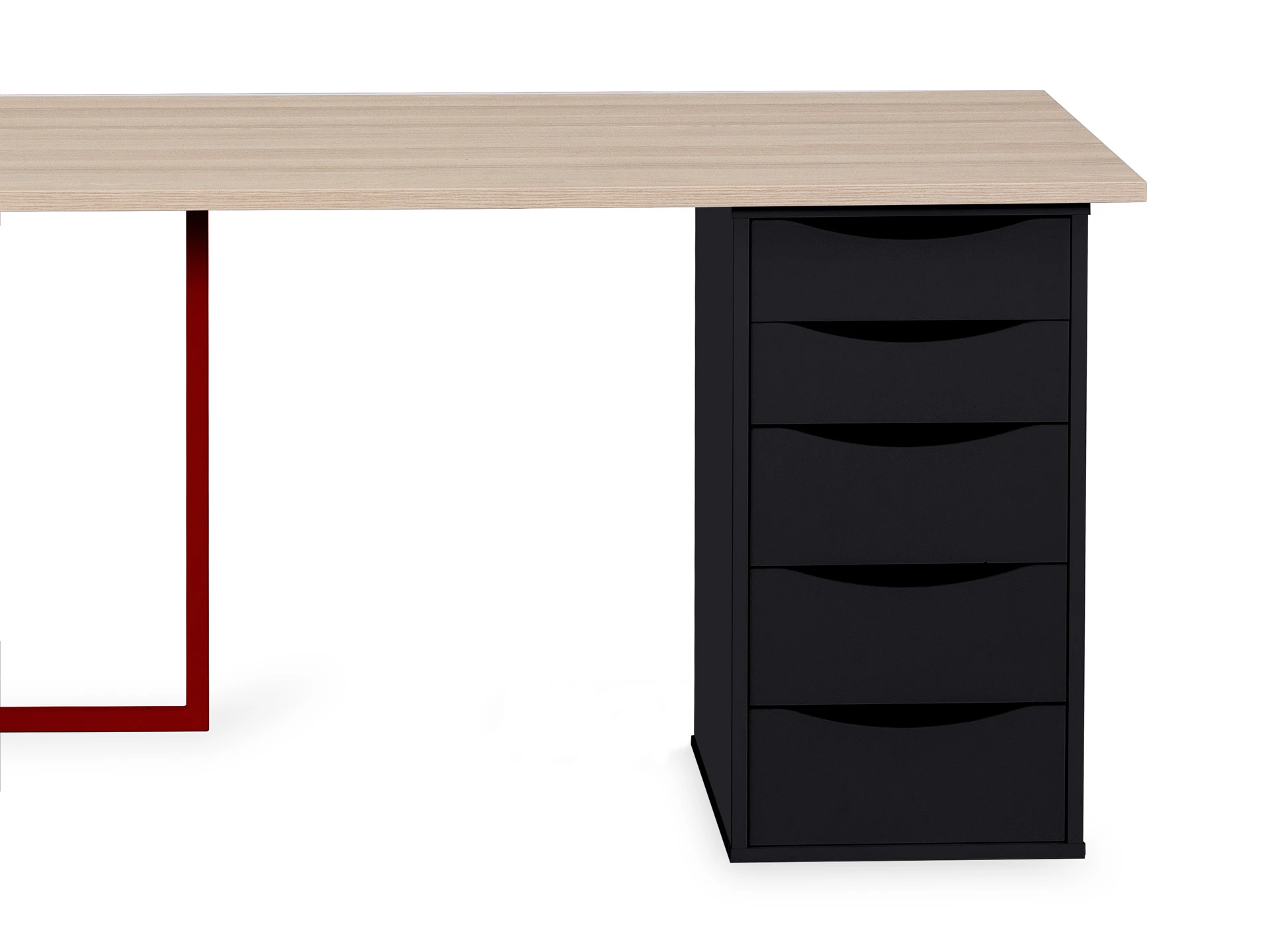 Коллекция Board — мебель для рабочих и учебных зон с индустриальным характером. Лаконичная, практичная и вариативная. Для офиса на дому или в общественной локации, для школьника, студента, творческих и мастерских — многофункциональные столы со встроенными тумбами и стеллажами помогут создать упорядоченное, рационально организованное рабочее место. Идеально, когда: важные вещи, документы — на расстоянии вытянутой руки, а на поиски нужного уходит не более 2 минут, нет лишних визуальных раздражителей, за каждым предметом закреплено место. Для большого количества техники, канцелярии, специального оборудования подойдут просторные столешницы с большими стеллажами, а для ноутбука и блокнота достаточно компактного стола, который не займет много места. Архитектура предметов максимально простая, смотрится легко и не загромождает пространство. Материал столешниц — ЛДСП, основание — металл. Качественные и надежные материалы гармонично вписывается в большинство актуальных интерьерных стилей. Тумбы на регулируемых ножках. Ящики на роликовых направляющих. Фасады без ручек, с фигурной выемкой для открывания за кромку. К вашему выбору —большое количество сочетаний столешниц и оснований, стеллажей, тумб, что позволяет создать комбинацию, максимально отвечающую индивидуальным потребностям. Большой выбор столешниц и цветов оснований позволяет создавать комбинации, точно отвечающие вашим потребностям. Тумба Board 600 - длина 374мм - высота 720мм - глубина 600мм Полезный размер ящика: нижний ящик - длина 280мм - глубина 484мм - высота 114мм верхний ящик - длина 280мм - глубина 484мм - высота 80мм Тумба на регулируемых ножках. Ящики на роликовых направляющих. Фасады без ручек, с фигурной выемкой для открывания за кромку. Максимальная нагрузка на крышку тумбы – 8 кг Максимальный вес предметов в одном ящике – 5 кг. К заказу доступны следующие варианты изготовления: Размеры столешницы - 1200х500, 1400х500, 1400х700, 1600х700, 1800х700; Цвет столешницы - Белый глянец, Бук, Дуб Корбридж, Дуб Сонома глянец, Индийский Эбони глянец, Ясень коимбро; Цвет основания - белый, черный, красный; Цвет тумбы - белый, черный.