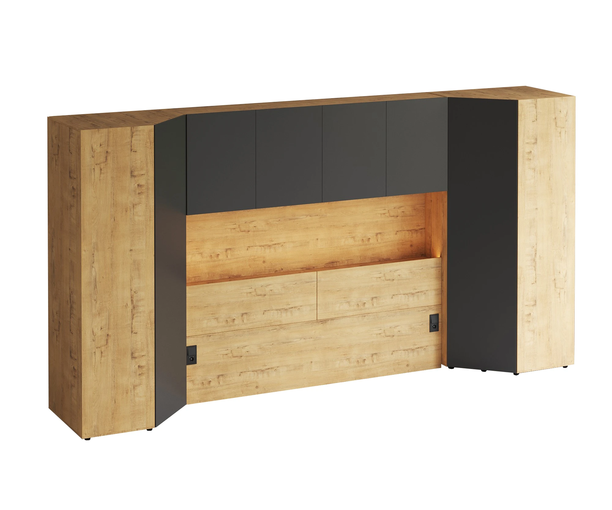 Линейка корпусной мебели, которая закрывает большинство потребностей по хранению и организации вещей. Универсальные и функциональные шкафы, тумбы, стеллажи, столы группируются по функциональны зонам. С их помощью можно обустроить прихожую, гостиную, кабинет, спальню, детскую. В основе дизайна — софт-минимализм с продуманными деталями и материалами. Скрытые механизмы открытия дверей, естественная древесная текстура, большая вместительность, белый цвет делают их исключительно удачными для большинства современных пространств. Гладкие фасады без декора и ручек поддерживают идею отказа от визуального шума, двери открываются по принципу «нажал-открыл». Мебель Modus создает уравновешенный интерьер с выразительными компонентами, настраивающими на ритмичный образ жизни, целеустремленность и чувство свободы от избыточных деталей. Кроватный блок предназначен для использования совместно с кроватью или диваном. Блок имеет два отделения за откидными дверьми и открытую полку над ними. Двери открываются за кромку, с помощью газовых кронштейнов. Кроватный блок оснащен светодиодным светильником, расположенным на открытой верхней полке. Светильник представляет собой алюминиевый профиль с матовым экраном, внутри которого установлена светодиодная лента. С левой и с правой стороны переднего щита блока установлены выключатели светильника и эл. розетки с разъемами USB А и Type C. Блок установлен на регулируемые опоры. Внутренние размеры отделений для хранения: 1160х850х260мм каждое отделение. Максимальная нагрузка на верхнюю полку не должна превышать 20 кг. Панель представляет собой щит из ЛДСП 16 мм. предназначенный для установки над кроватным блоком. Панель навешивается на регулируемые подвесы. Шкаф имеет три регулируемых подвеса для навешивания на стену. Полки имеют возможность перестановки по высоте в трех уровнях. Дверь открывается по принципу «нажал-открыл». Максимальная нагрузка на каждую полку не должна превышать 7 кг. Пенал Modus состоит из корпуса и фасада. Корпус с проходным нижним и верхним щитом установлен на опоры. Опоры регулируемые, пластик черный, круглые. Корпус горизонтальной стенкой разделен на два отделения по высоте. Верхнее отделение оснащено одной съёмной полкой, нижнее – пятью съёмными полками. Полки 6 – съемные, с перестановкой по высоте в 3 положения. Максимальная нагрузка на одну полку не должна превышать 4кг. Фасад представляет собой распашную дверь, которая открывается по принципу «нажал-открыл». Установка двери возможна с открыванием как в левую, так и в правую сторону.