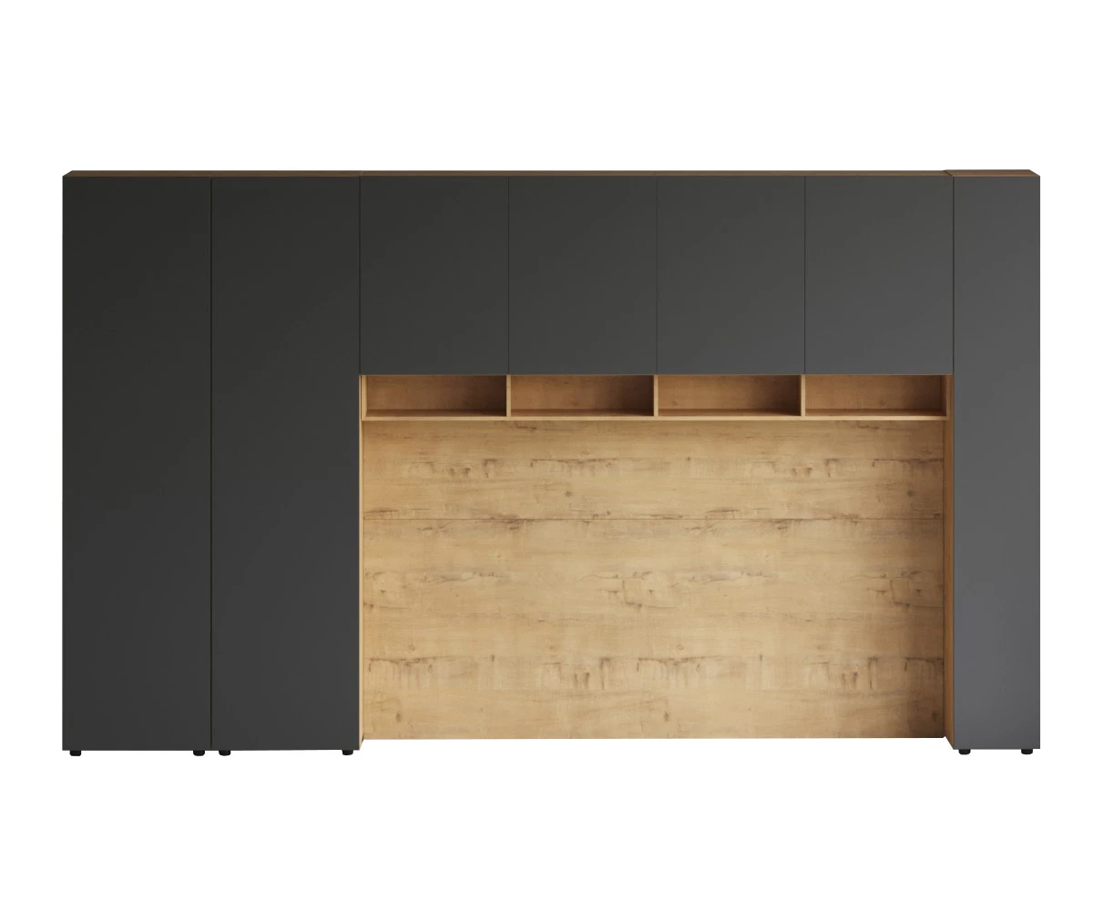 Линейка корпусной мебели, которая закрывает большинство потребностей по хранению и организации вещей. Универсальные и функциональные шкафы, тумбы, стеллажи, столы группируются по функциональны зонам. С их помощью можно обустроить прихожую, гостиную, кабинет, спальню, детскую. В основе дизайна — софт-минимализм с продуманными деталями и материалами. Скрытые механизмы открытия дверей, естественная древесная текстура, большая вместительность, белый цвет делают их исключительно удачными для большинства современных пространств. Гладкие фасады без декора и ручек поддерживают идею отказа от визуального шума, двери открываются по принципу «нажал-открыл». Мебель Modus создает уравновешенный интерьер с выразительными компонентами, настраивающими на ритмичный образ жизни, целеустремленность и чувство свободы от избыточных деталей. Кроватный блок предназначен для использования совместно с кроватью или диваном. Блок имеет два отделения за откидными дверьми и открытую полку над ними. Двери открываются за кромку, с помощью газовых кронштейнов. Кроватный блок оснащен светодиодным светильником, расположенным на открытой верхней полке. Светильник представляет собой алюминиевый профиль с матовым экраном, внутри которого установлена светодиодная лента. С левой и с правой стороны переднего щита блока установлены выключатели светильника и эл. розетки с разъемами USB А и Type C. Блок установлен на регулируемые опоры. Внутренние размеры отделений для хранения: 1160х850х260мм каждое отделение. Максимальная нагрузка на верхнюю полку не должна превышать 20 кг. Панель представляет собой щит из ЛДСП 16 мм. предназначенный для установки над кроватным блоком. Панель навешивается на регулируемые подвесы. Шкаф имеет три регулируемых подвеса для навешивания на стену. Полки имеют возможность перестановки по высоте в трех уровнях. Дверь открывается по принципу «нажал-открыл». Максимальная нагрузка на каждую полку не должна превышать 7 кг. Диван входит в стоимость.